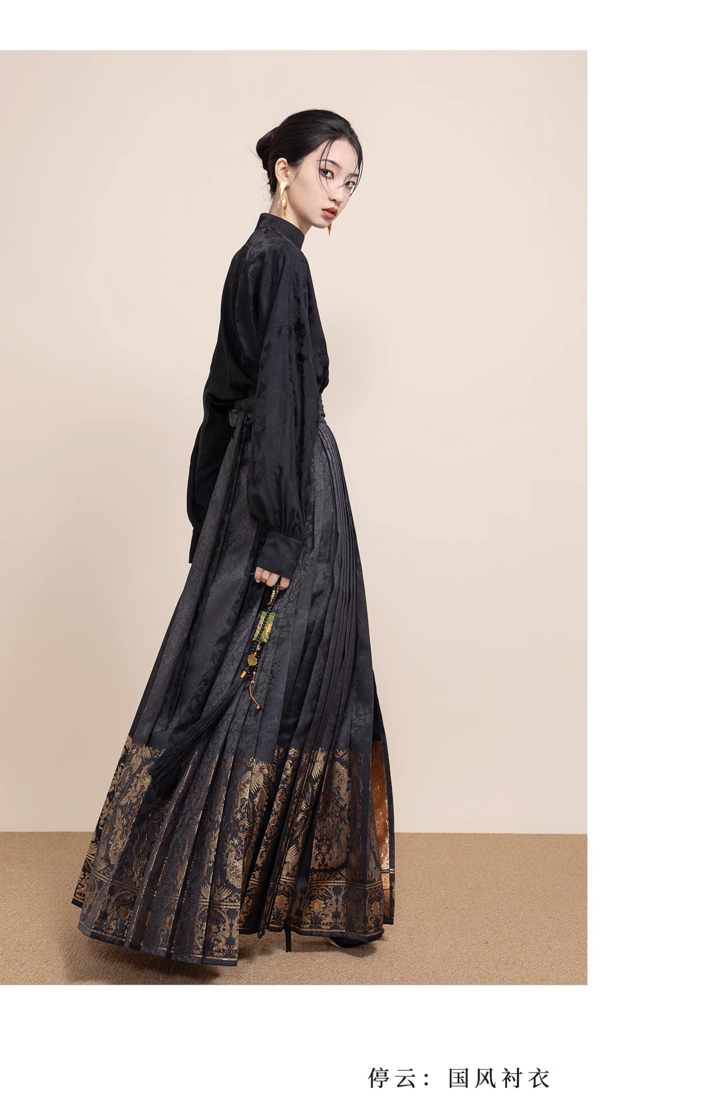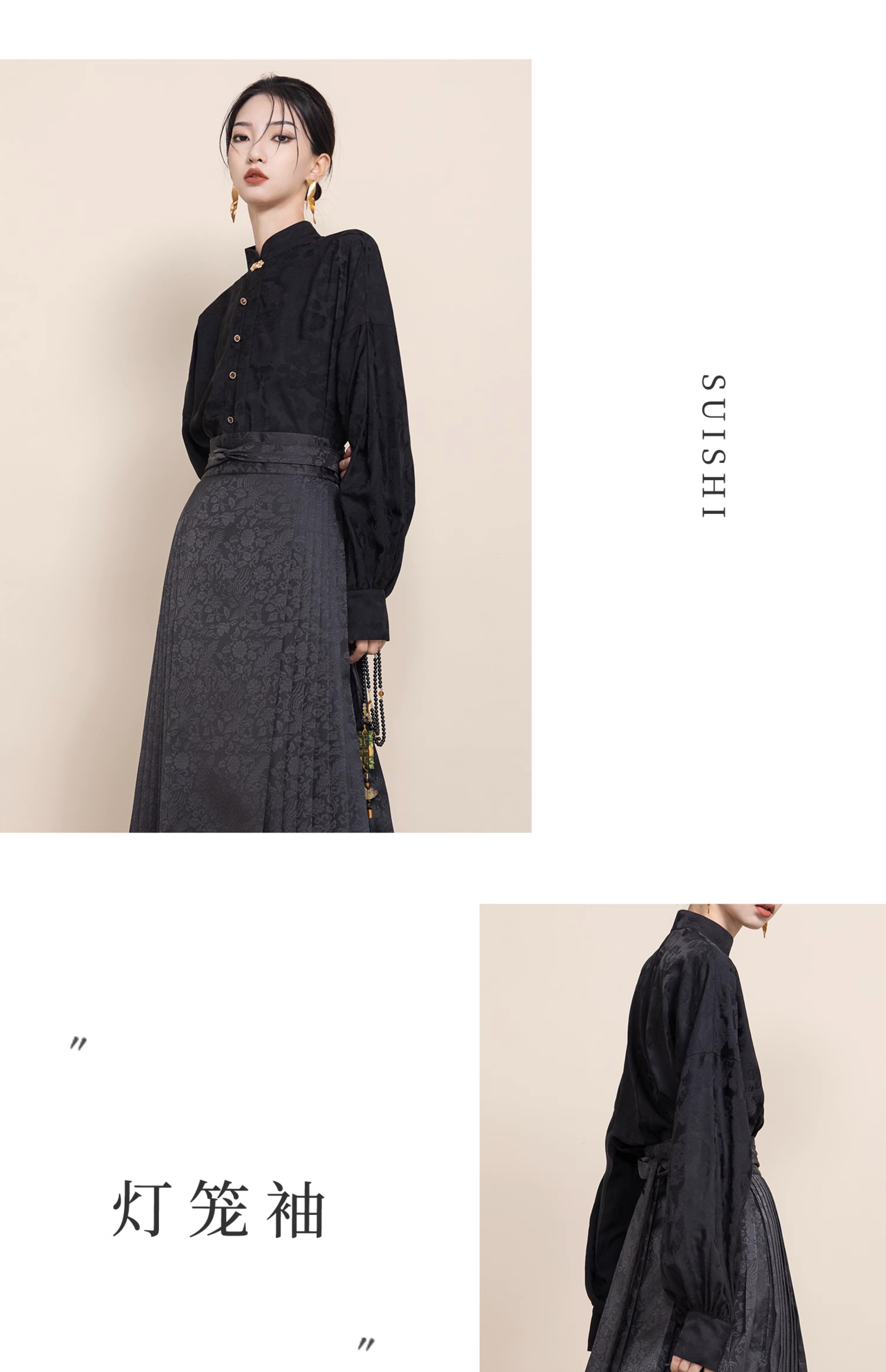ASAYA5056 – Noir Orchid Jacquard Blouse 🖤🌺