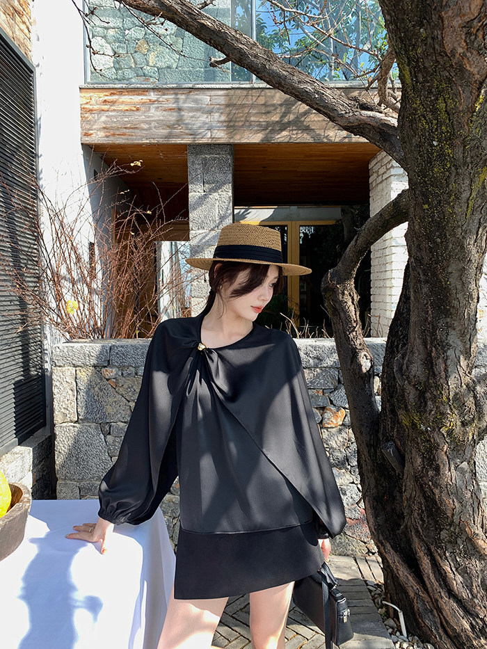 这款不规则斗篷上衣,以其大胆的设计和精致的细节