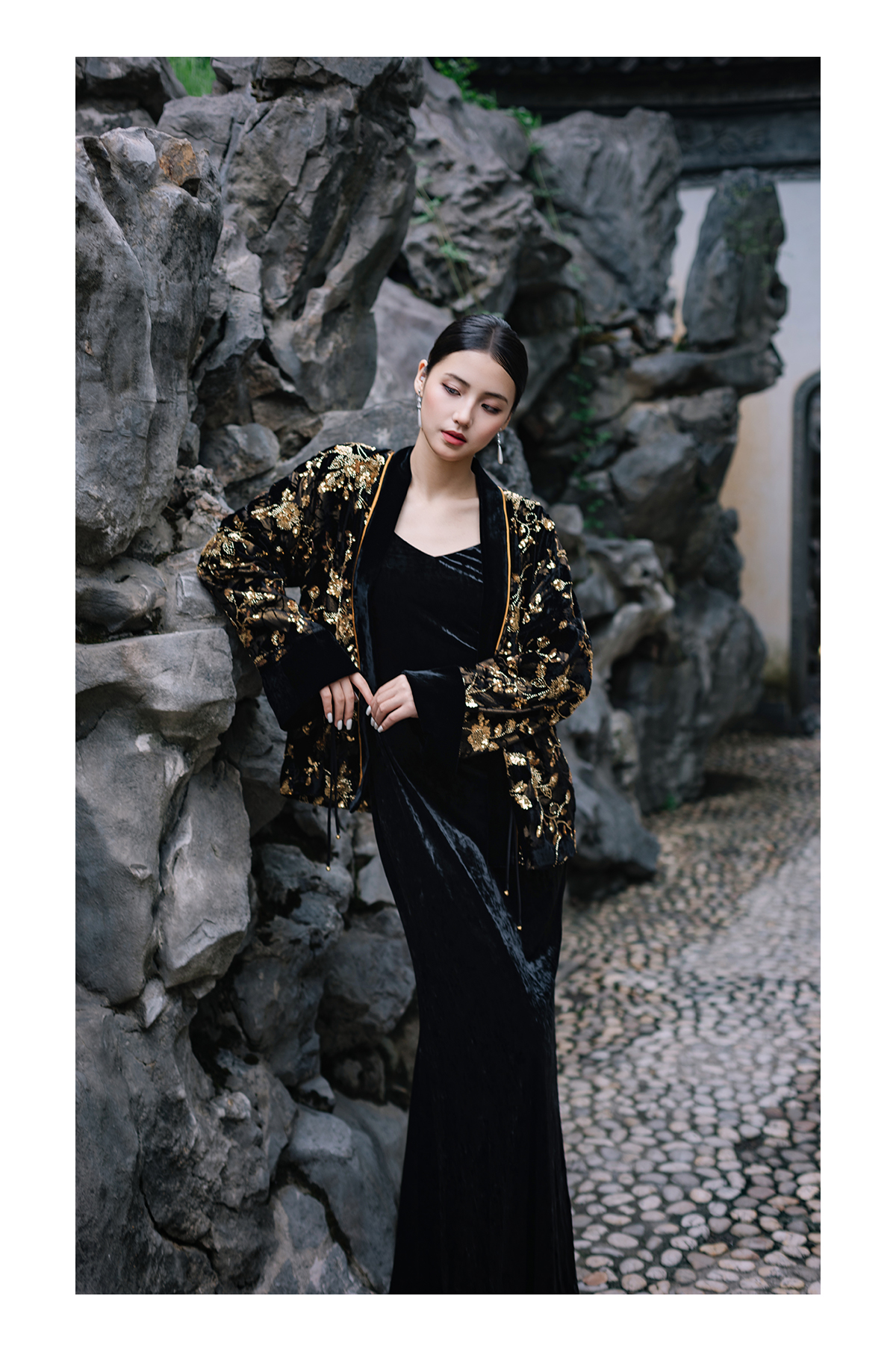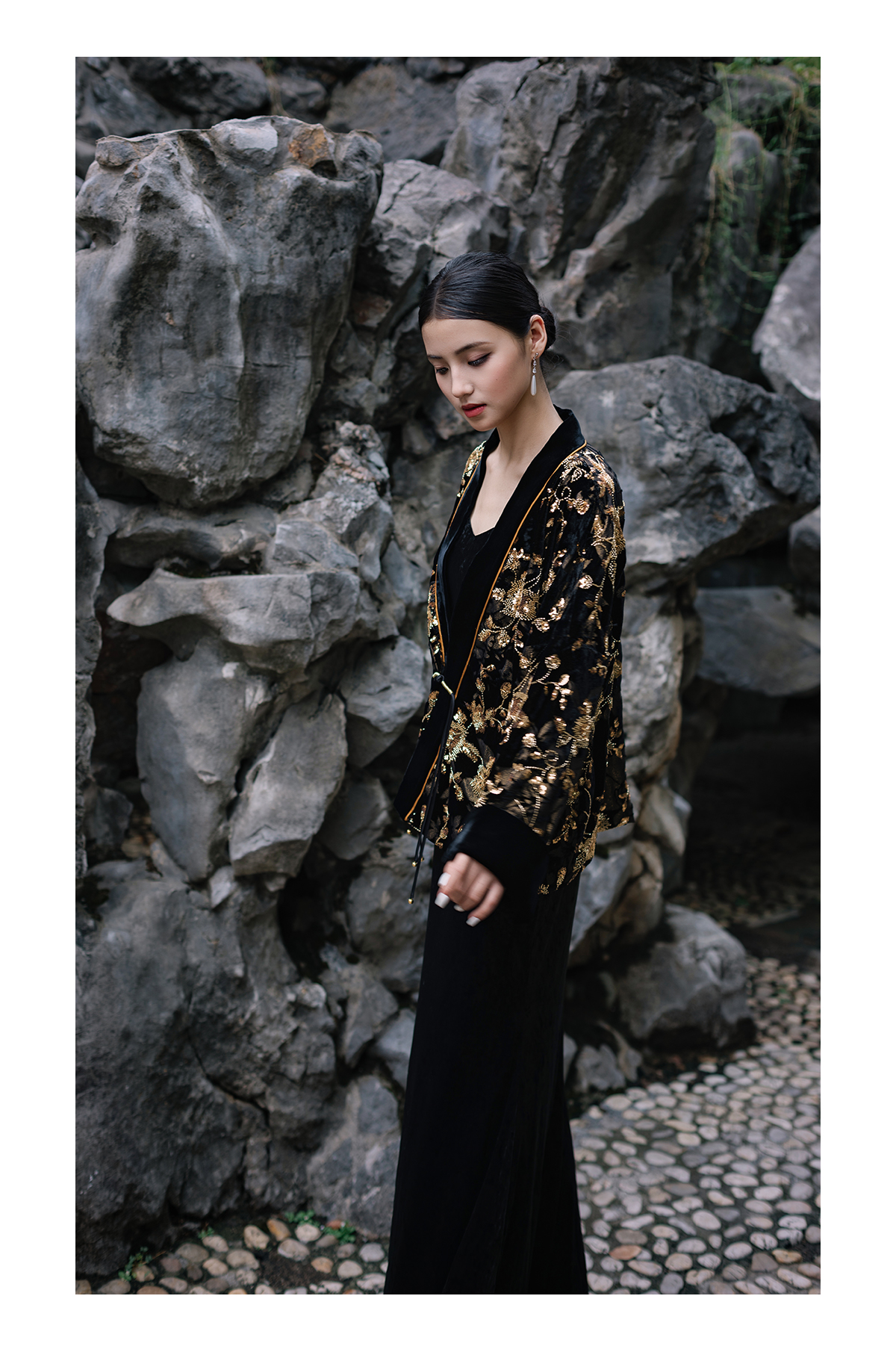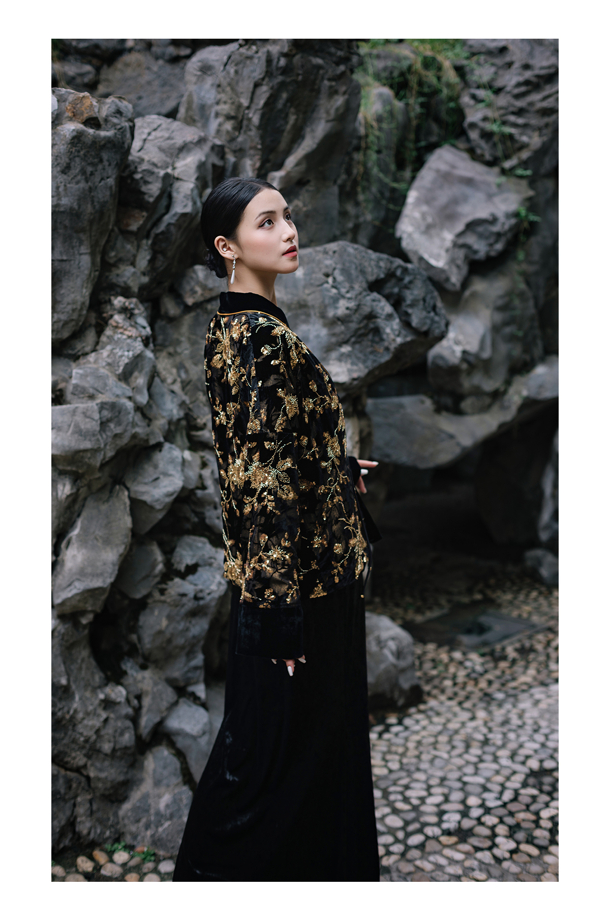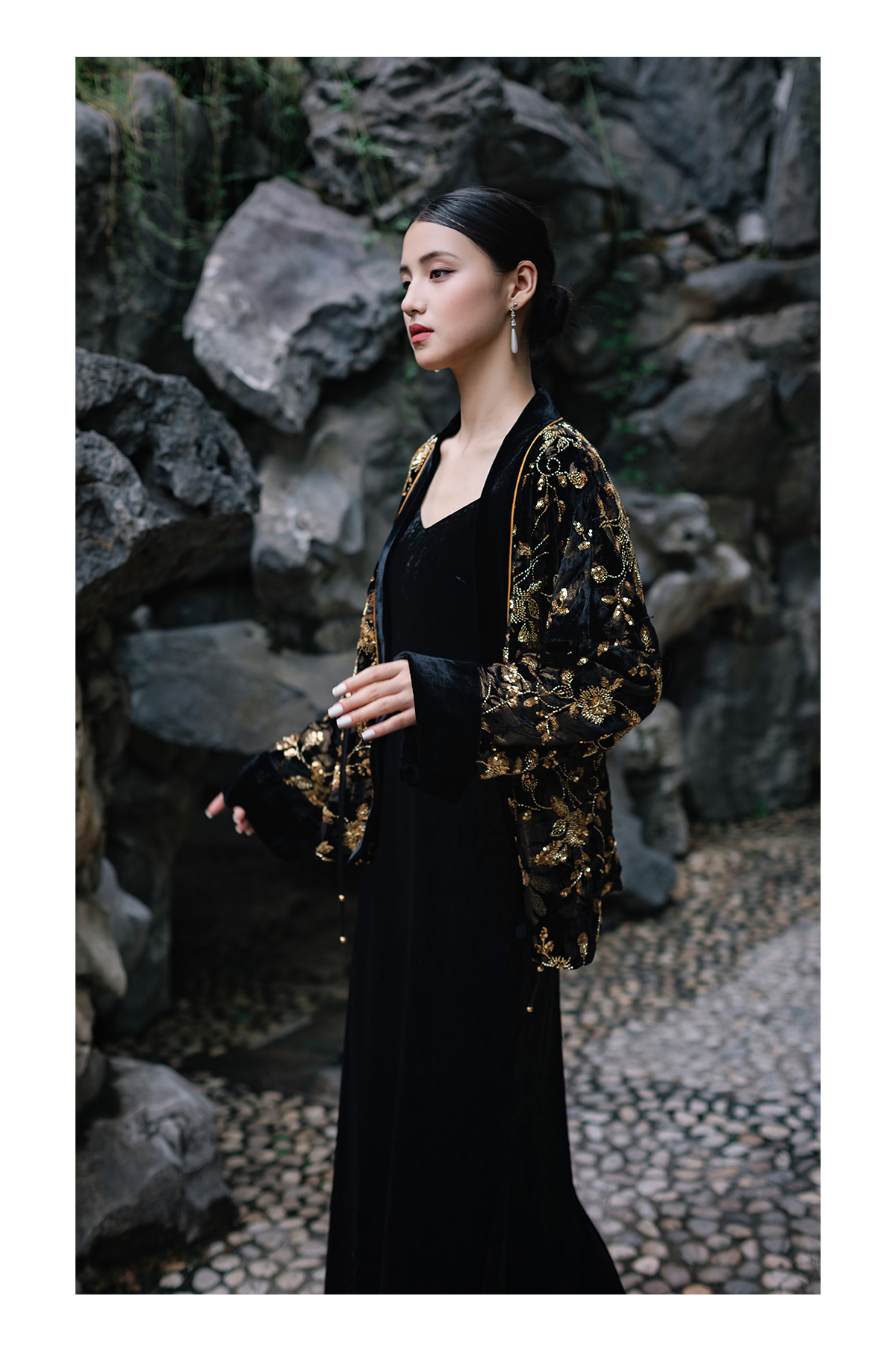 ASAYA5077 – Golden Phoenix Velvet Set 🖤✨