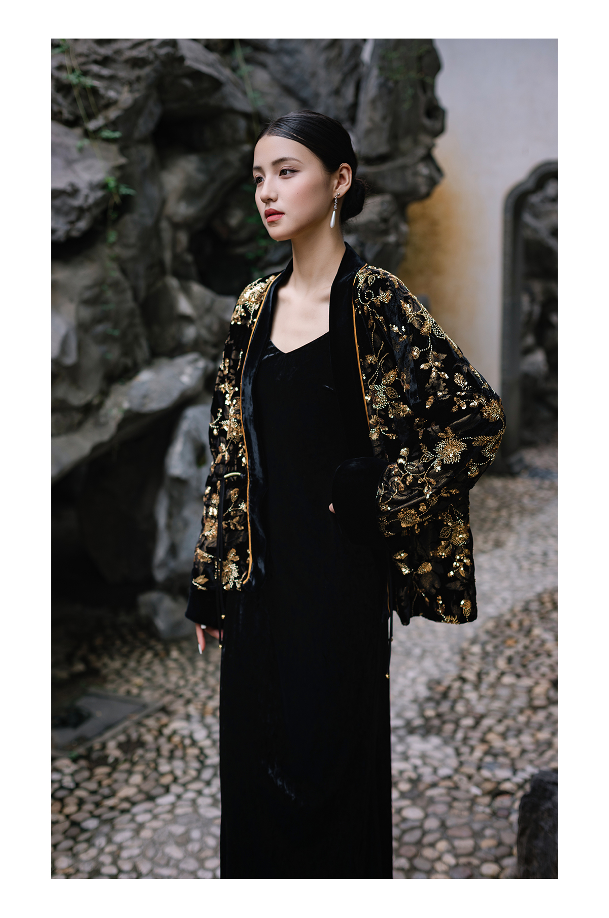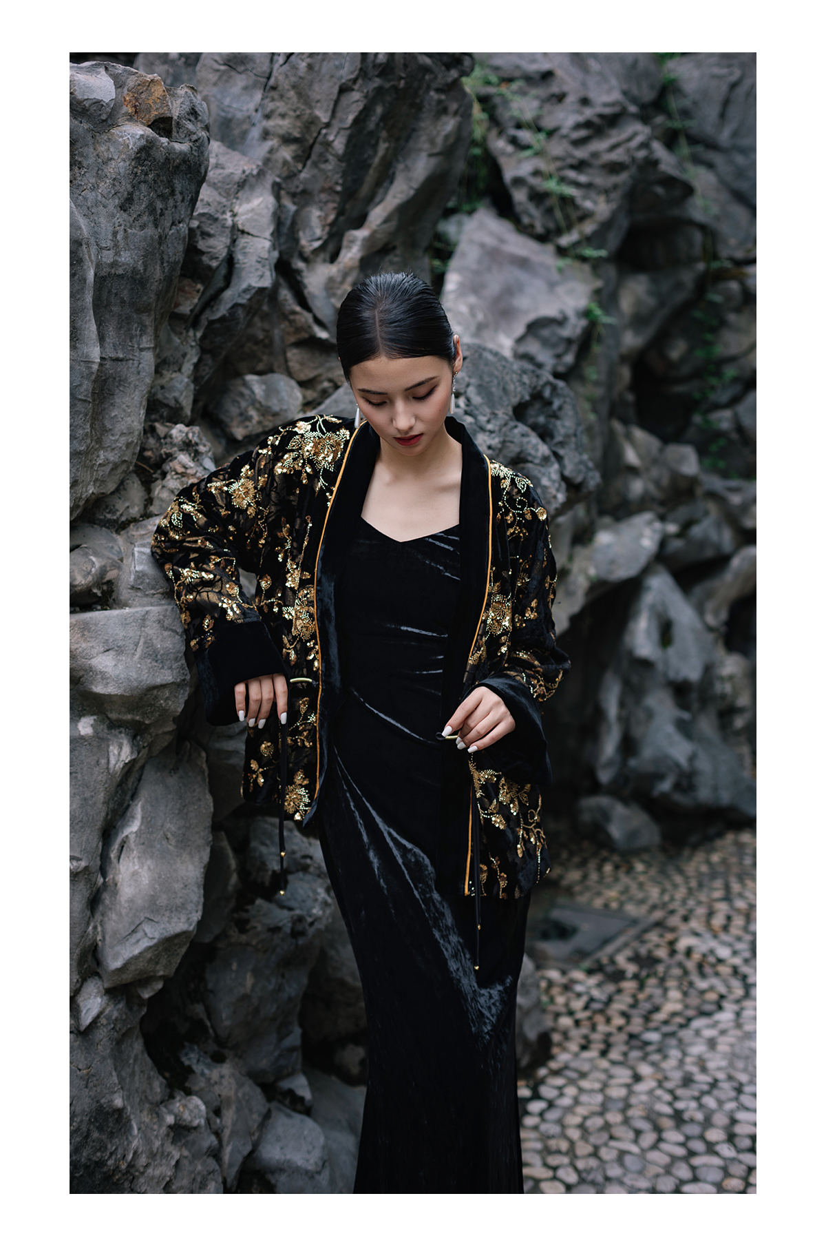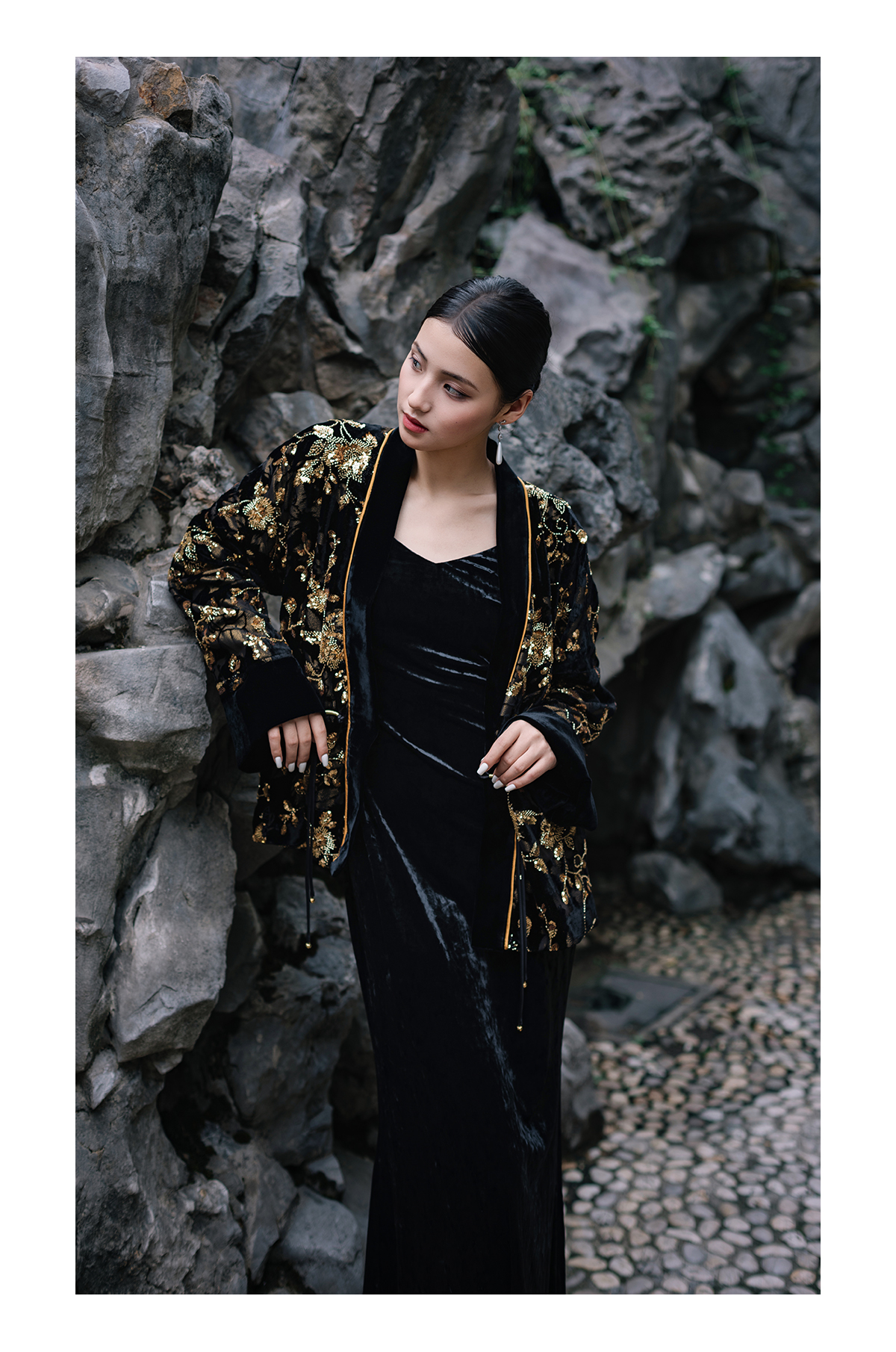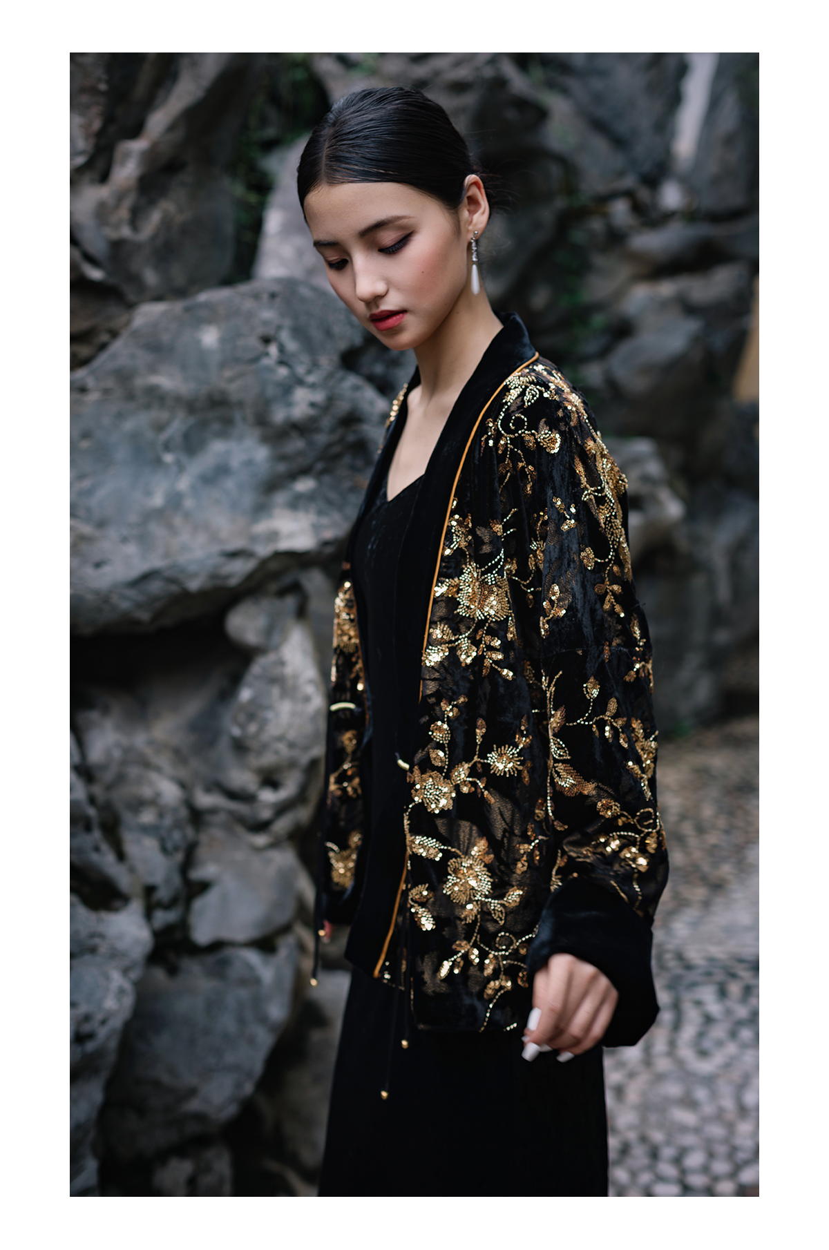 ASAYA5077 – Golden Phoenix Velvet Set 🖤✨