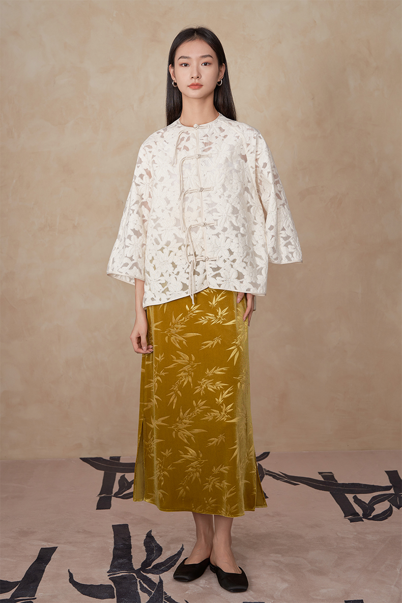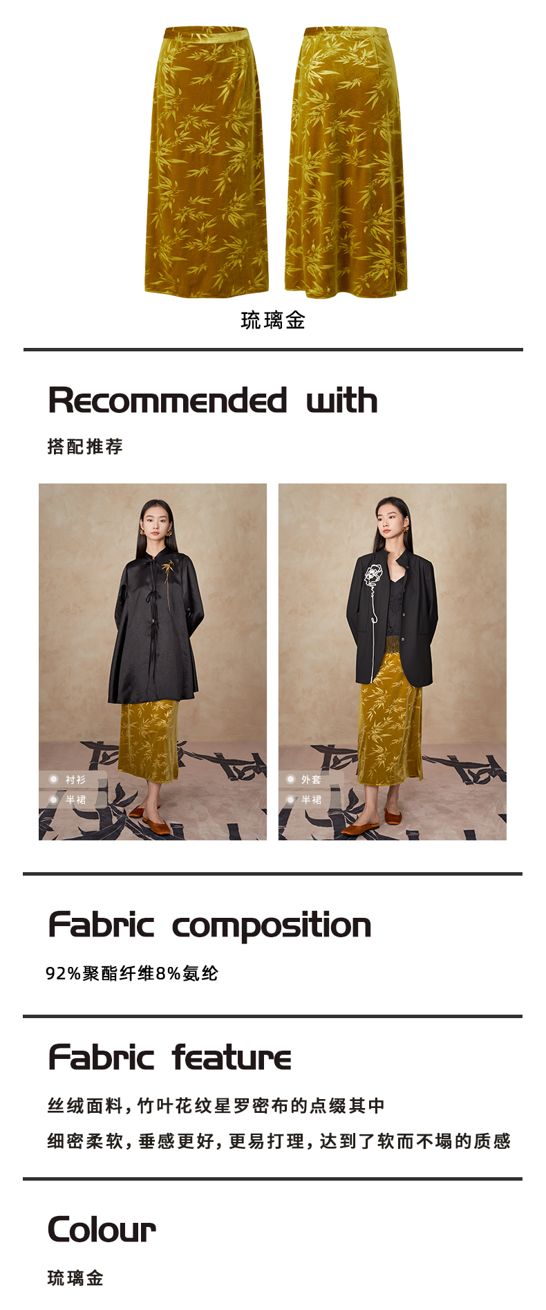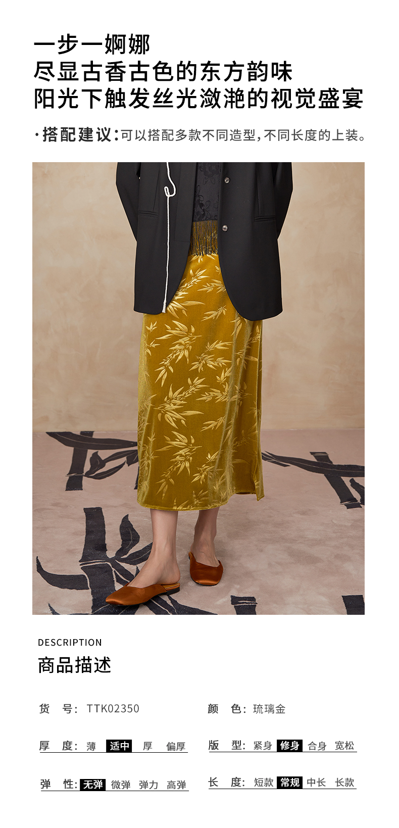 ASAYA3612 Tang skirt women's glass gold velvet bamboo leaf pattern noble ancient charm long skirt
