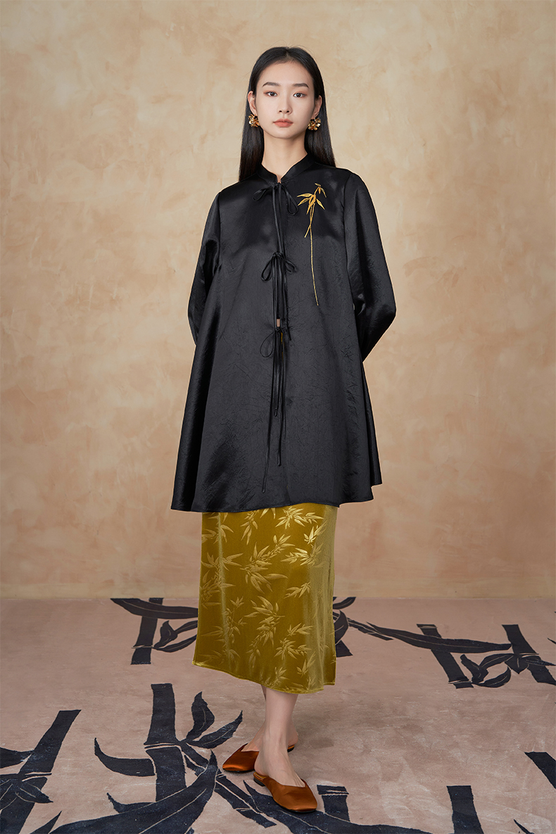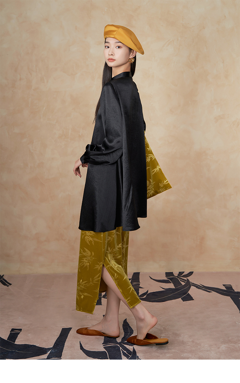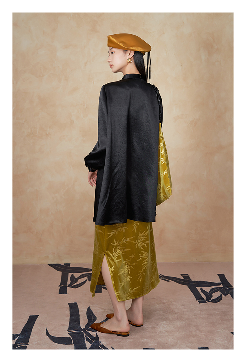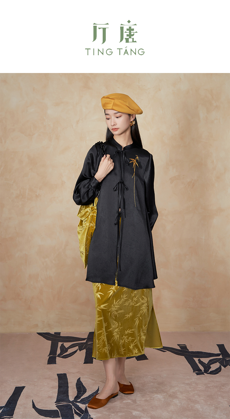 ASAYA3612 Tang skirt women's glass gold velvet bamboo leaf pattern noble ancient charm long skirt