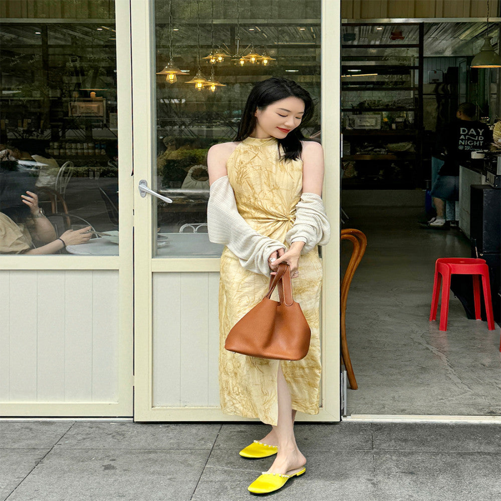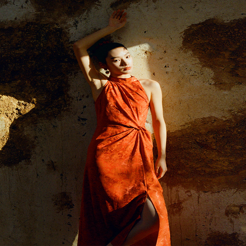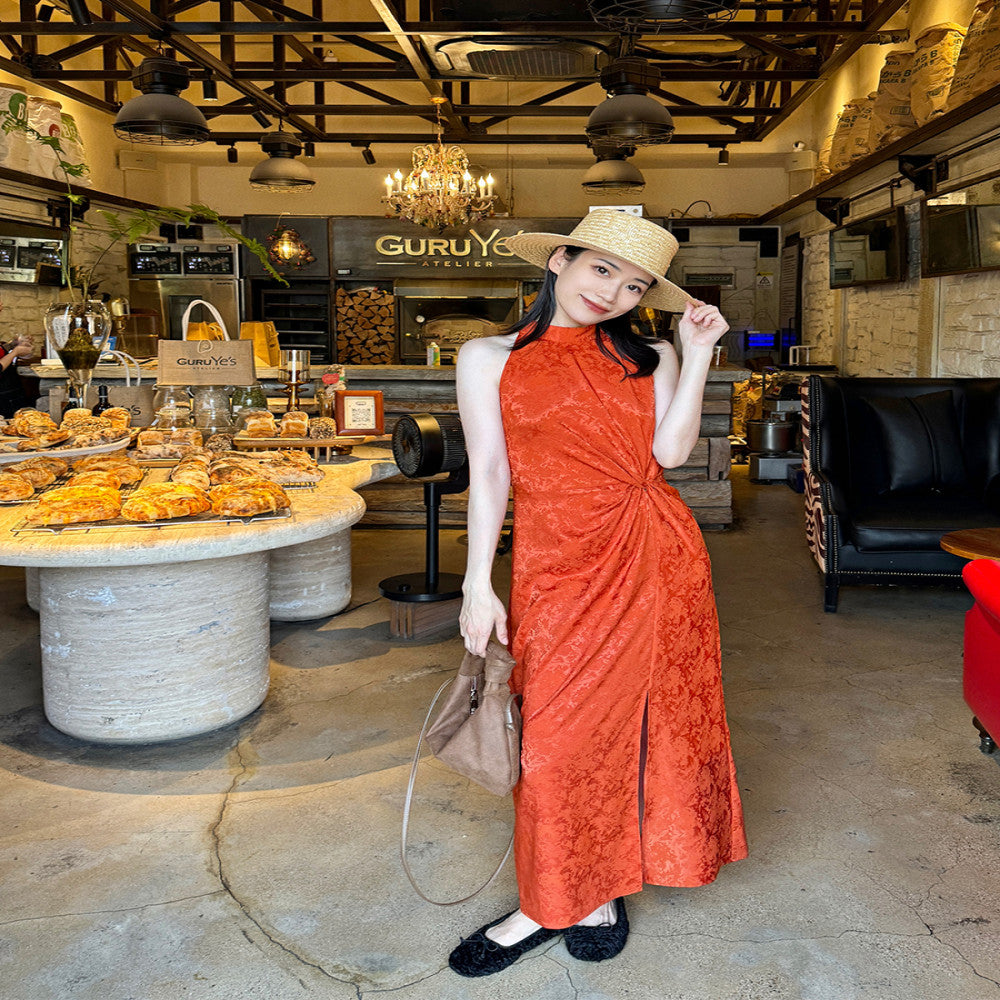 ASAYA3410 Ting Tang "Button and Knot" New Chinese style red jacquard dress dress Halter neck strapless waist sleeveless long dress