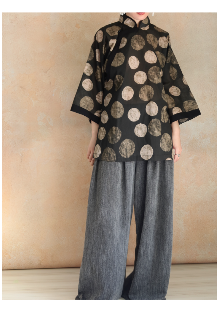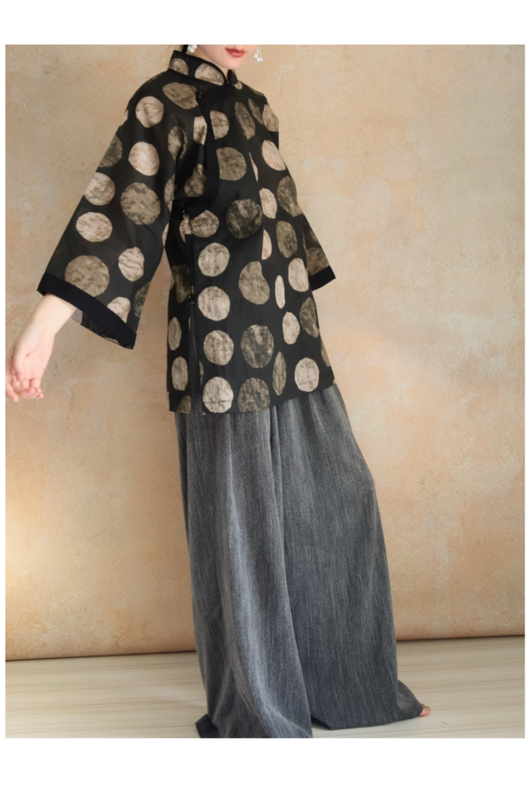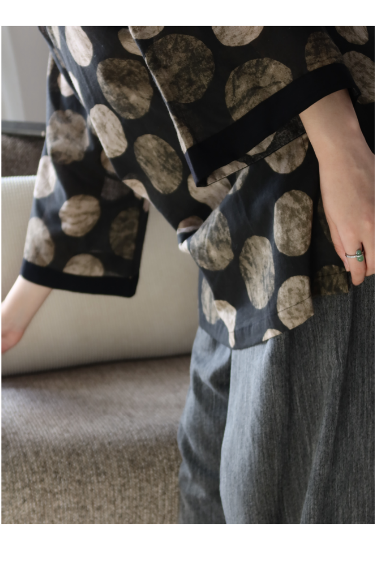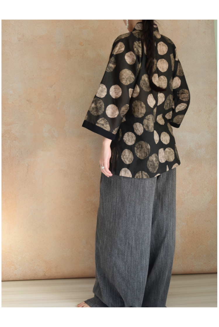 ASAYA5227 – Zen Art Dot Kimono Top 🖤✨