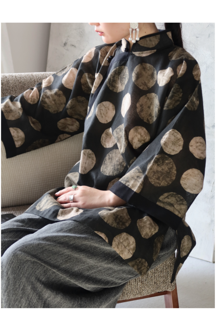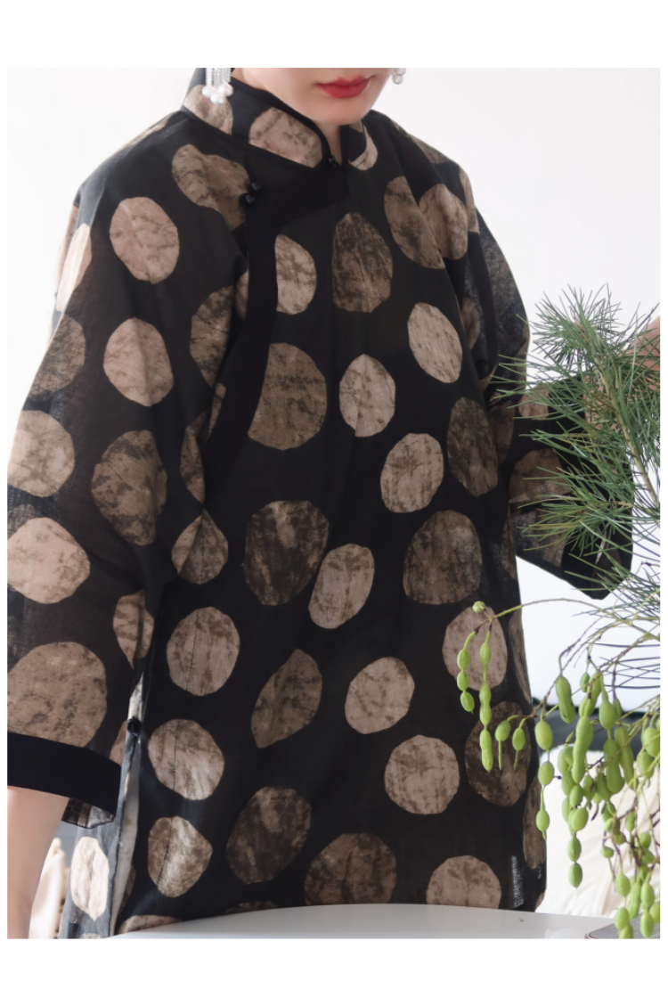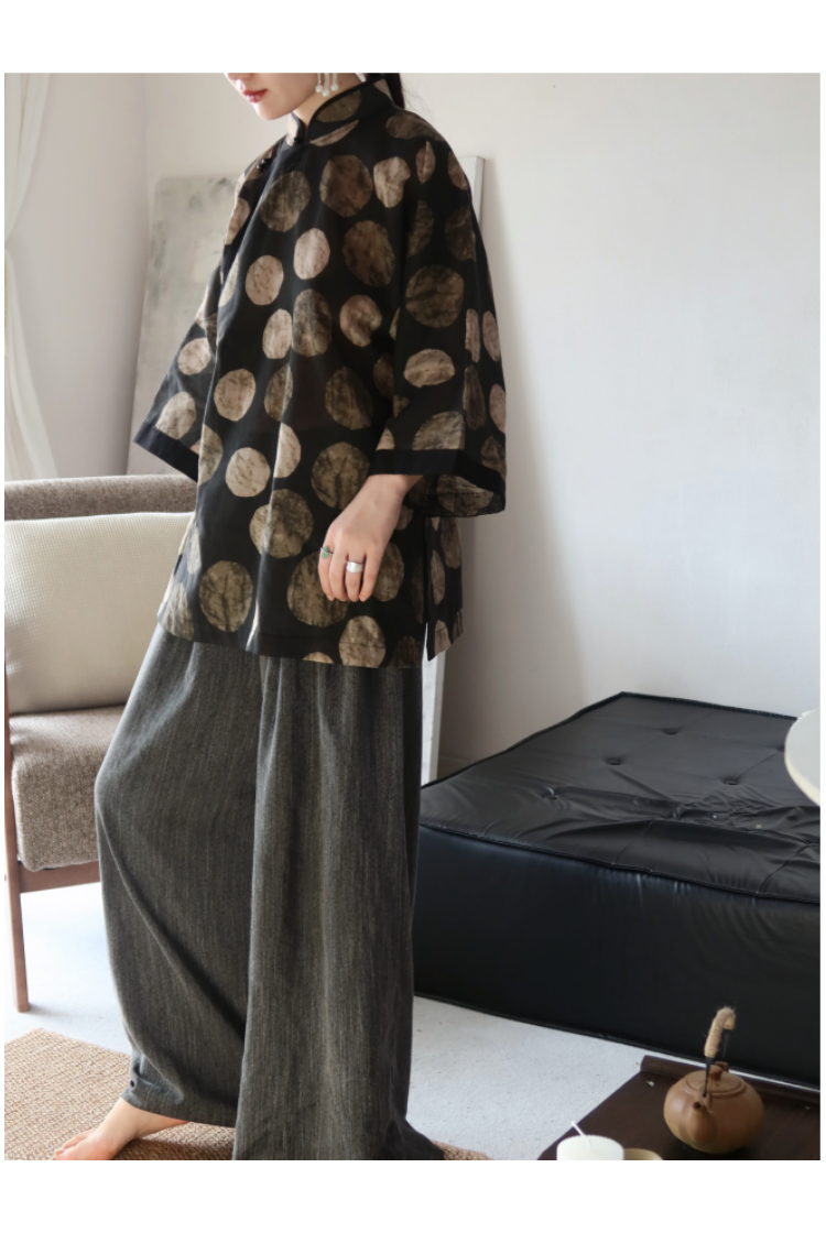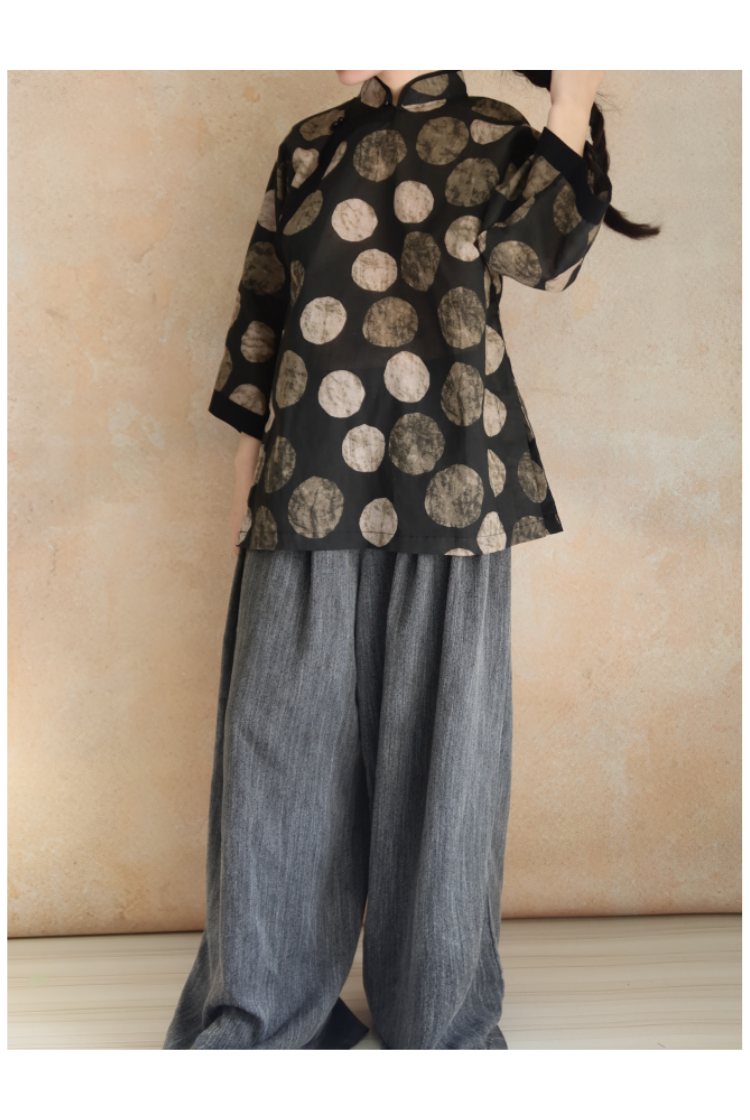 ASAYA5227 – Zen Art Dot Kimono Top 🖤✨
