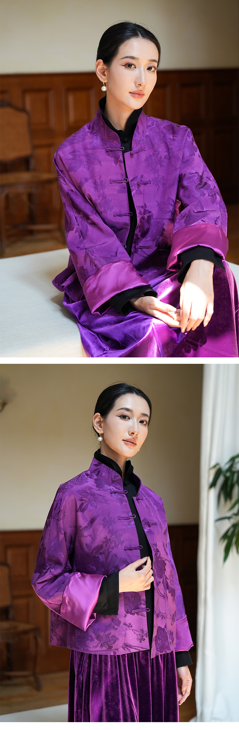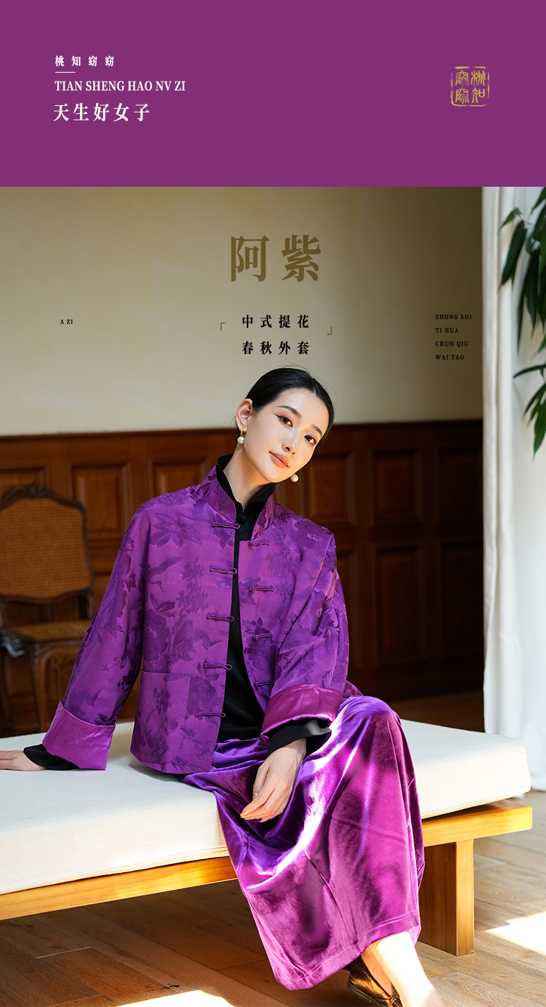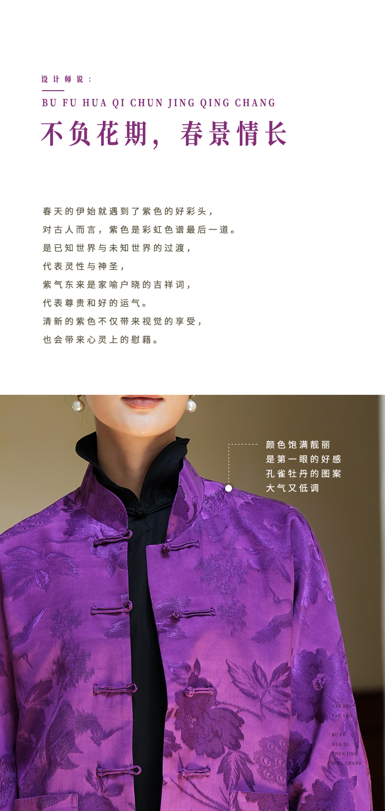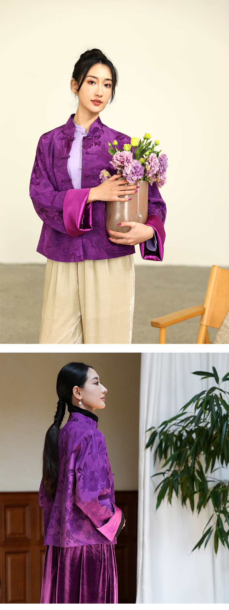 ASAYA1791 Tao Zhi Miao 2023 Spring / A Zi Chinese literary spring and autumn stand up collar sandwich jacquard jacket solid color purple