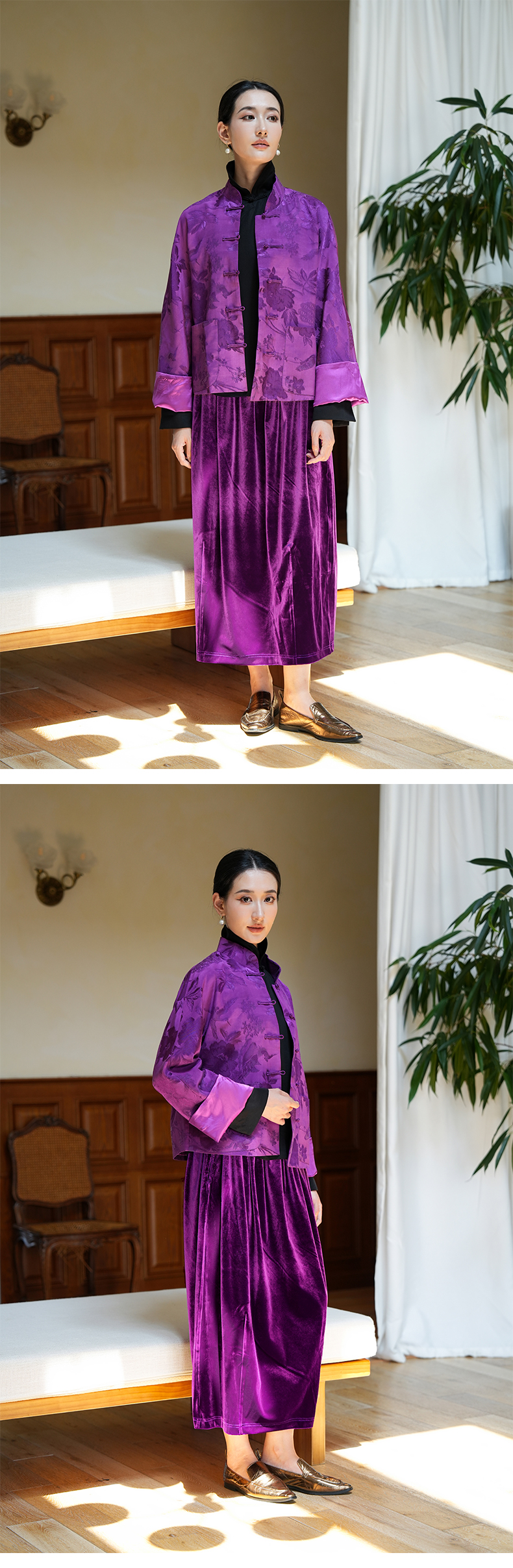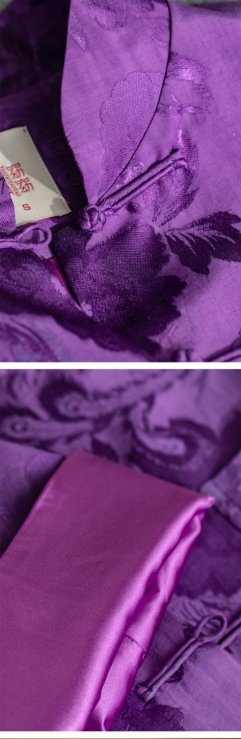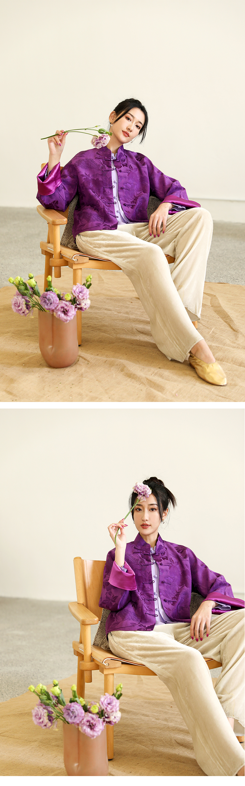 ASAYA1791 Tao Zhi Miao 2023 Spring / A Zi Chinese literary spring and autumn stand up collar sandwich jacquard jacket solid color purple
