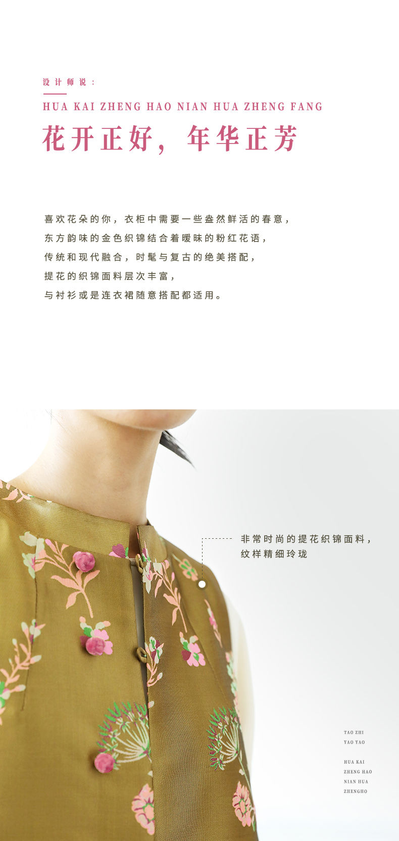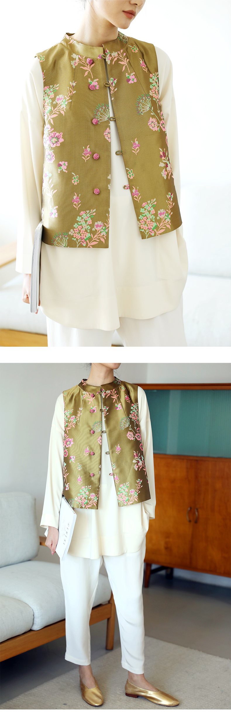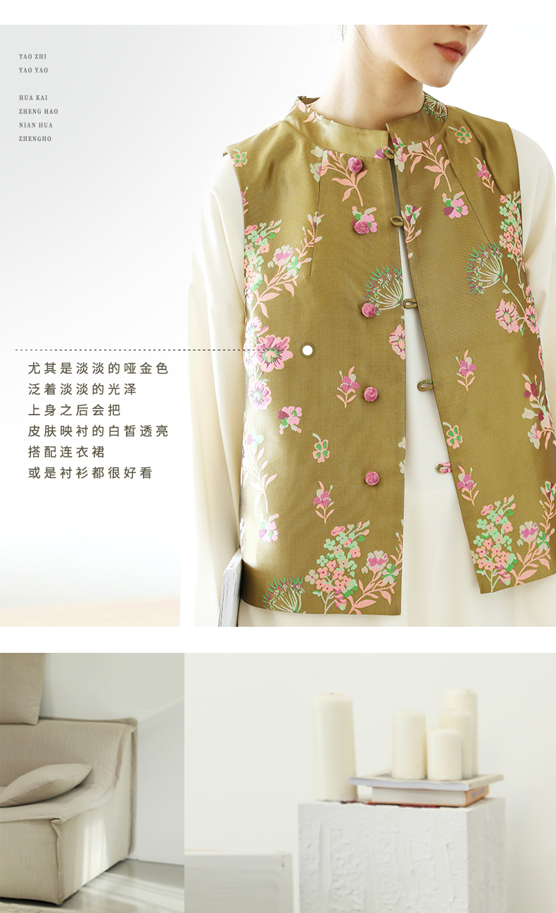 Asaya1218 - Gold powder brocade jacquard Chinese literary vest waistcoat