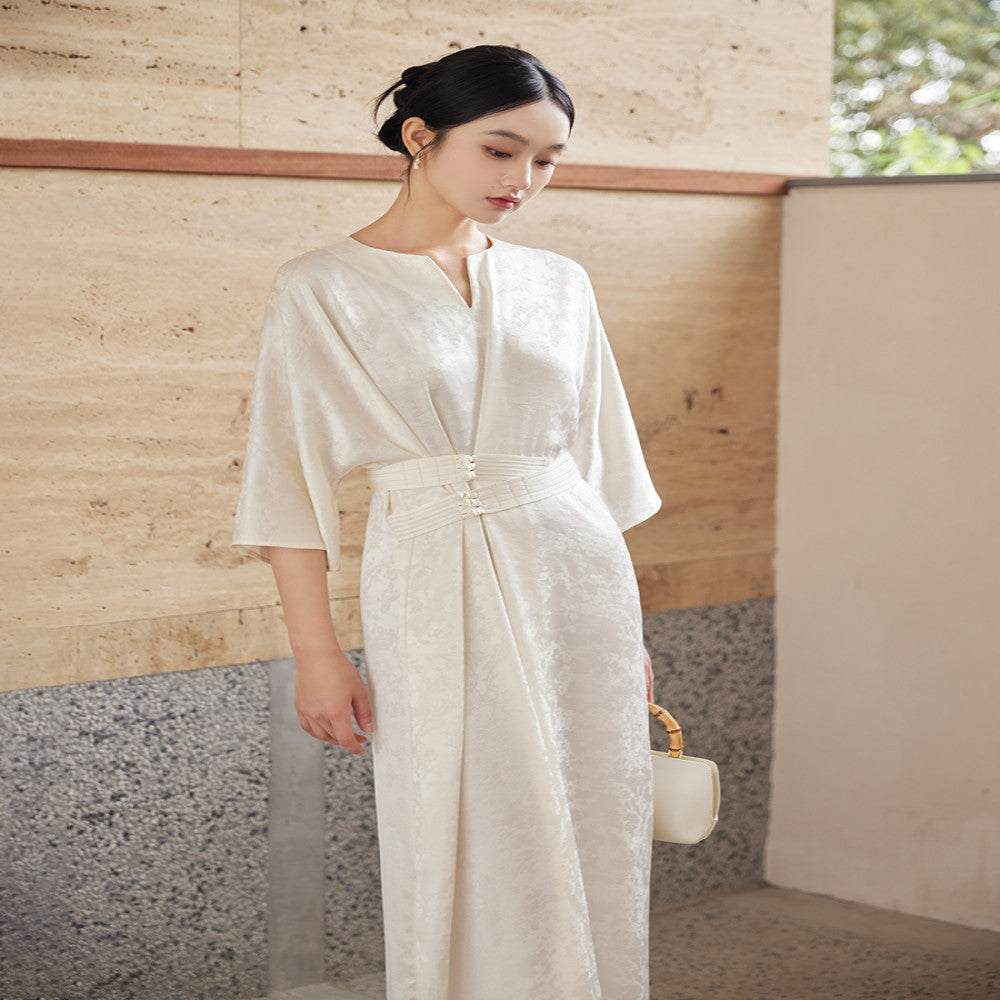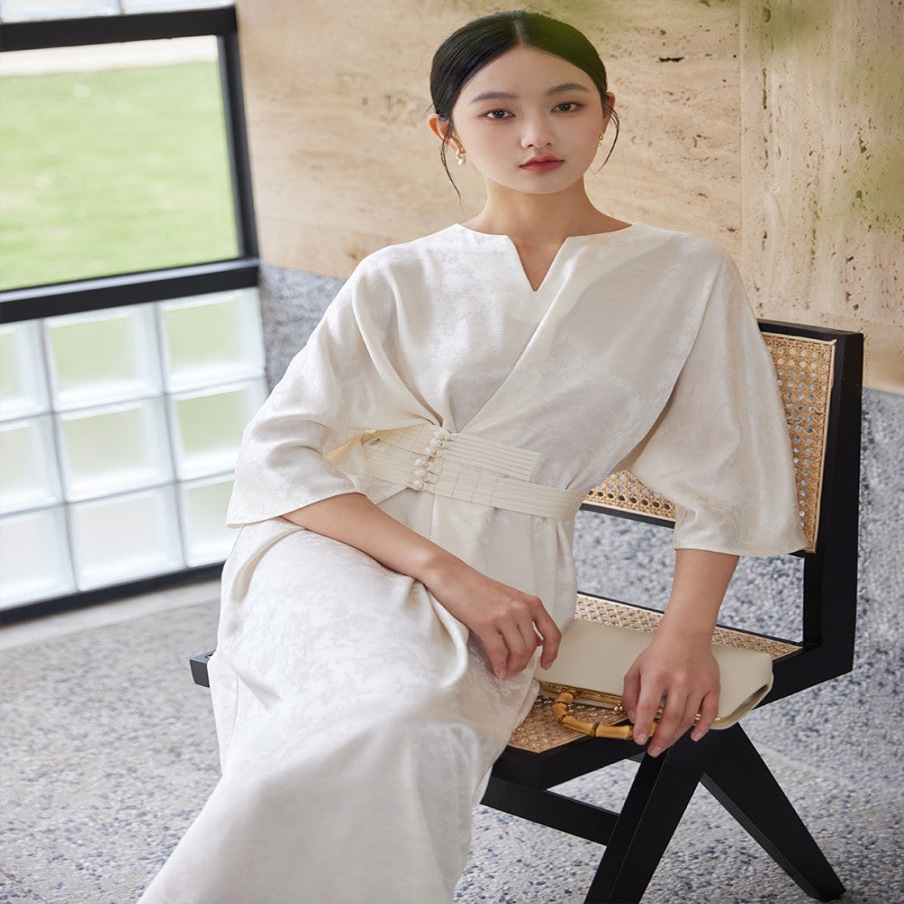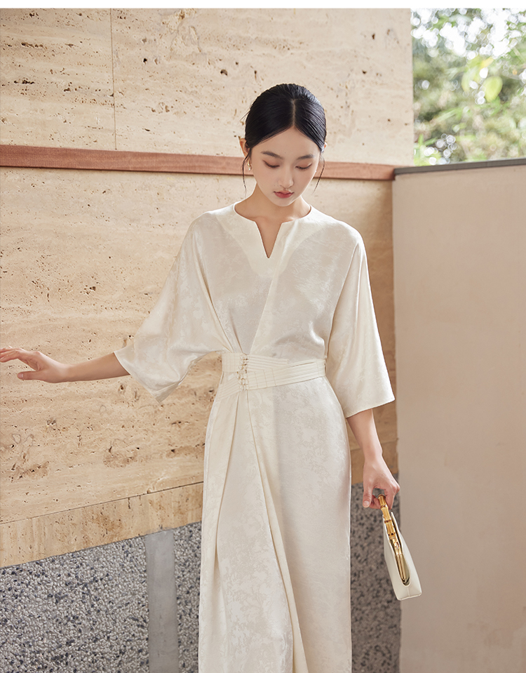ASAYA3392 Chinese spring style, national style Zen tea dress, acetate satin dress