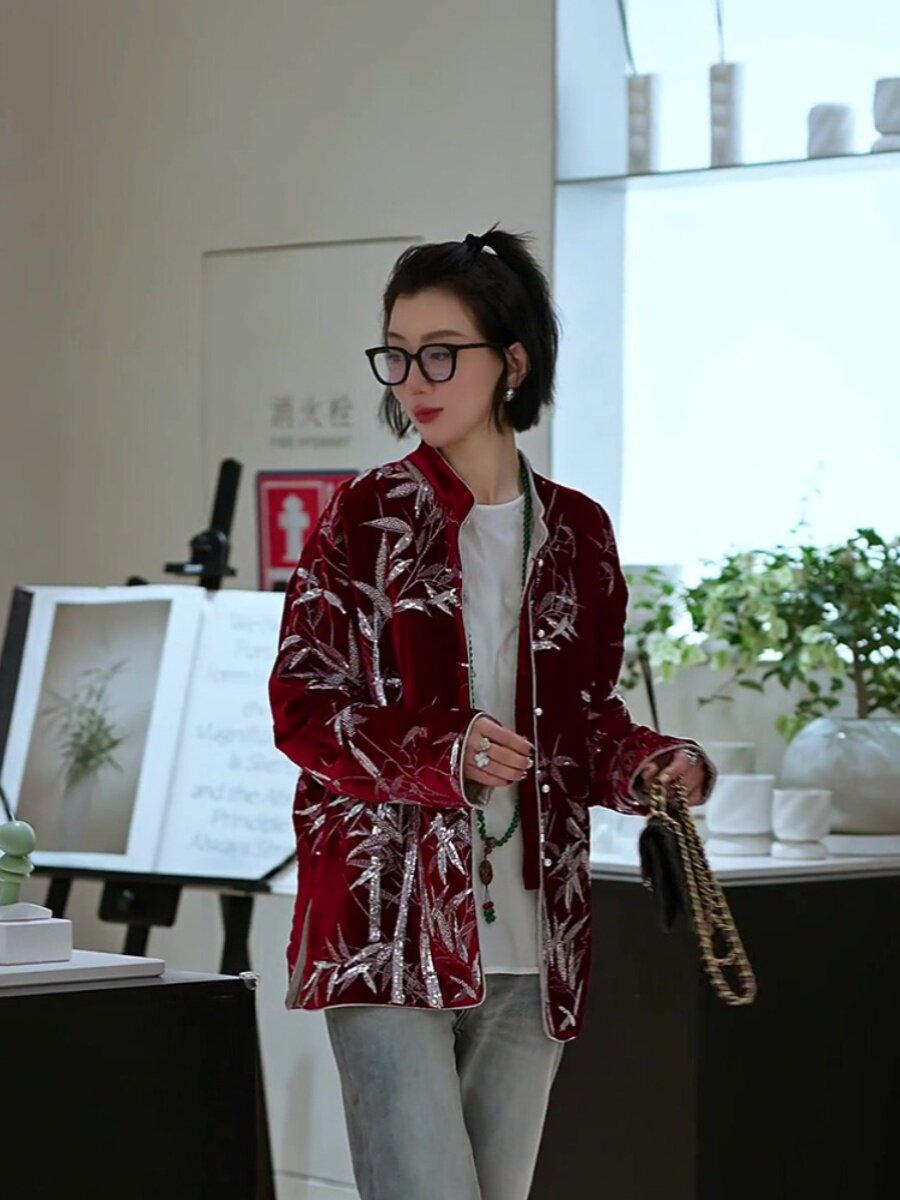 ASAYA5960 – Crimson Bamboo Velvet Jacket 🎋❤️