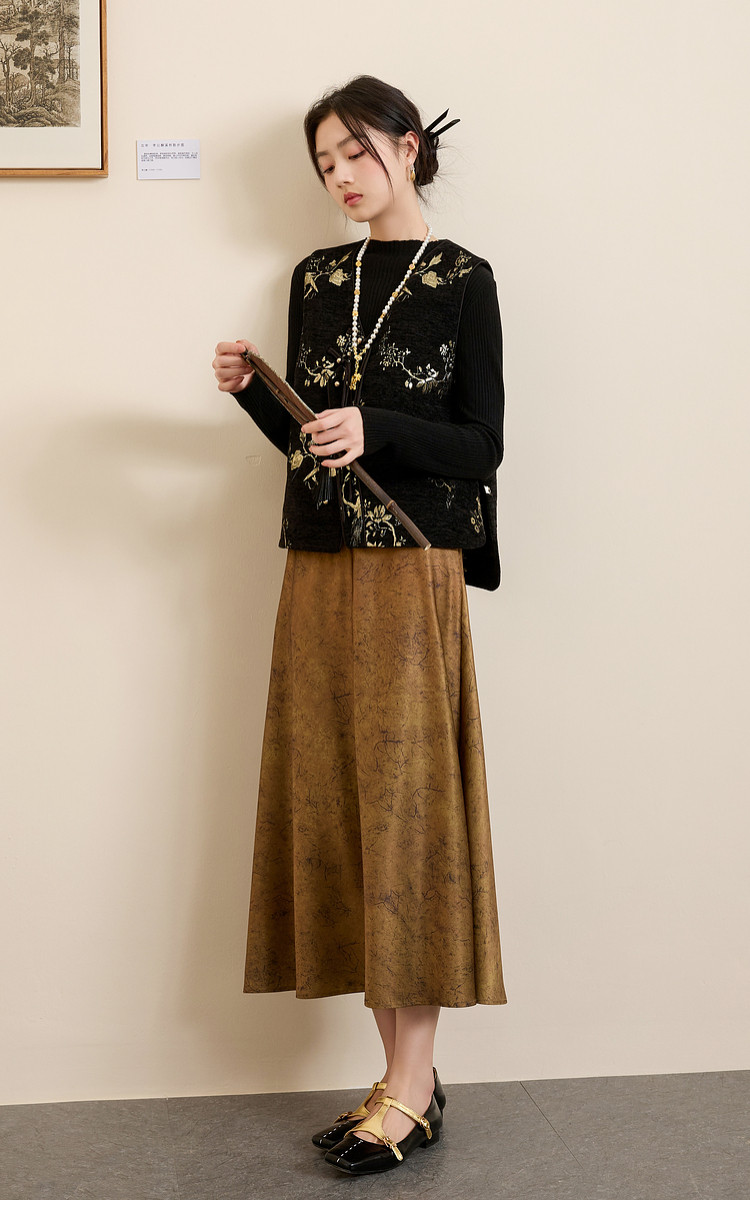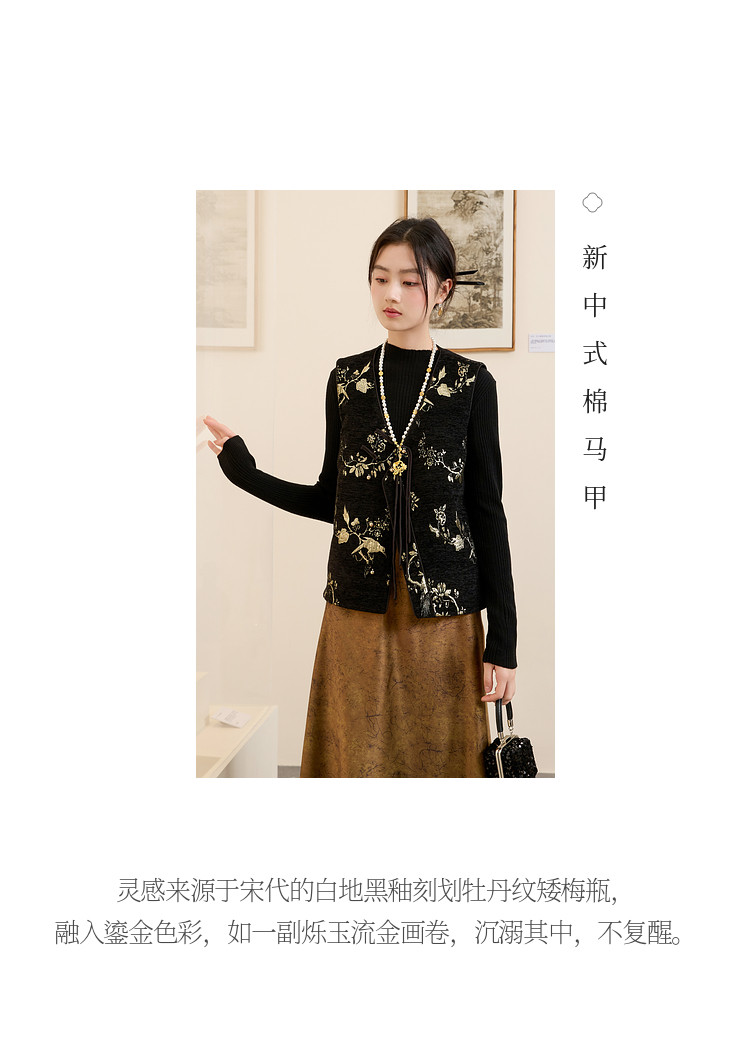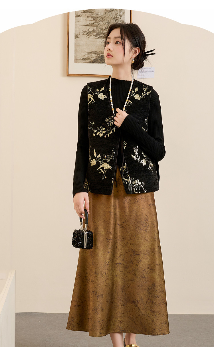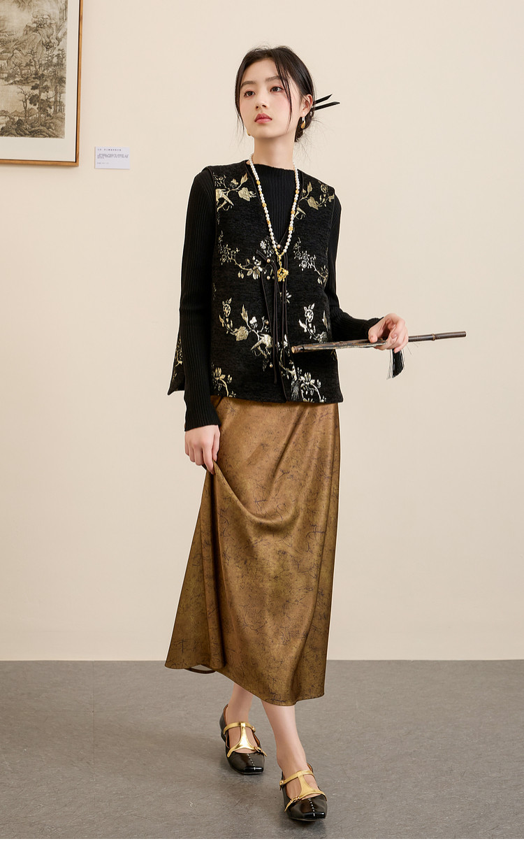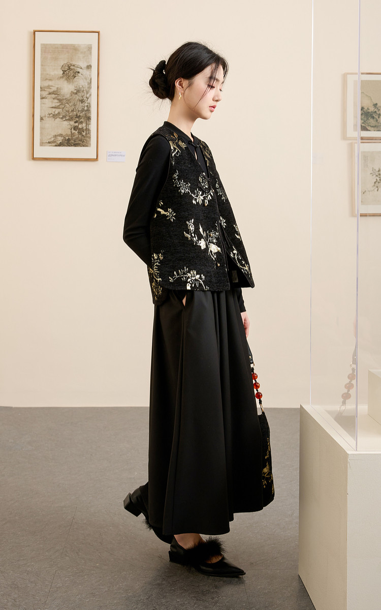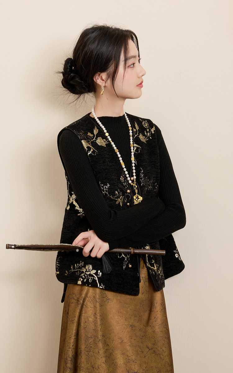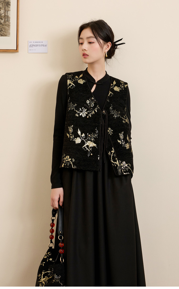 ASAYA5299 – Noir Botanical Brocade Vest 🖤✨