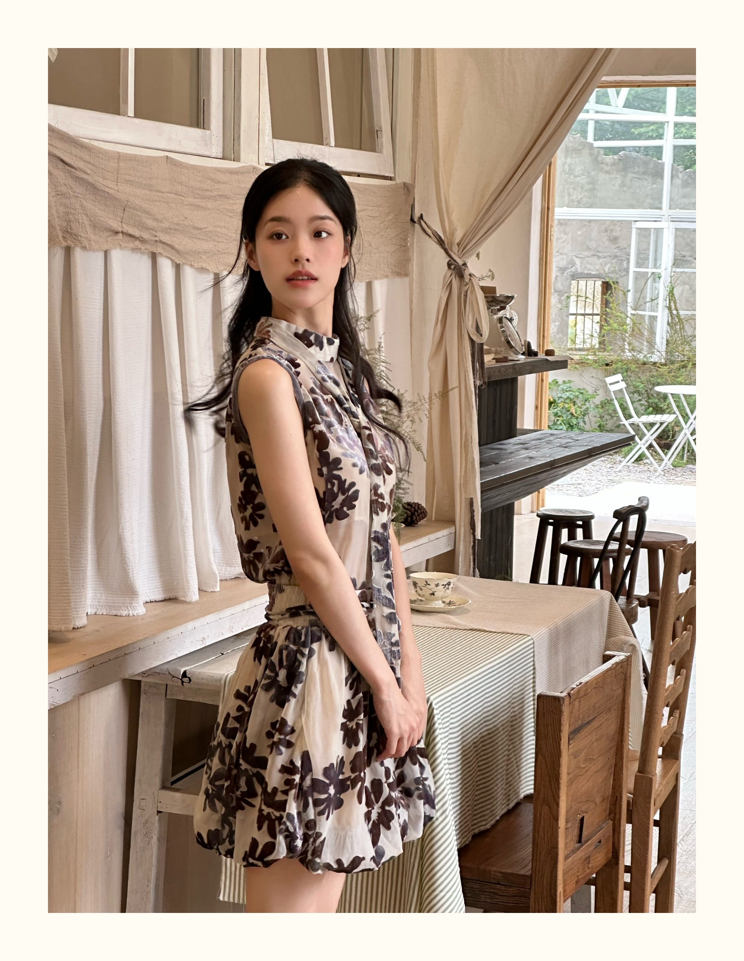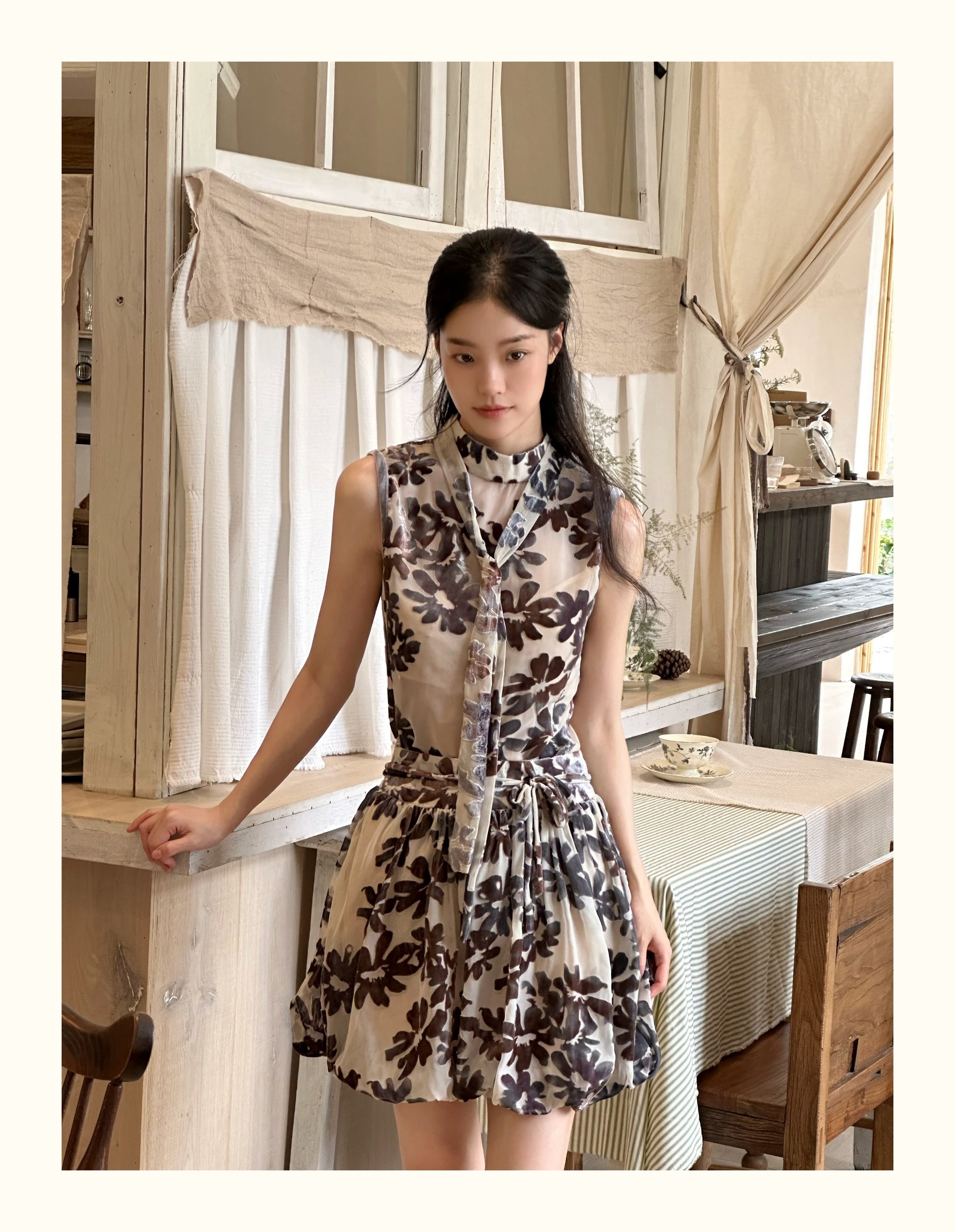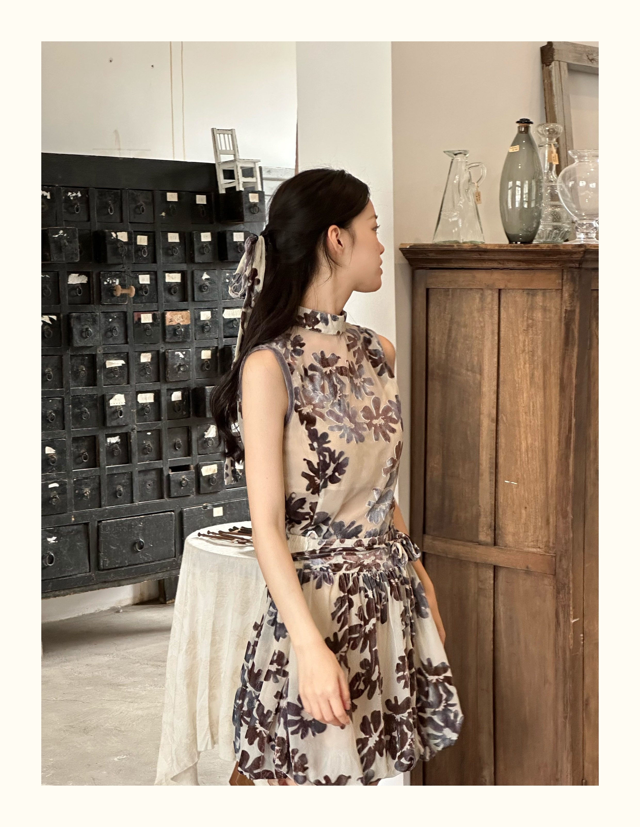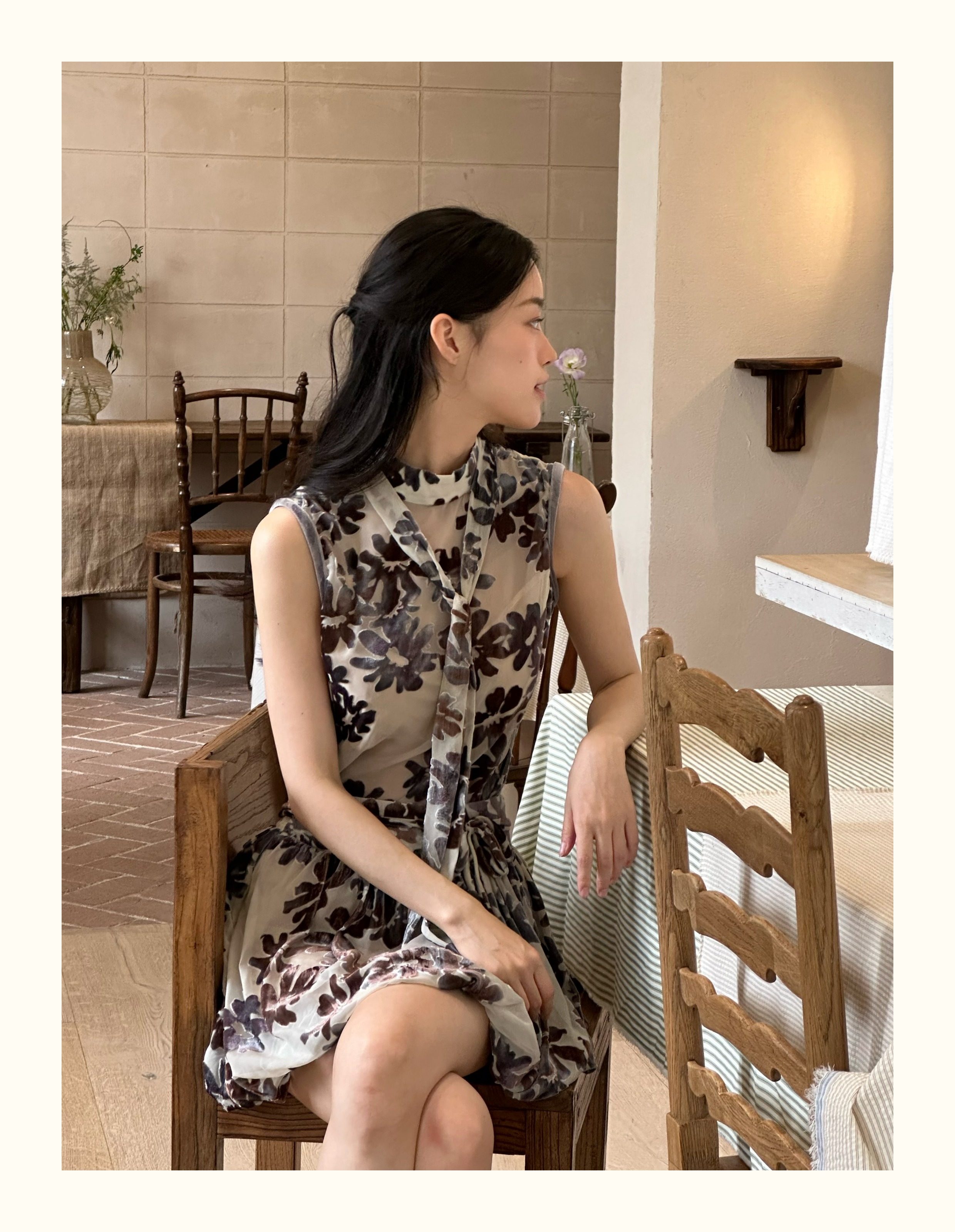 ASAYA5411 – Velvet Bloom Mandarin Mini Dress 🌿✨