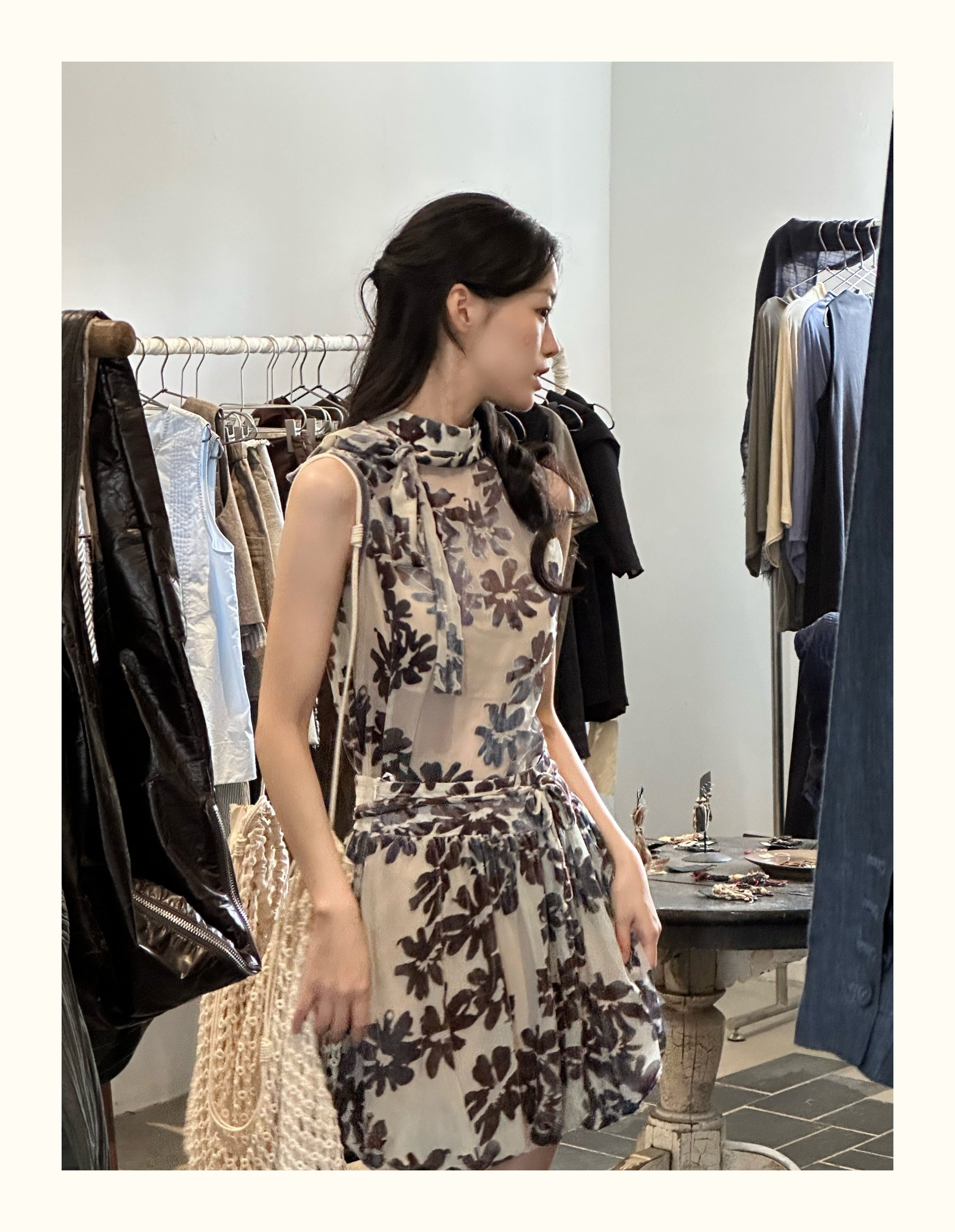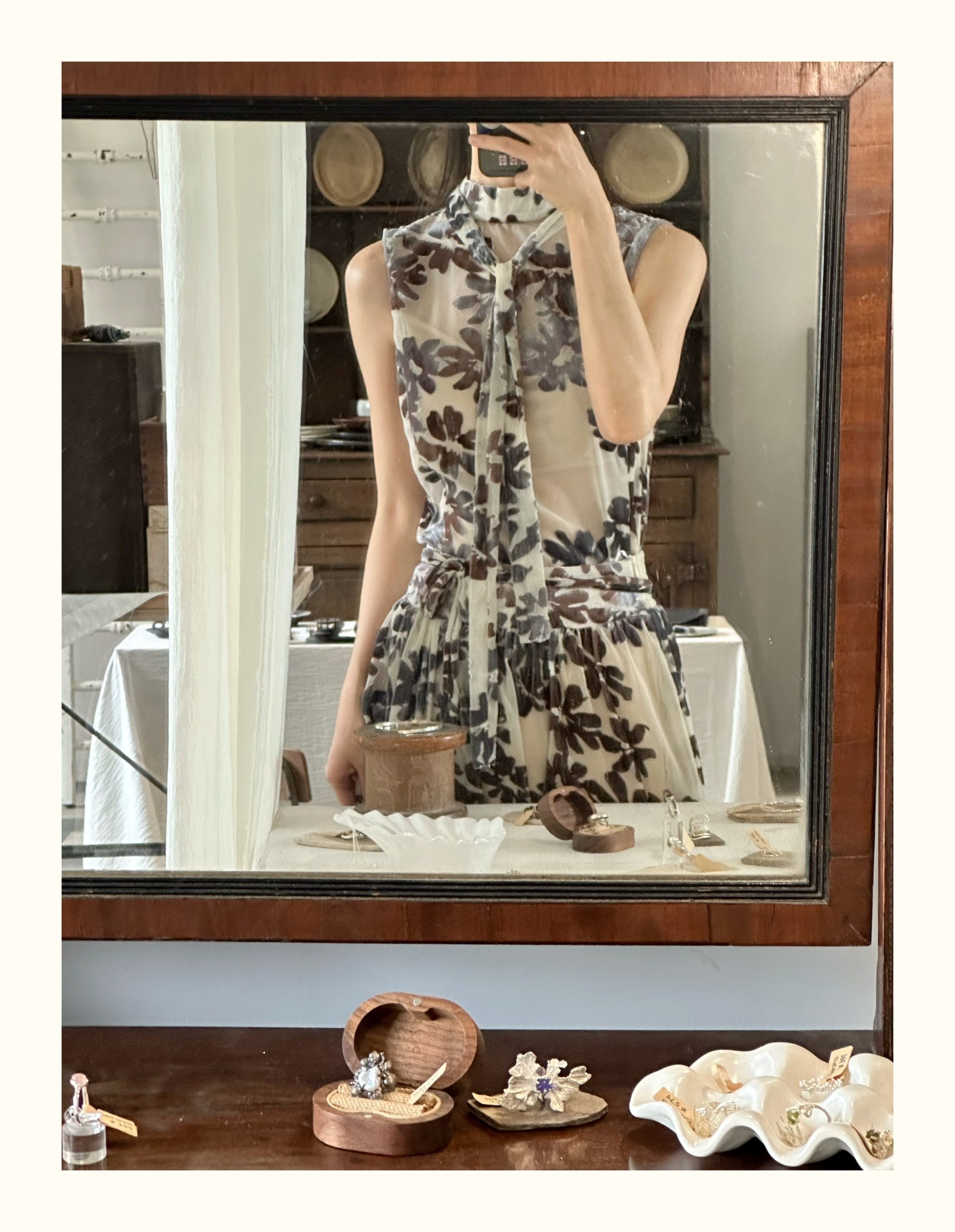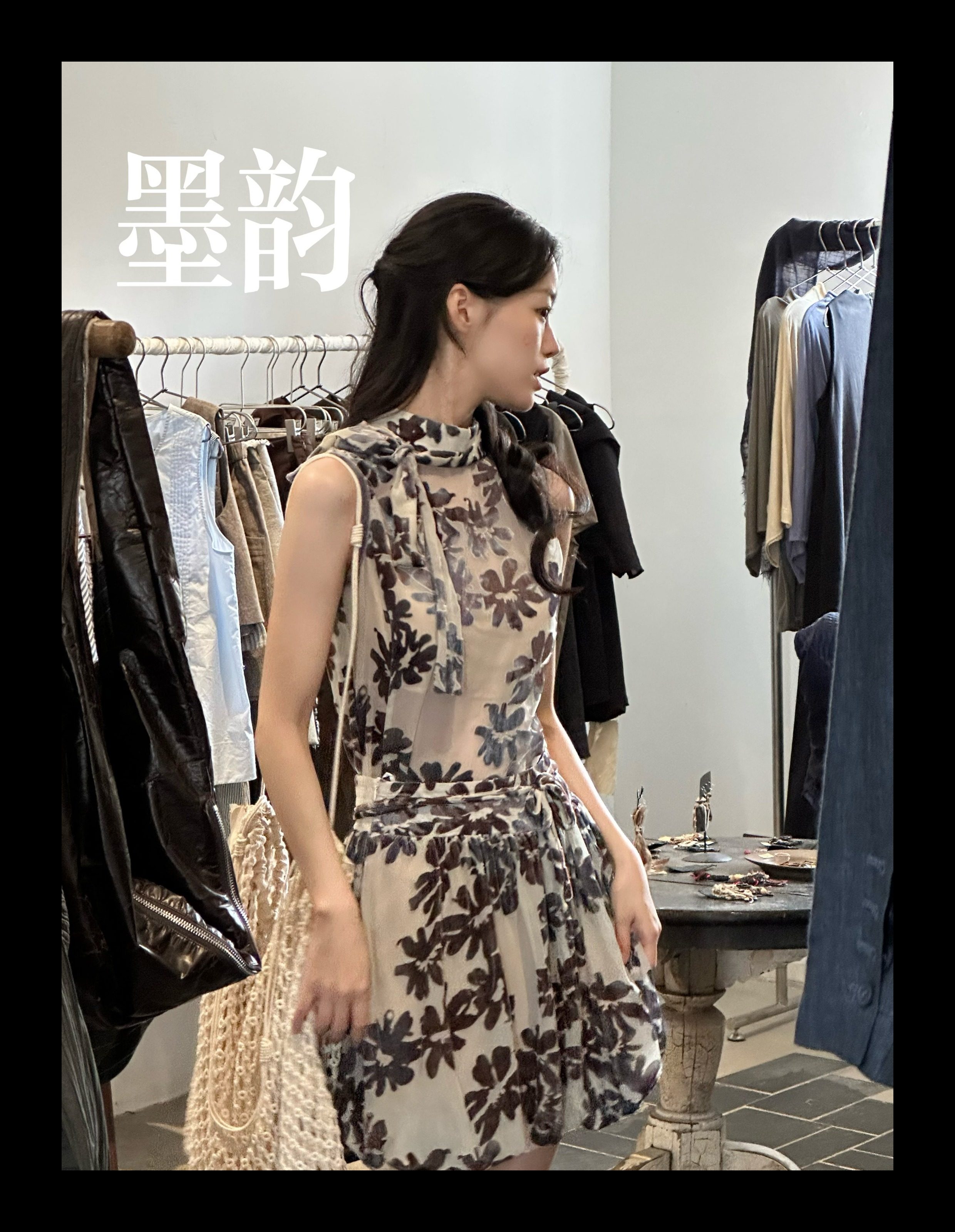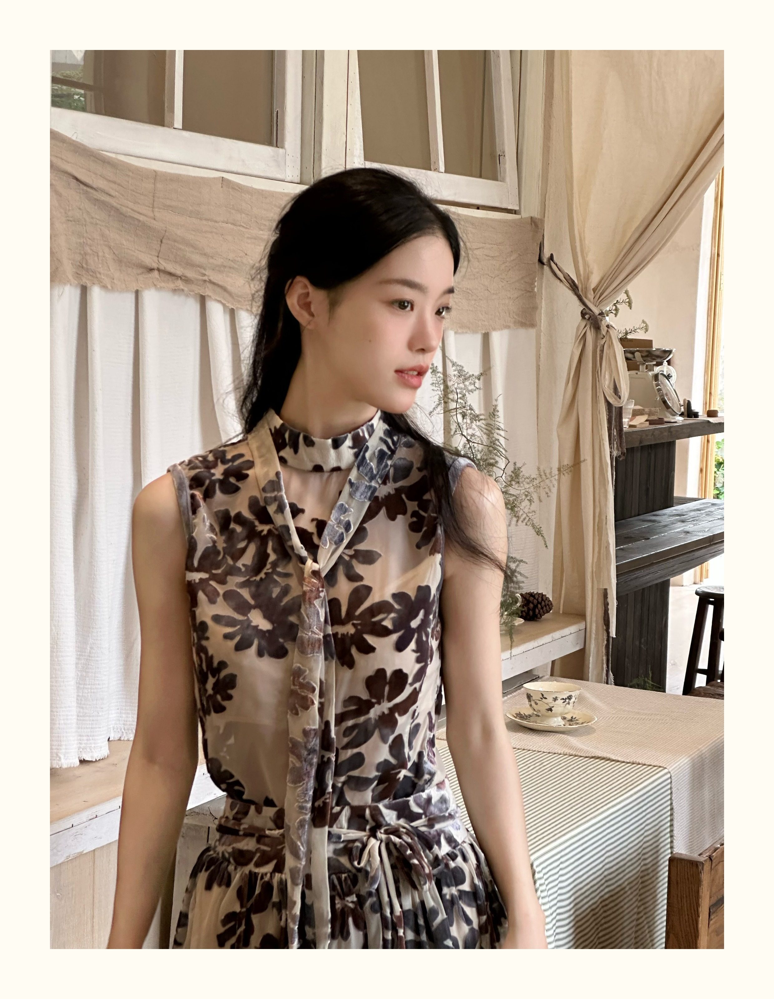 ASAYA5411 – Velvet Bloom Mandarin Mini Dress 🌿✨