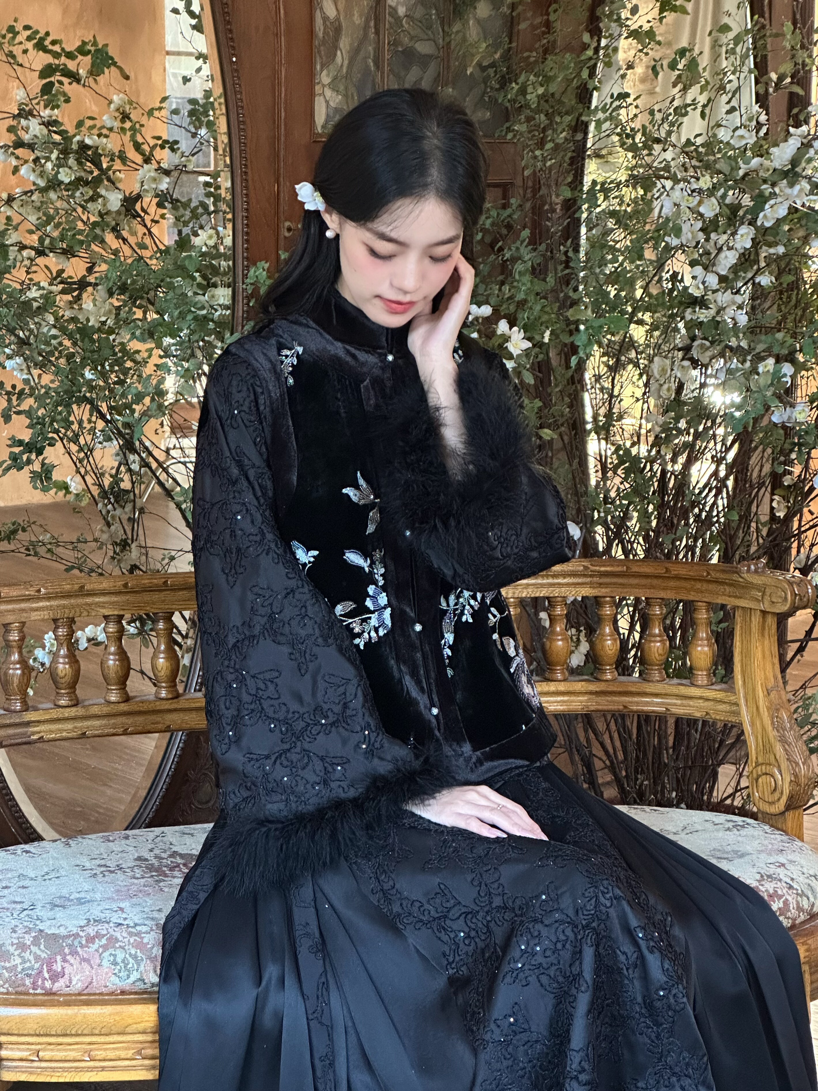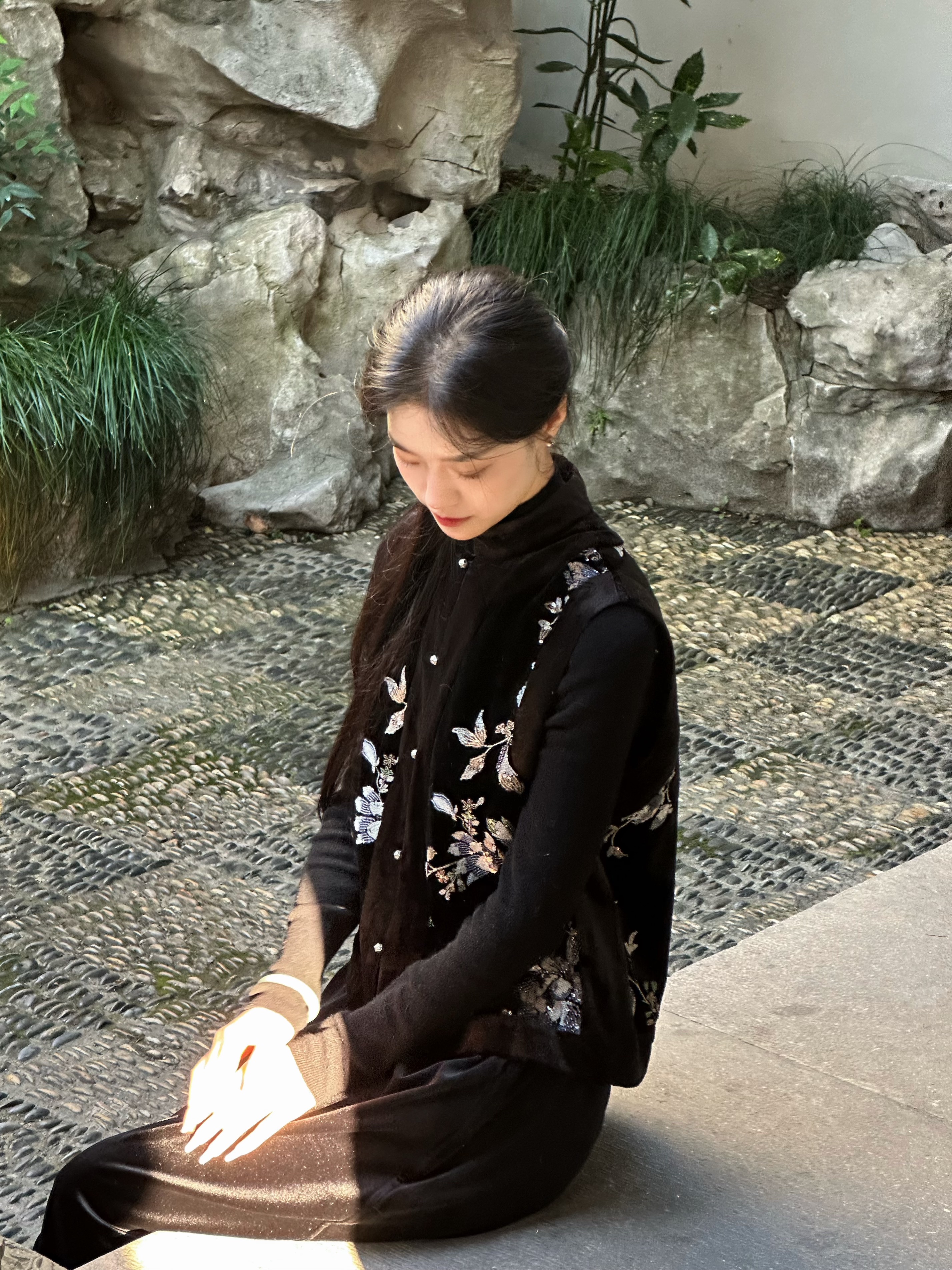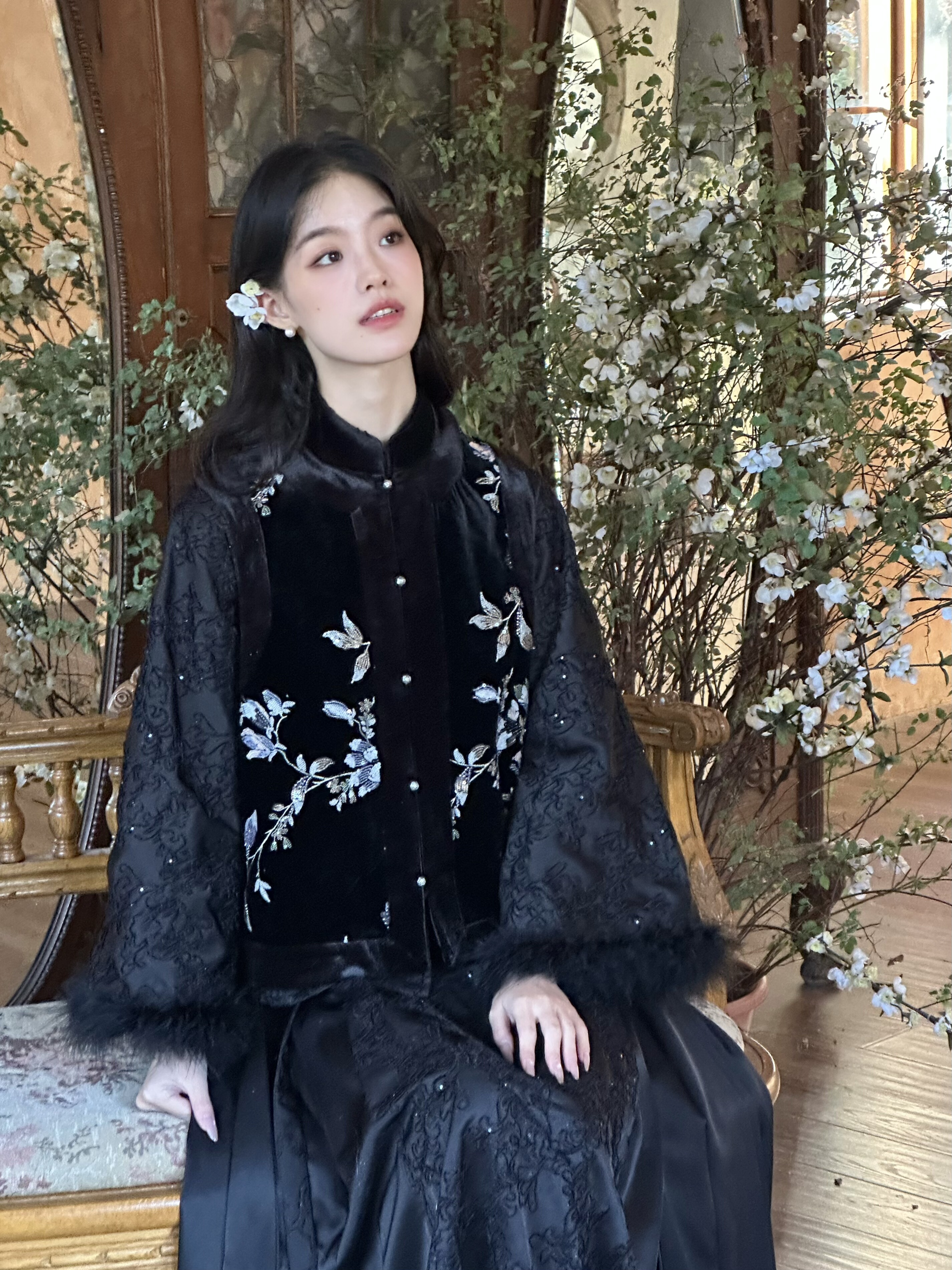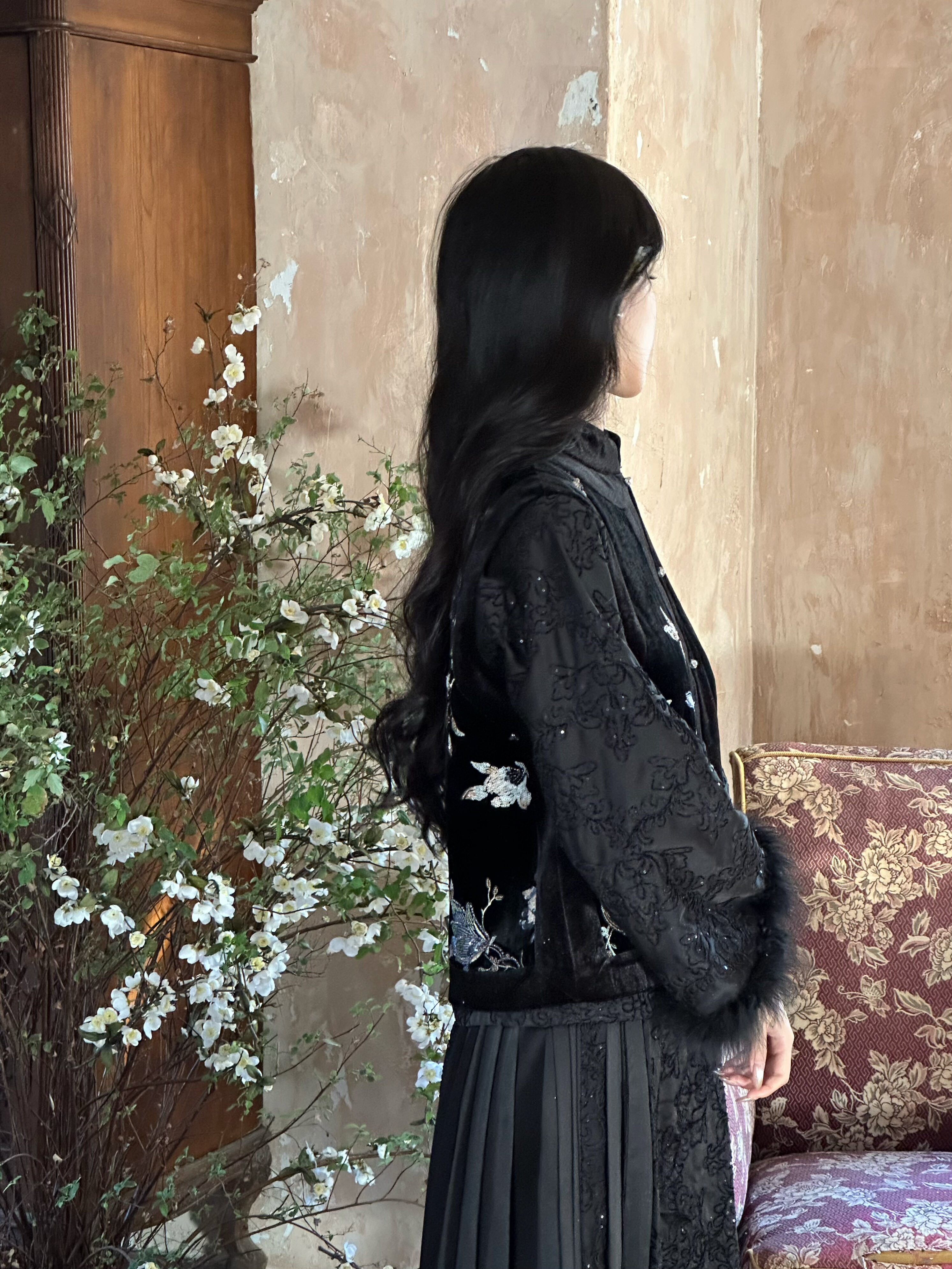 ASAYA5098 â Black Orchid Embroidered Velvet Vest ðĪðļ