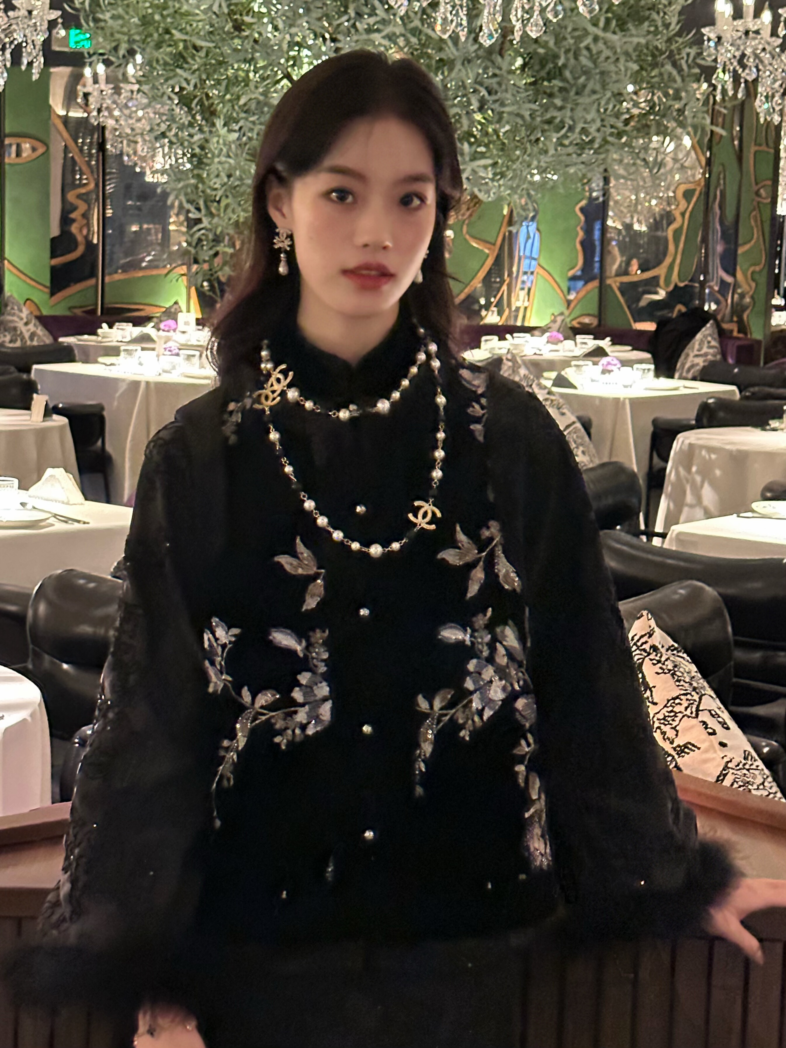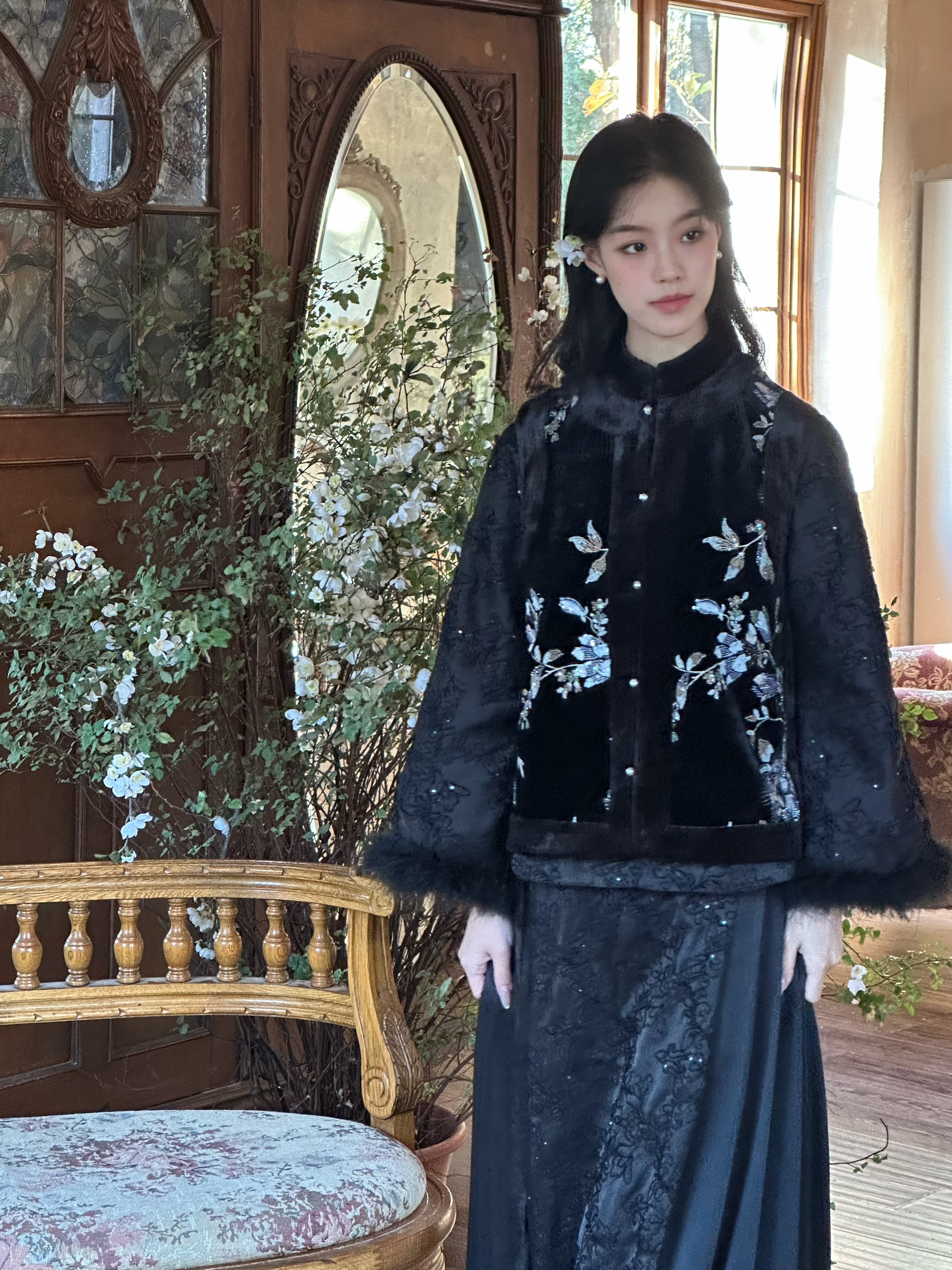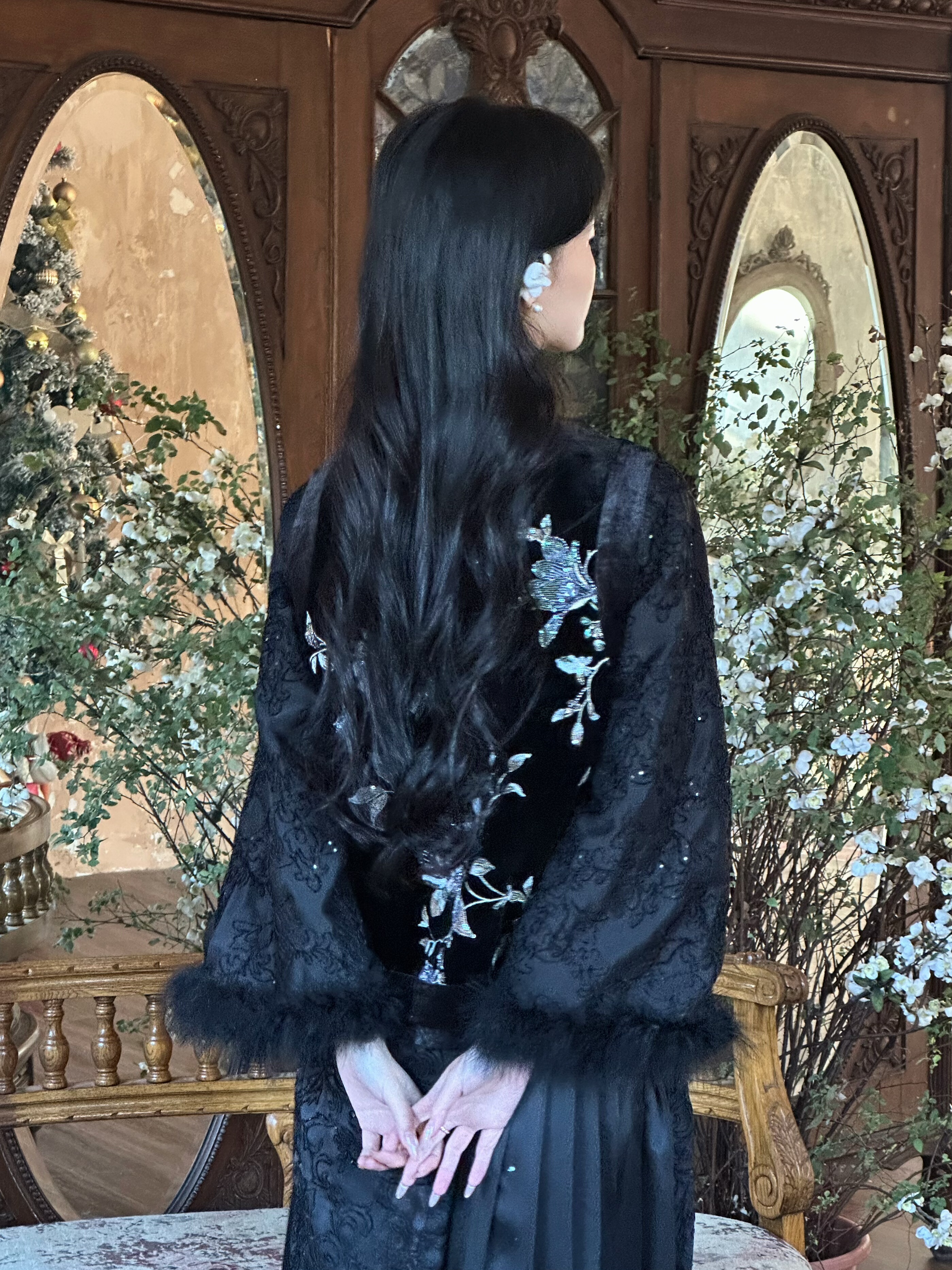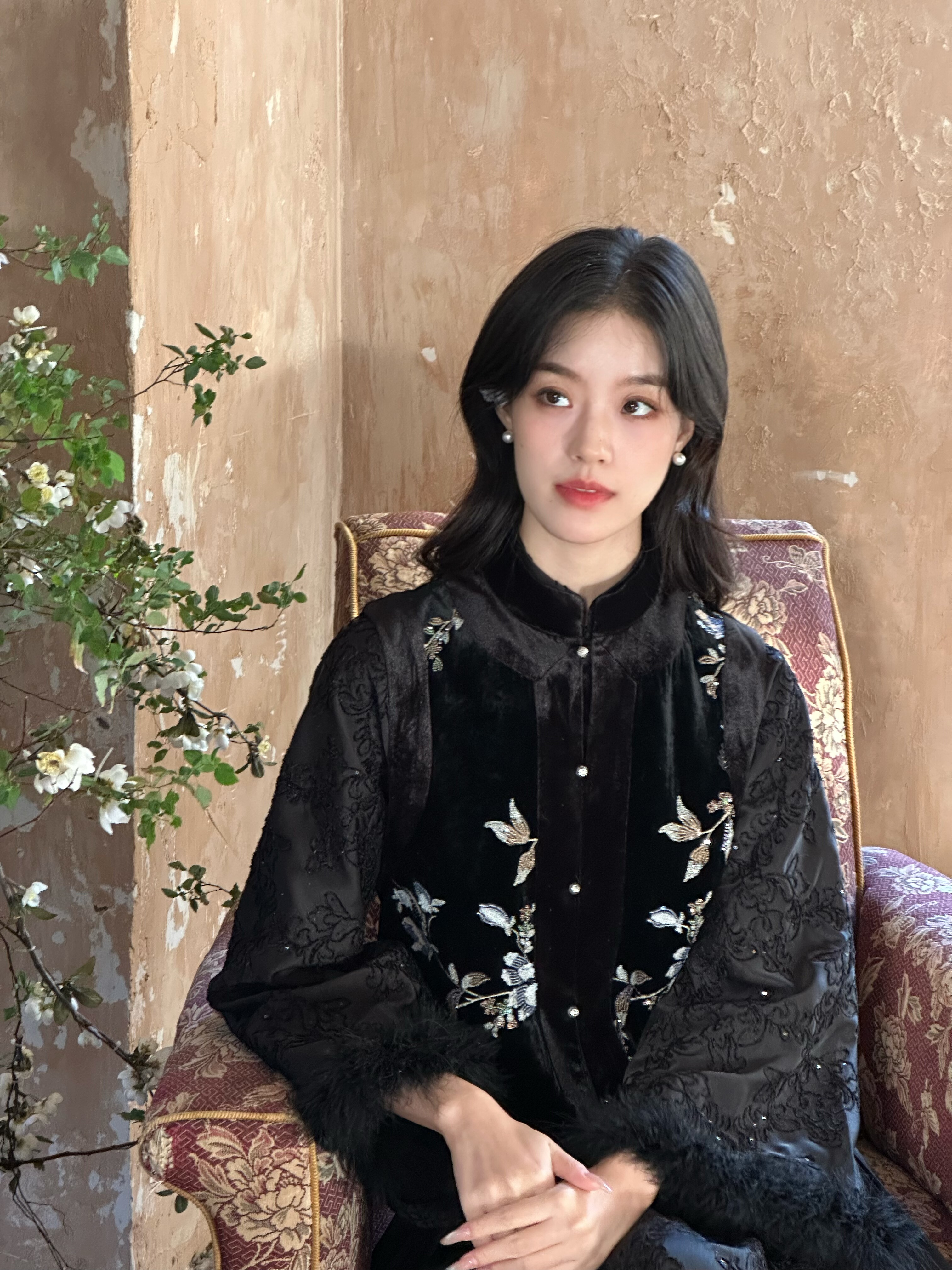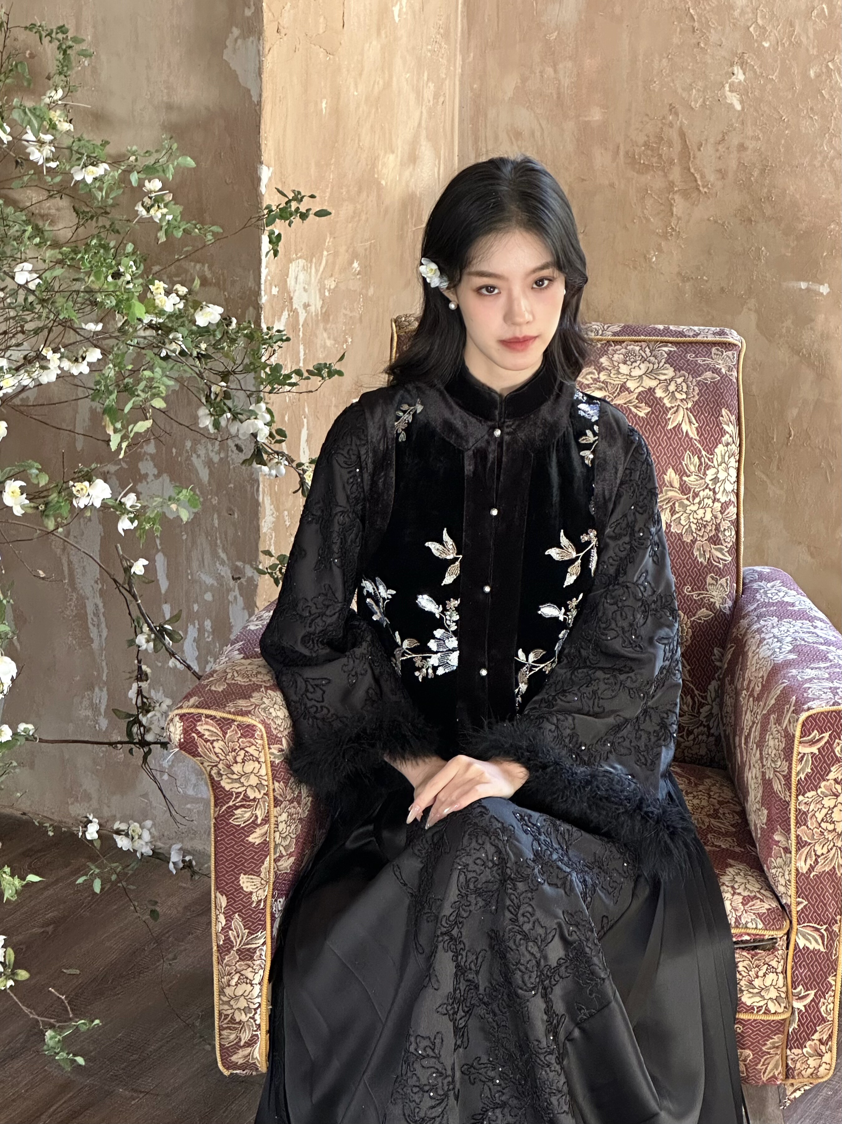 ASAYA5098 â Black Orchid Embroidered Velvet Vest ðĪðļ