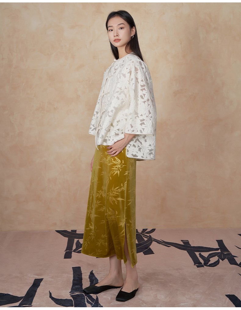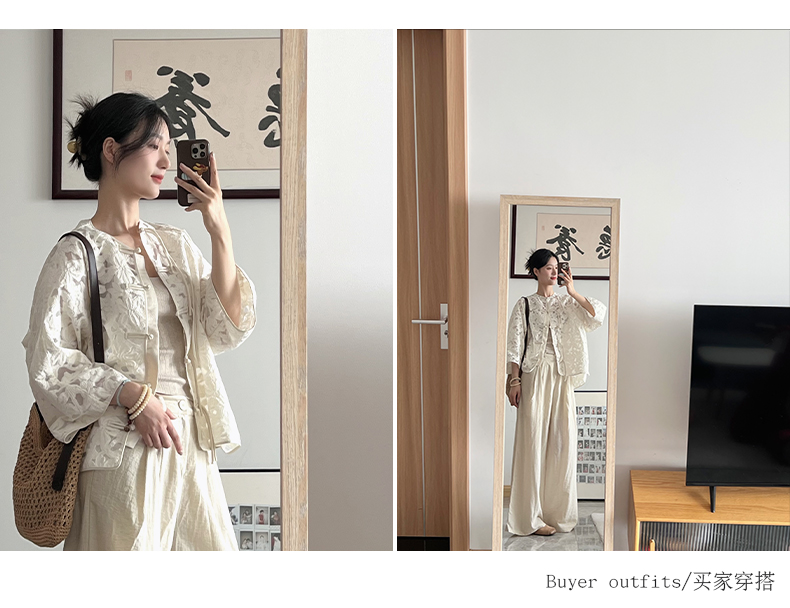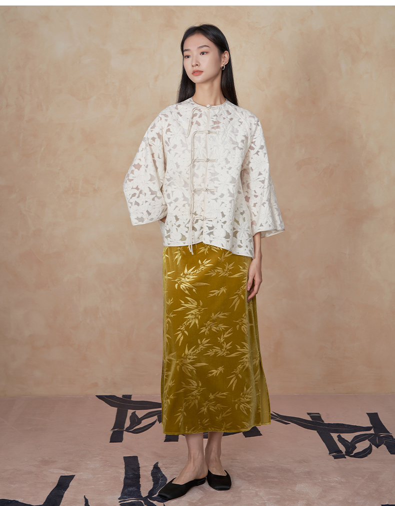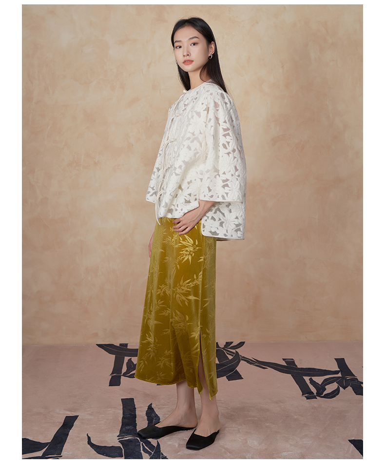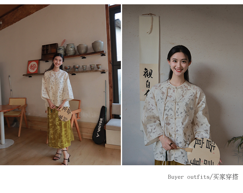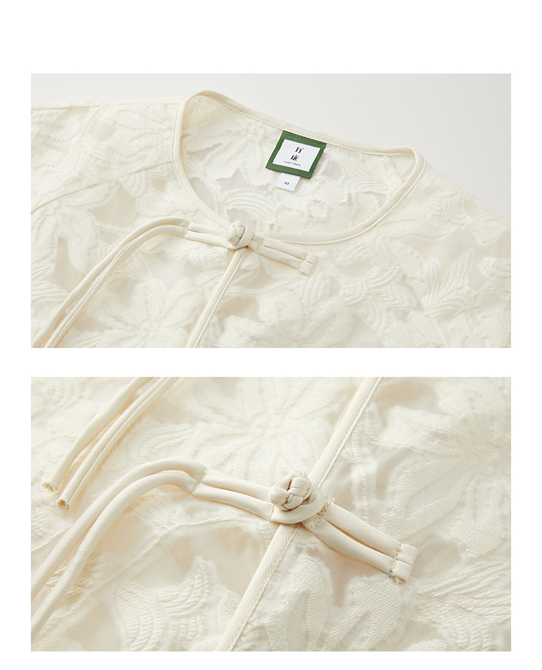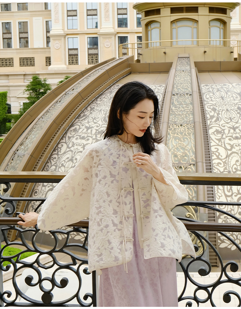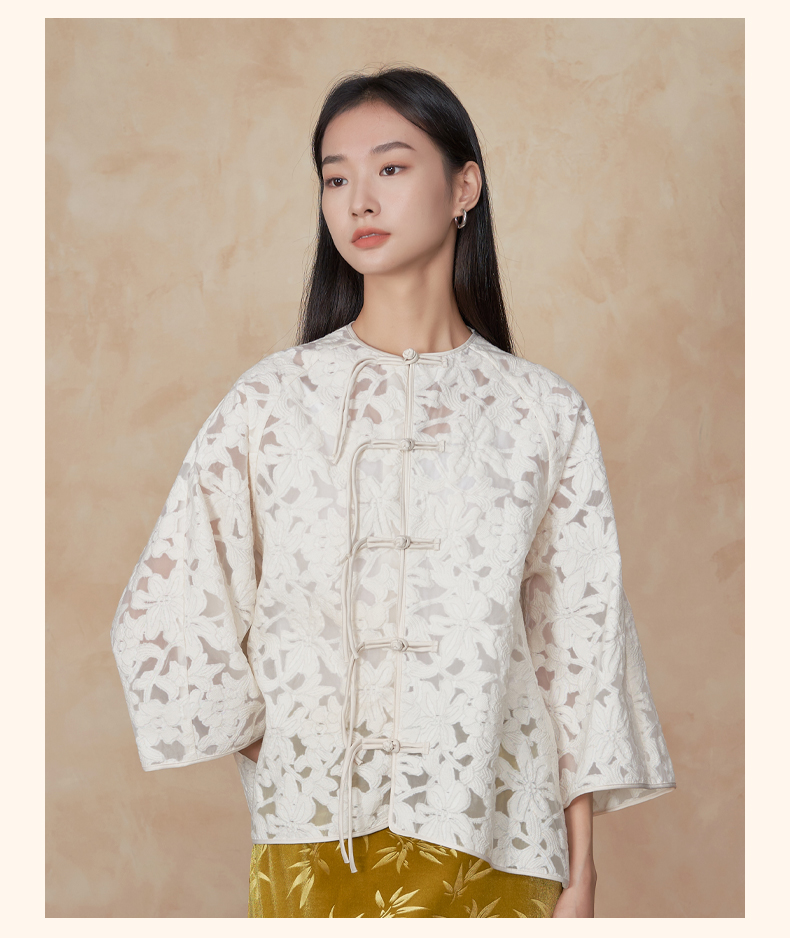 ASAYA3611 Linyuan Magnolia New Chinese style three-quarter sleeve hollow design breathable texture button short jacket