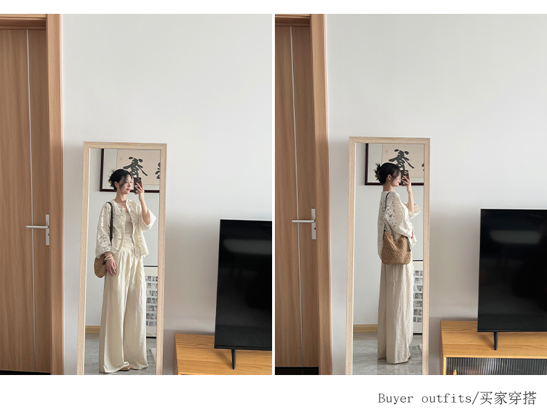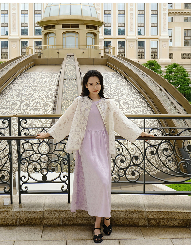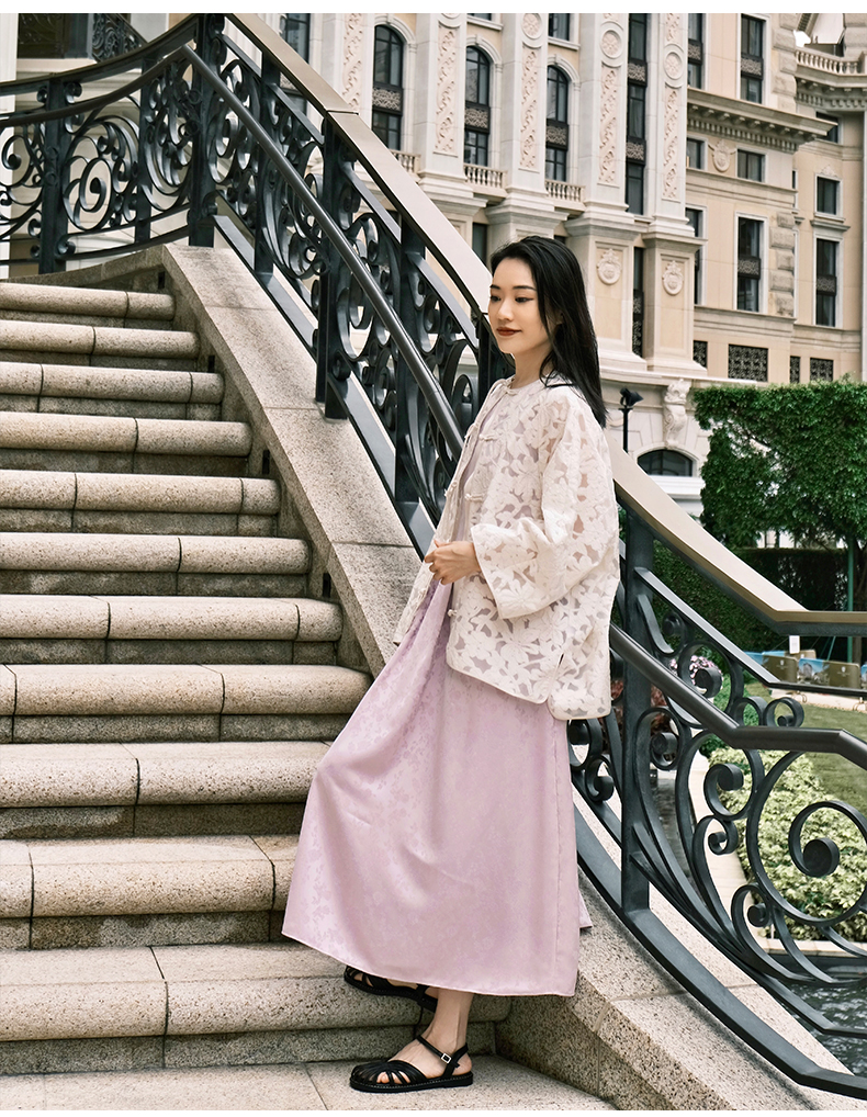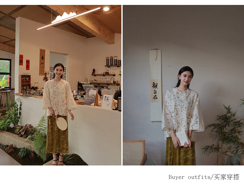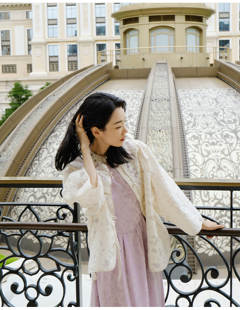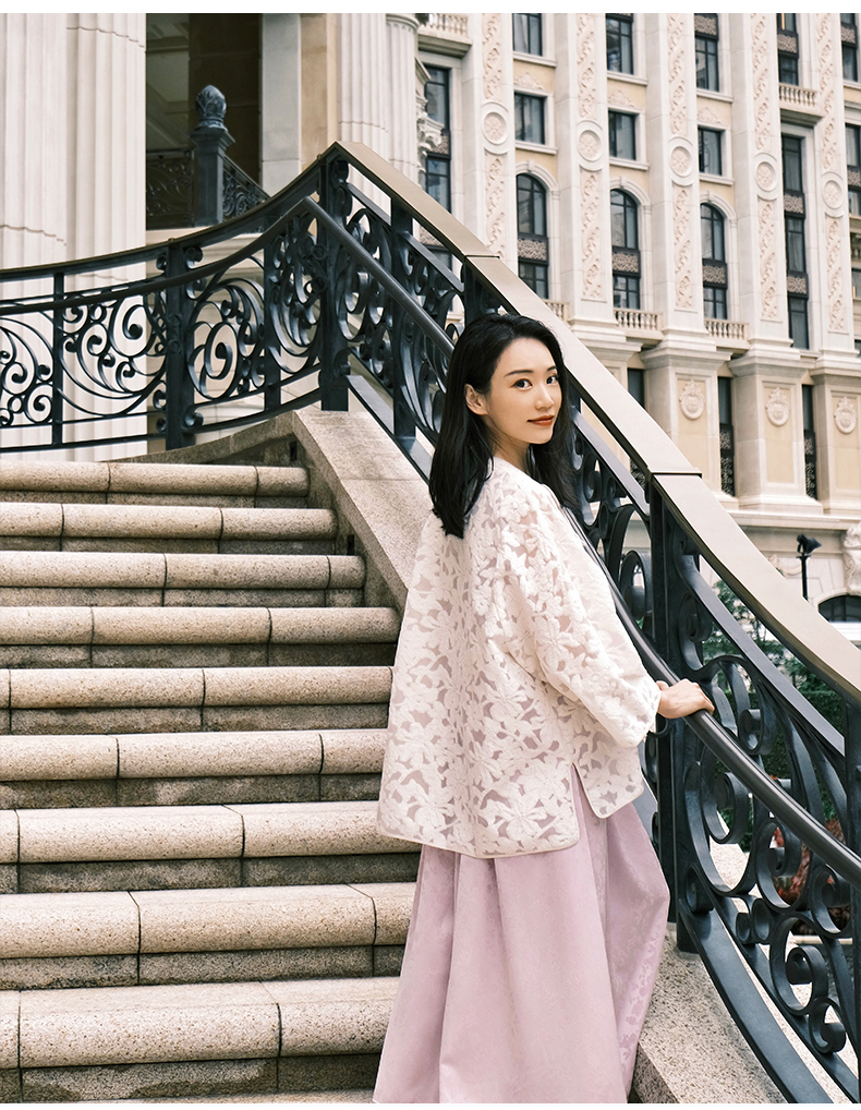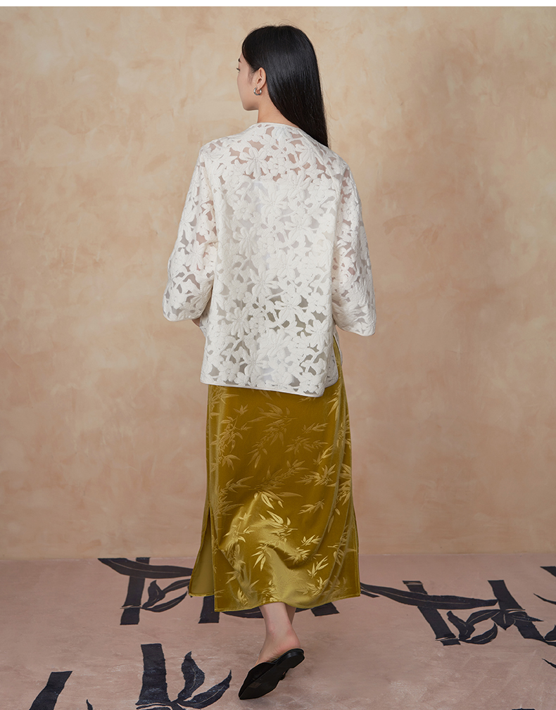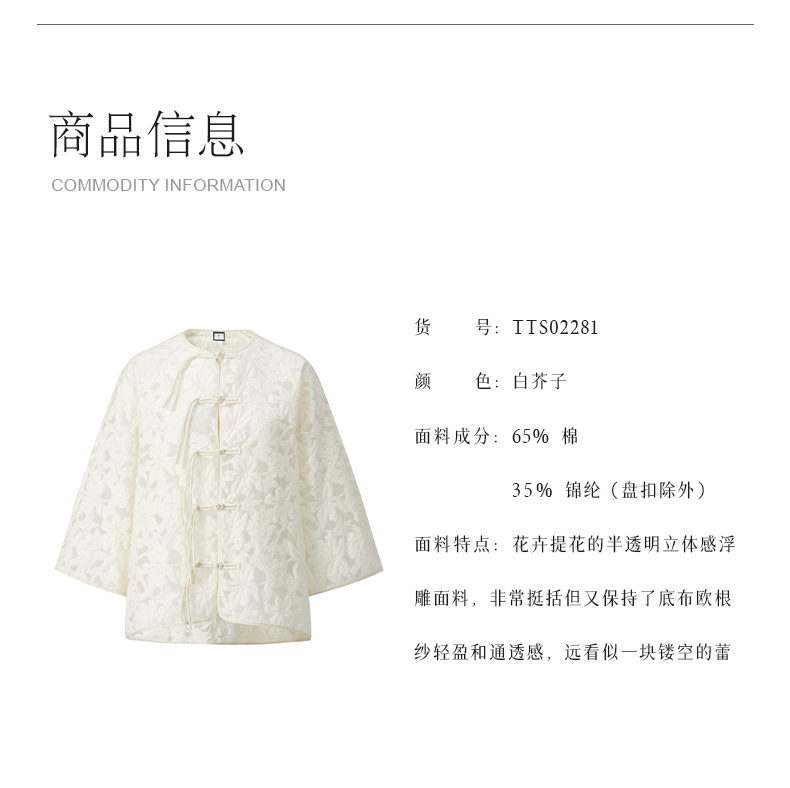 ASAYA3611 Linyuan Magnolia New Chinese style three-quarter sleeve hollow design breathable texture button short jacket