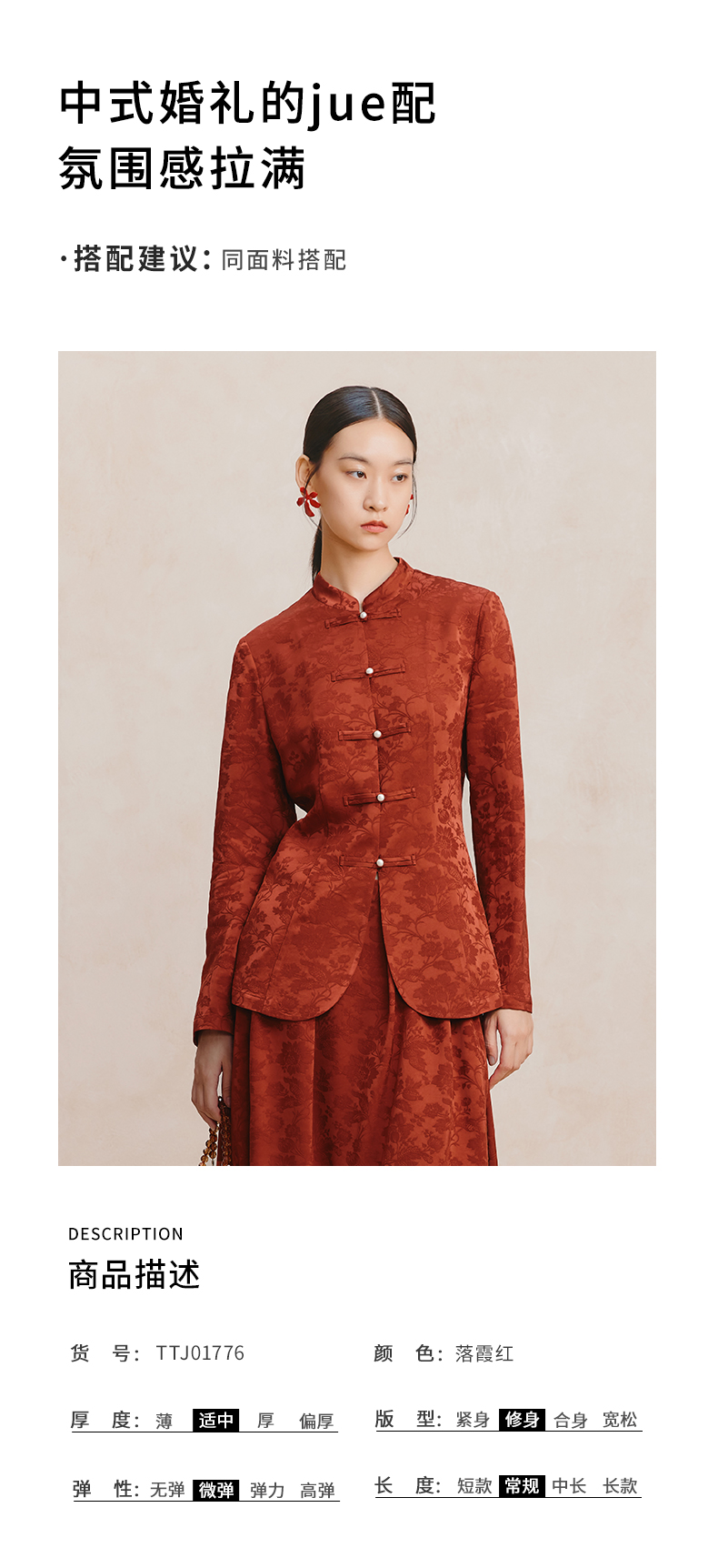 ASAYA3409 Tang Dynasty coat for women, new Chinese style, national style, engagement dress, top, red retro style