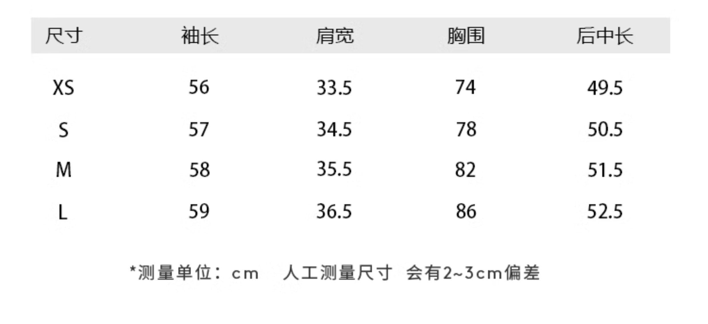 | size | XS S M L |