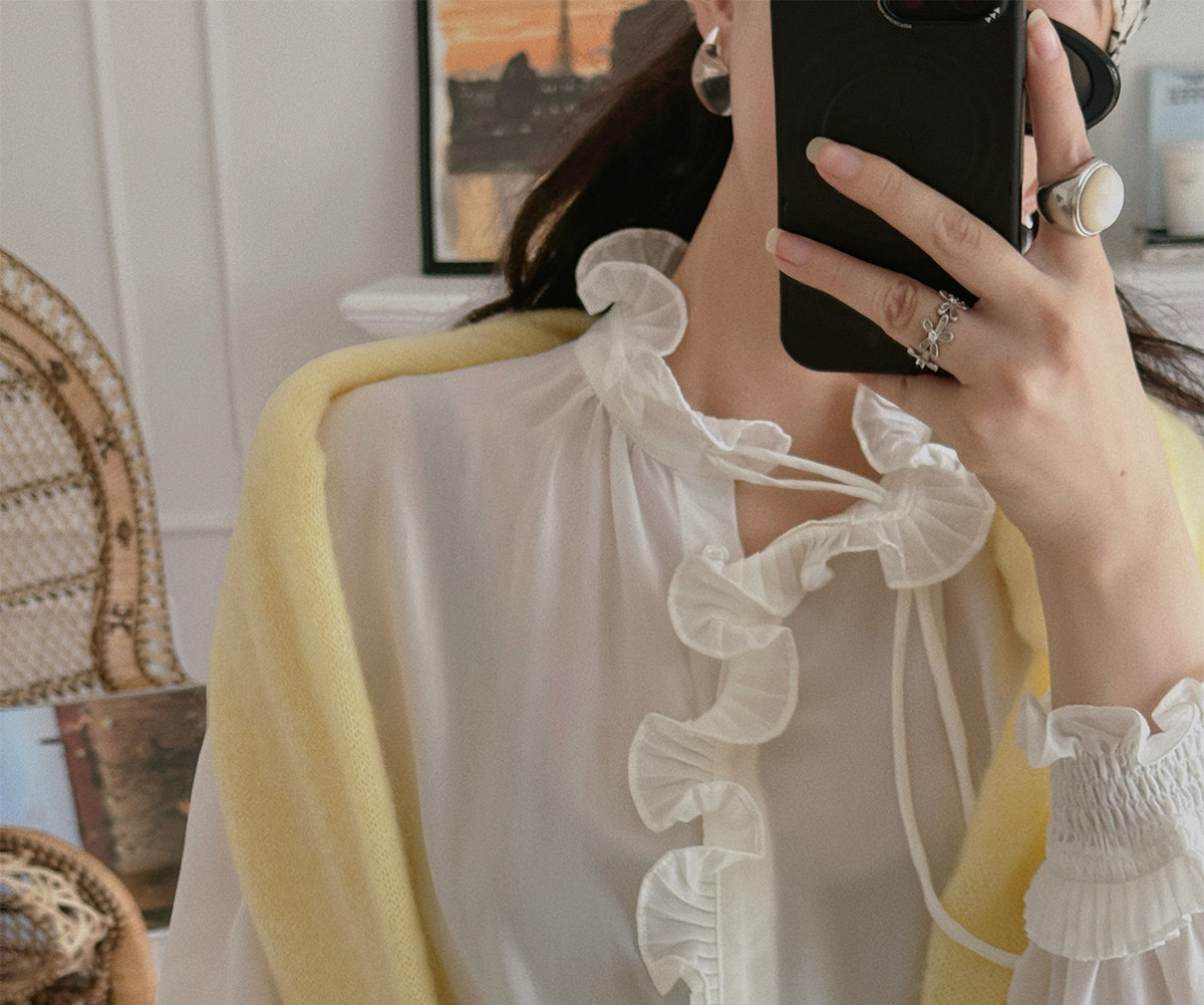 ASAYA5247 - Ruffle Poise Sheer Blouse 🤍✨