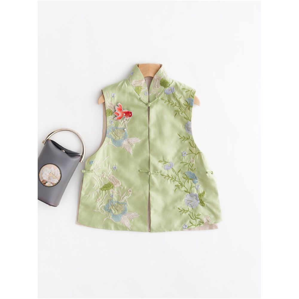 Asaya3 - Town Store Baby PCY505 New Chinese Embroidered Stand up Collar Pan Buckle Vest Chinese Retro Embroidered Cotton Vest Spring Autumn Winter