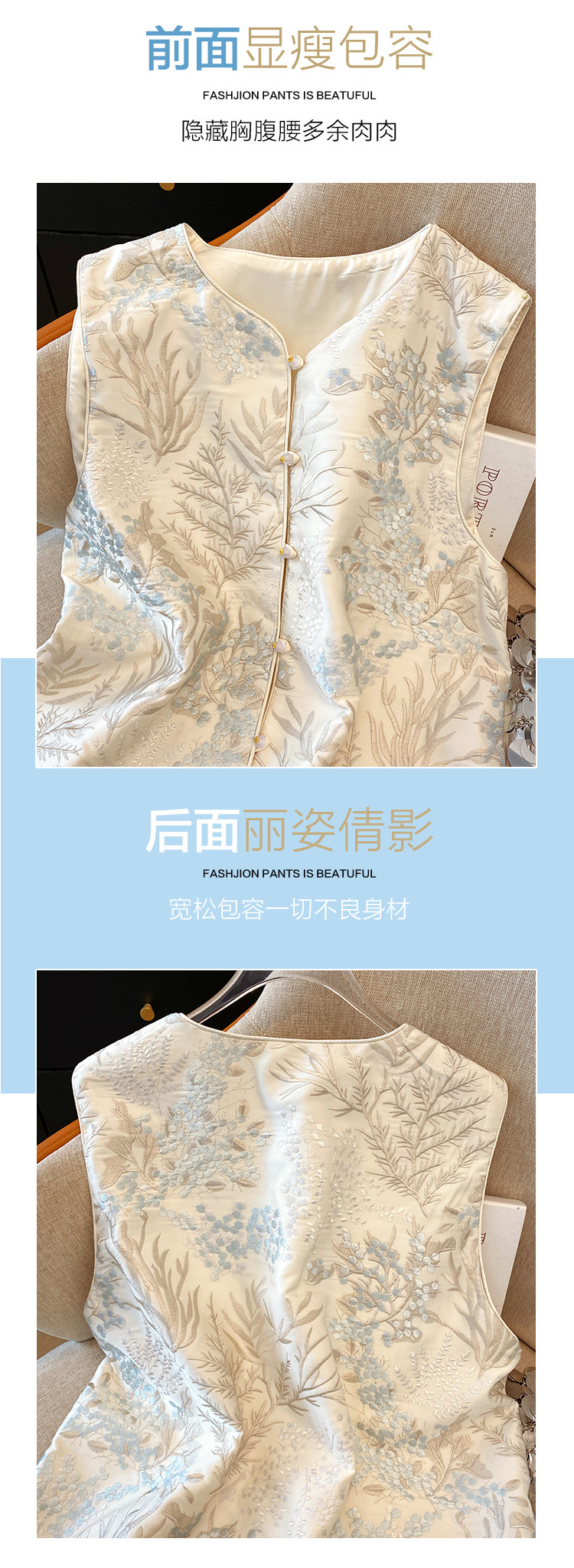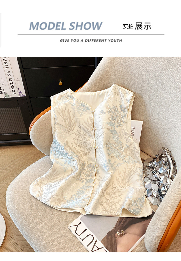 ASAYA5549 – Ivory Botanical Jacquard Vest 🤍🌿