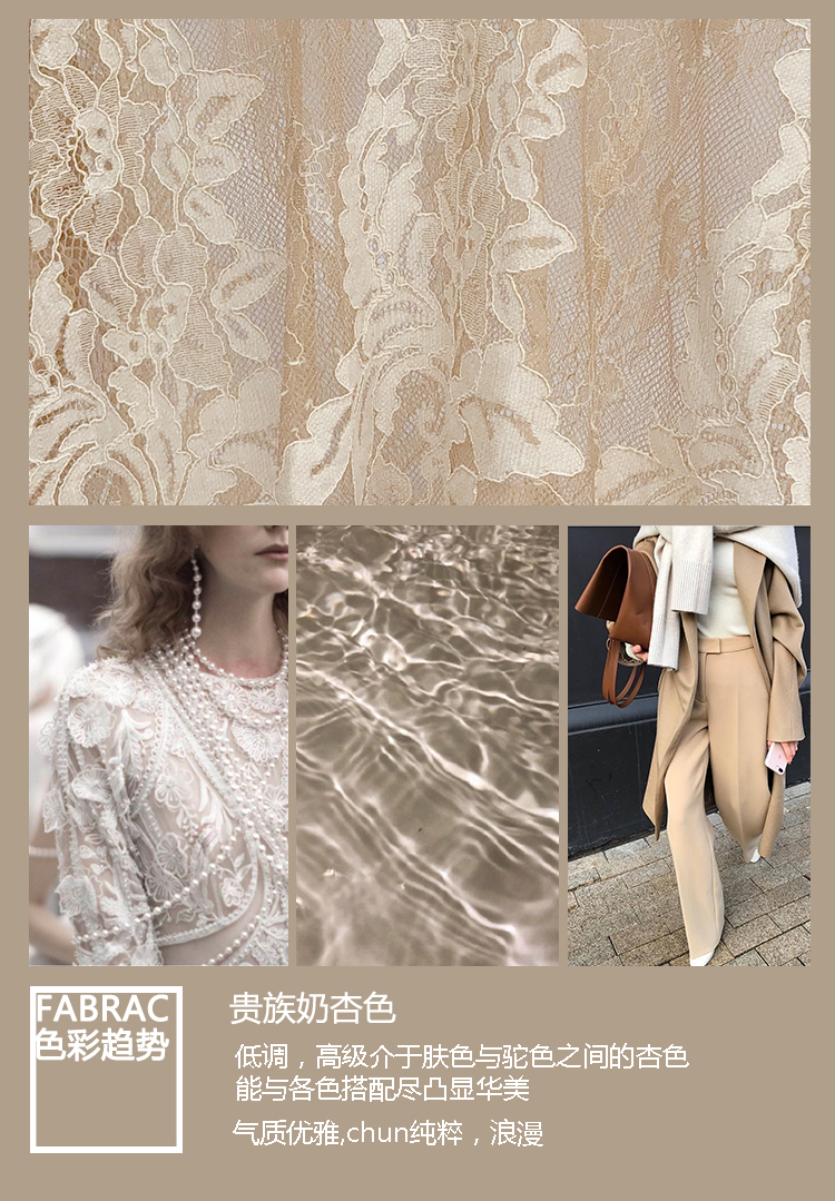 在朦胧透明主题里,蕾丝无疑是织物的女神,细腻而美的提花,轻盈缥缈的质感,