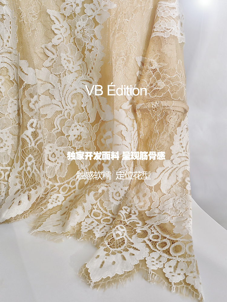 面料选用含10%Silk/真丝面料,采用股线定位蕾丝,