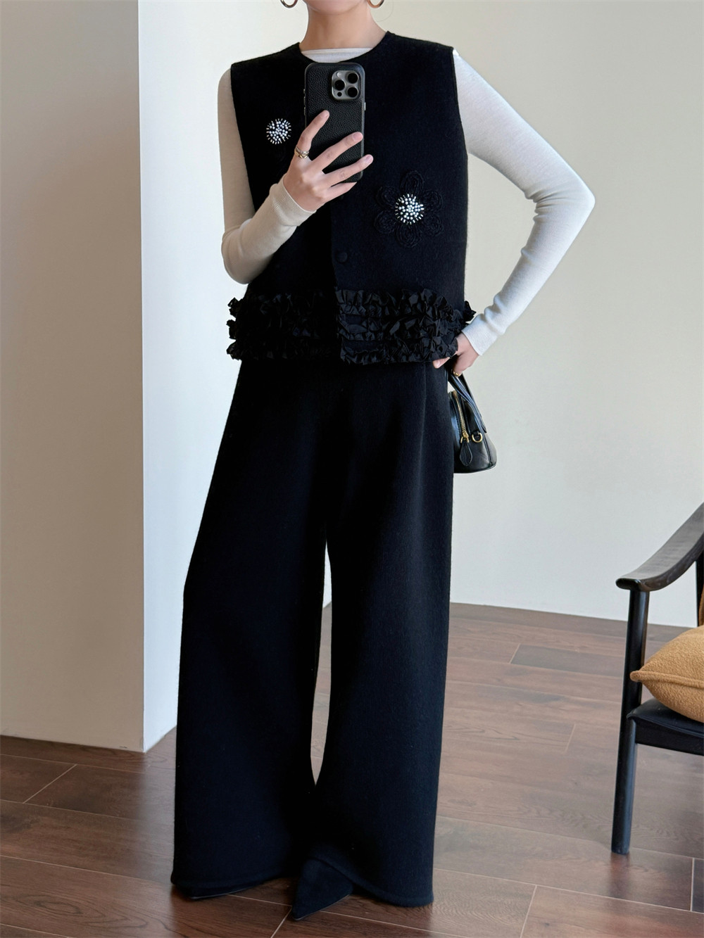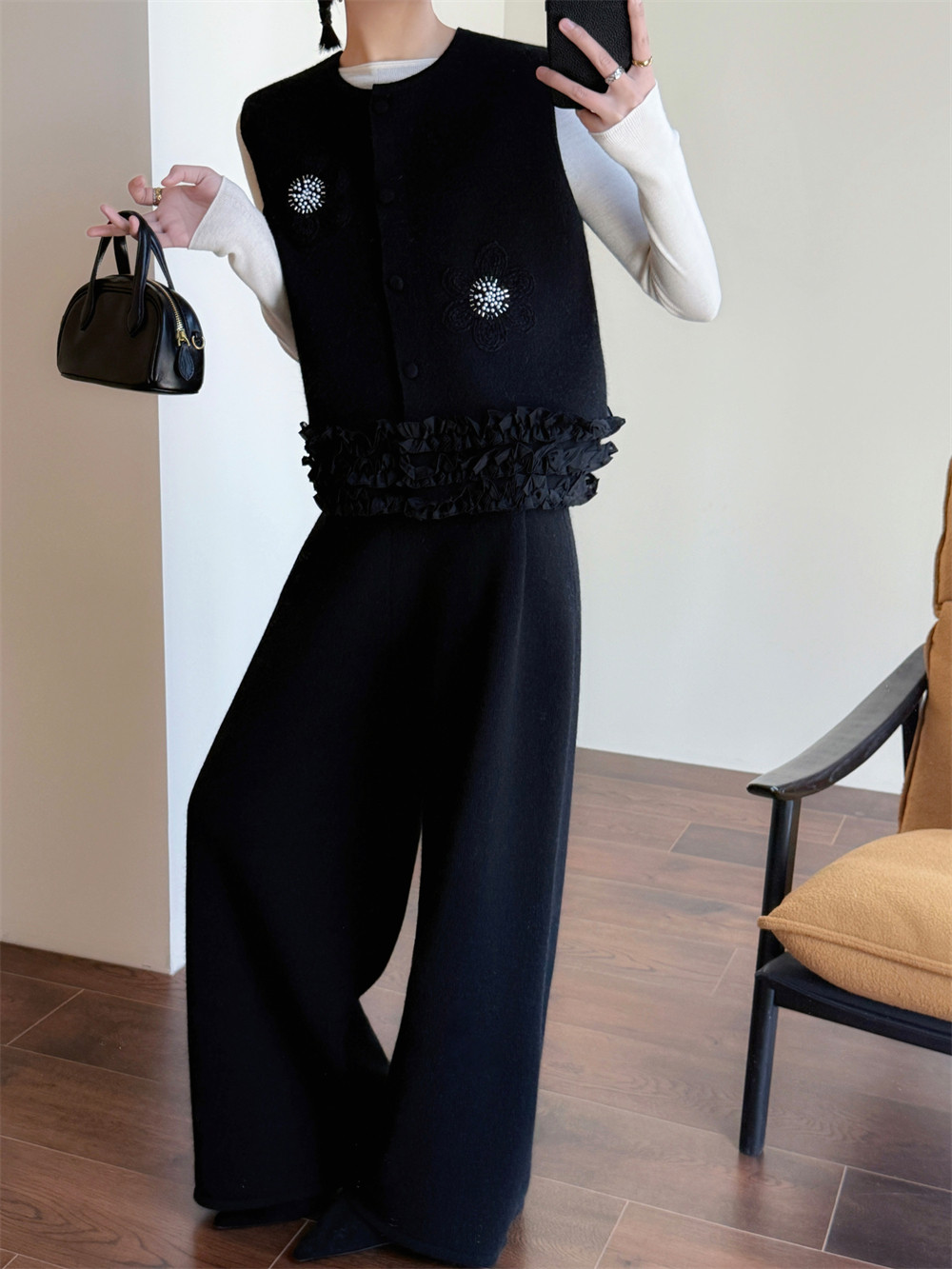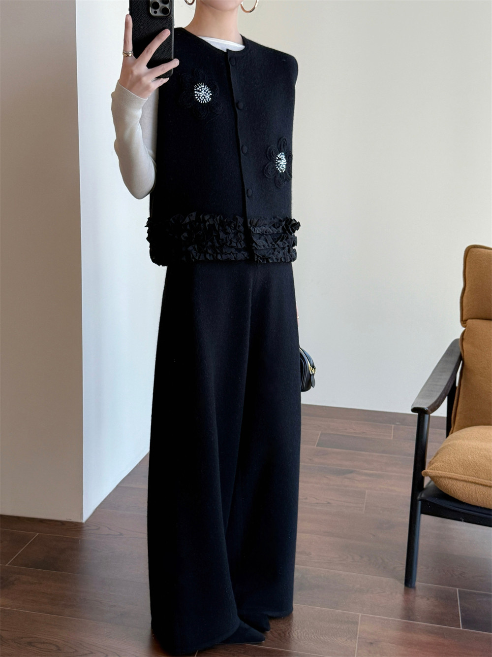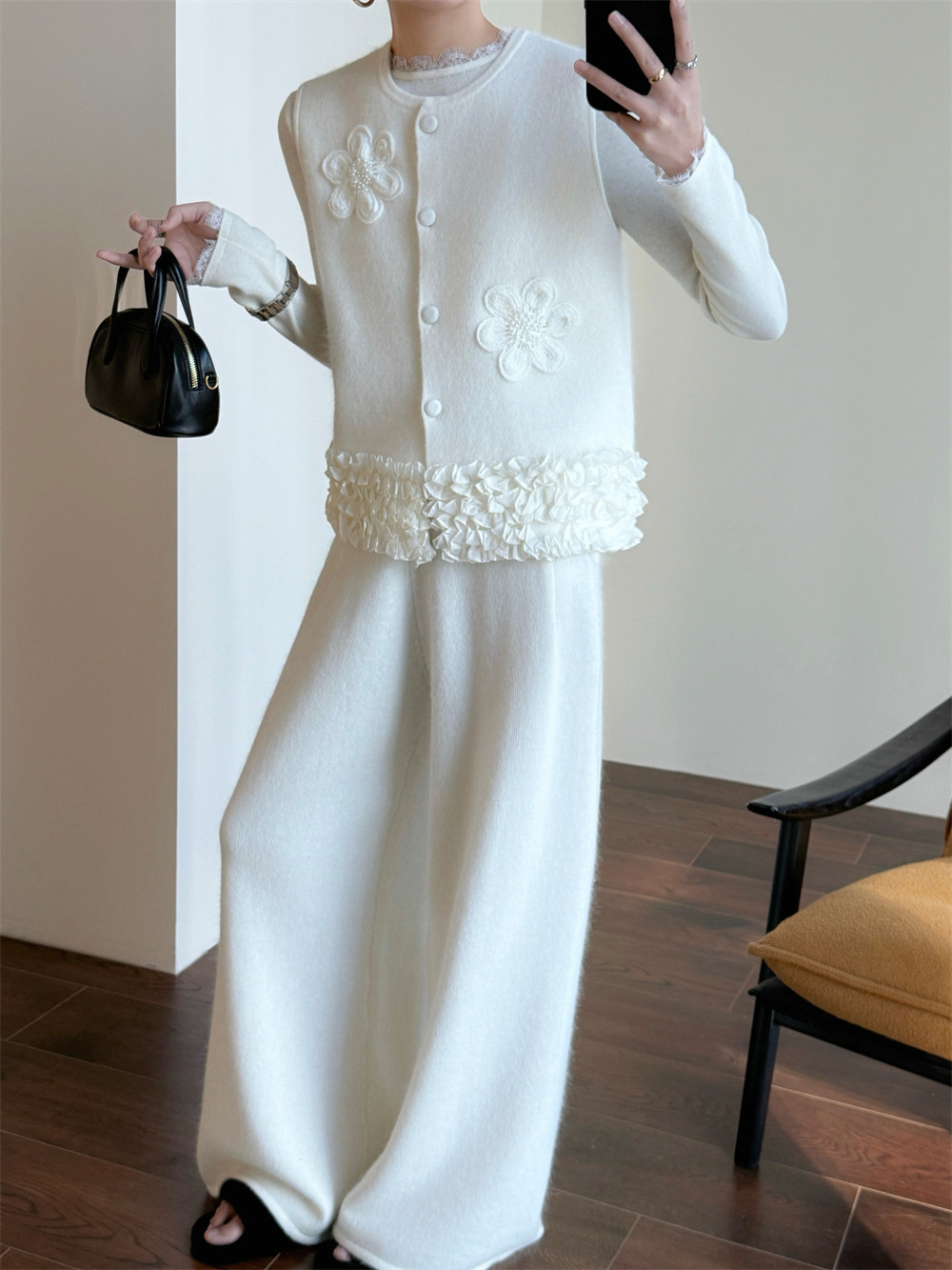 ASAYA5391 – Luxe Bloom Knit Vest & Wide-Leg Pants Set ❄️✨