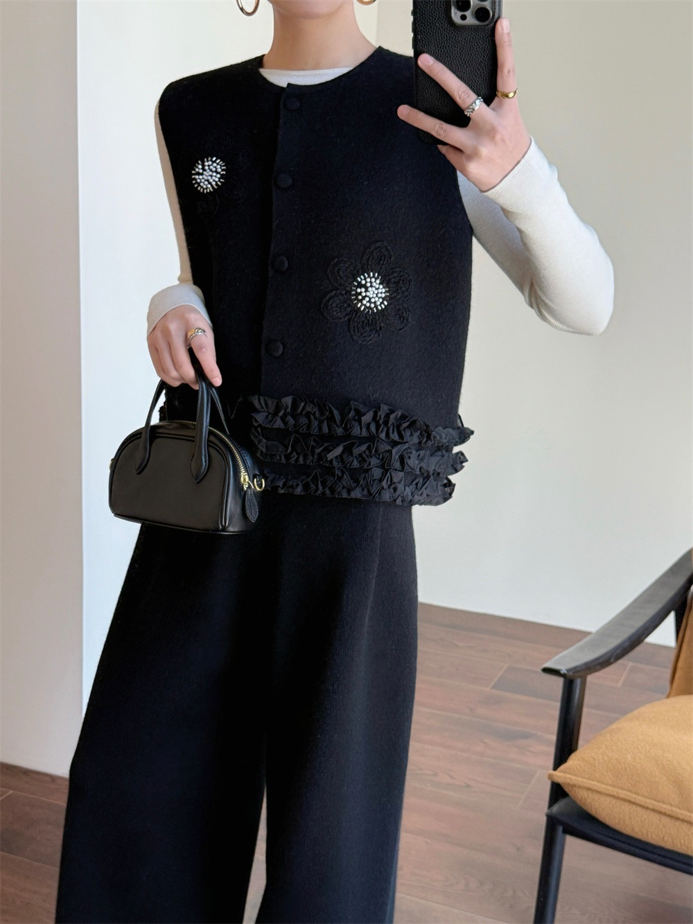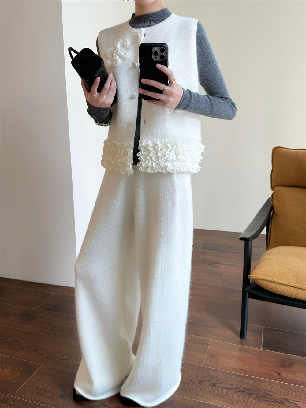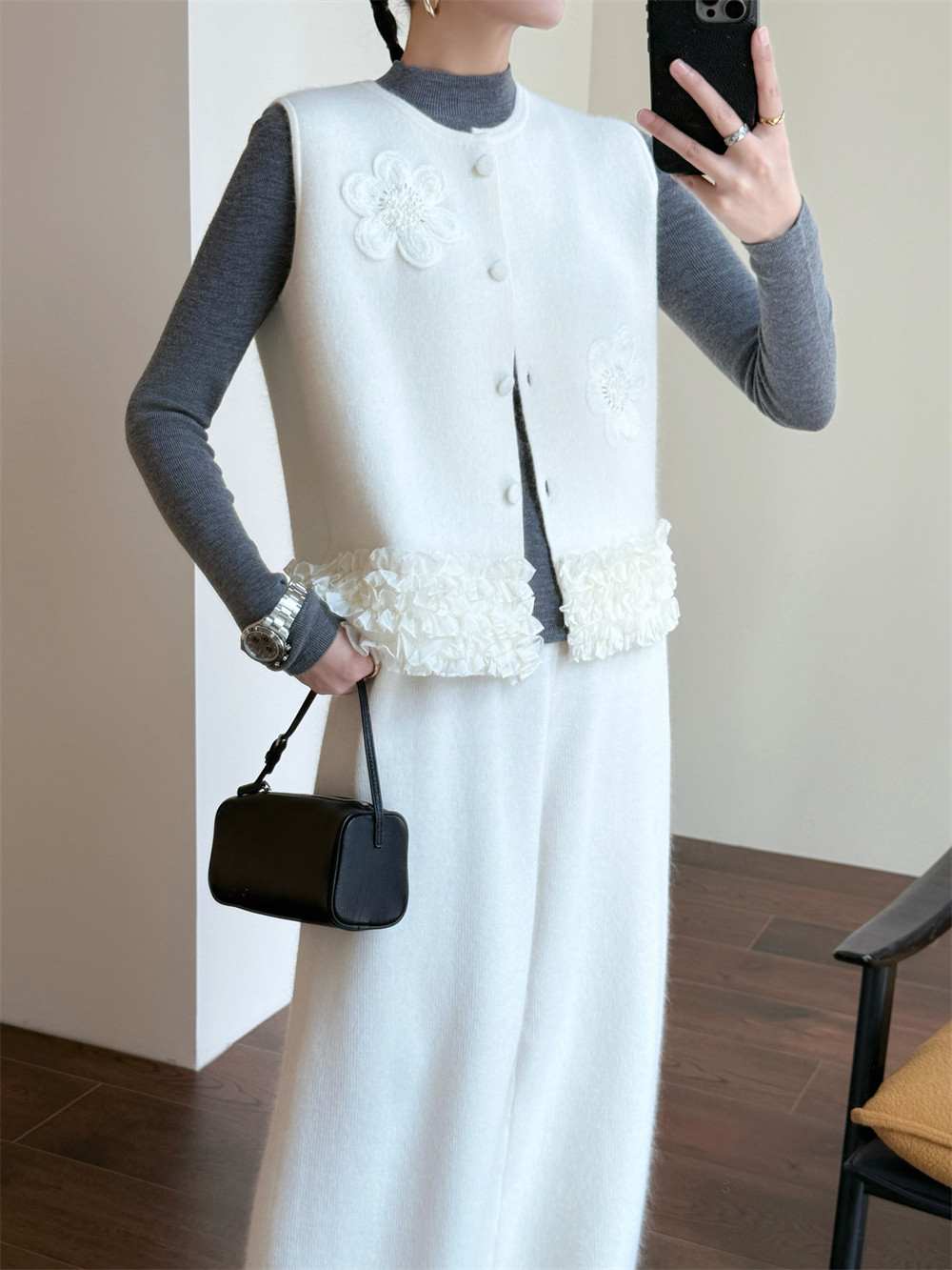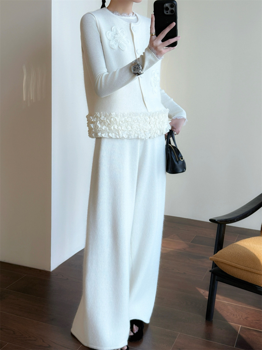 ASAYA5391 – Luxe Bloom Knit Vest & Wide-Leg Pants Set ❄️✨