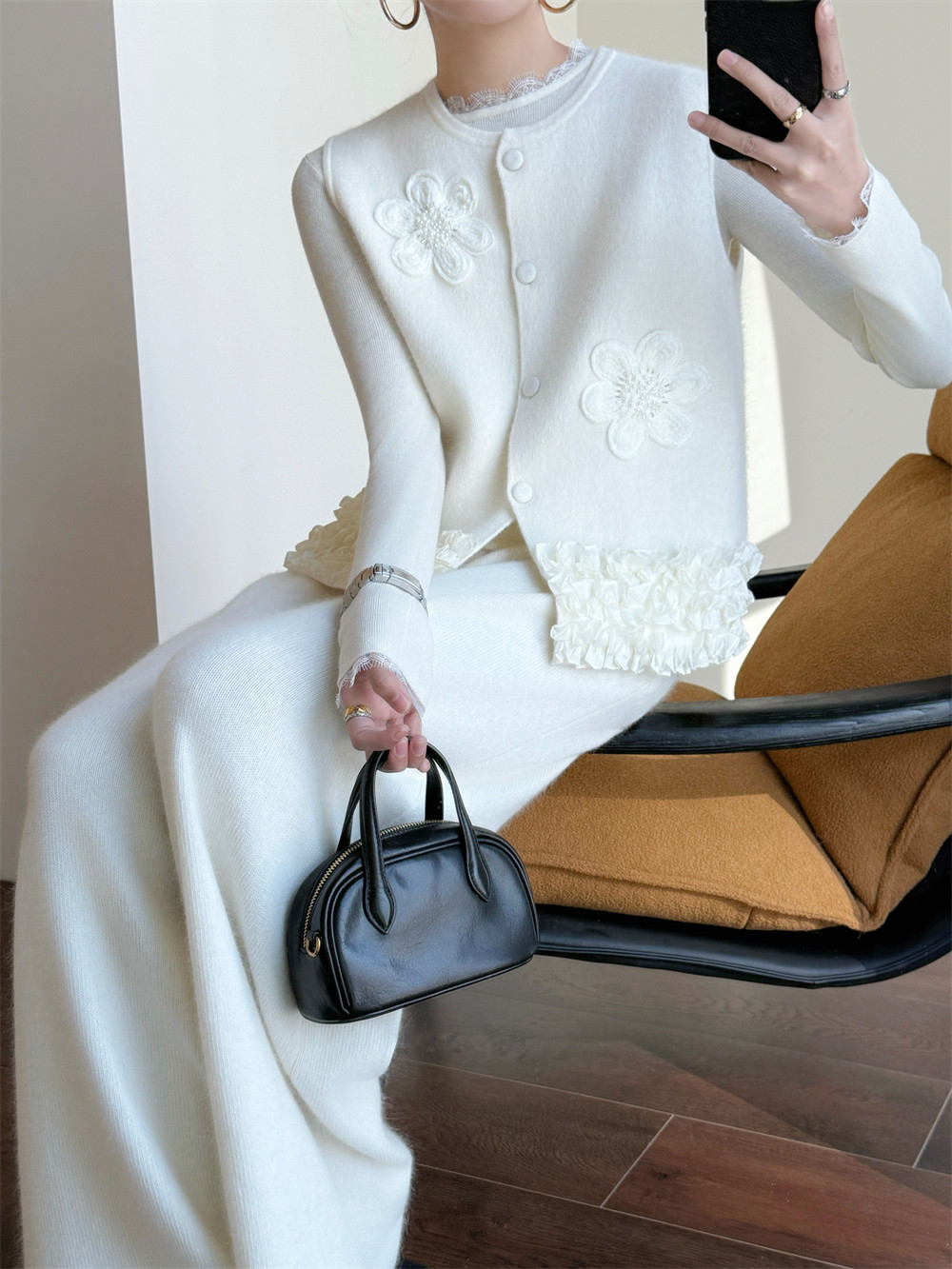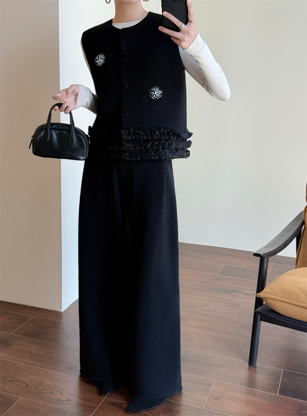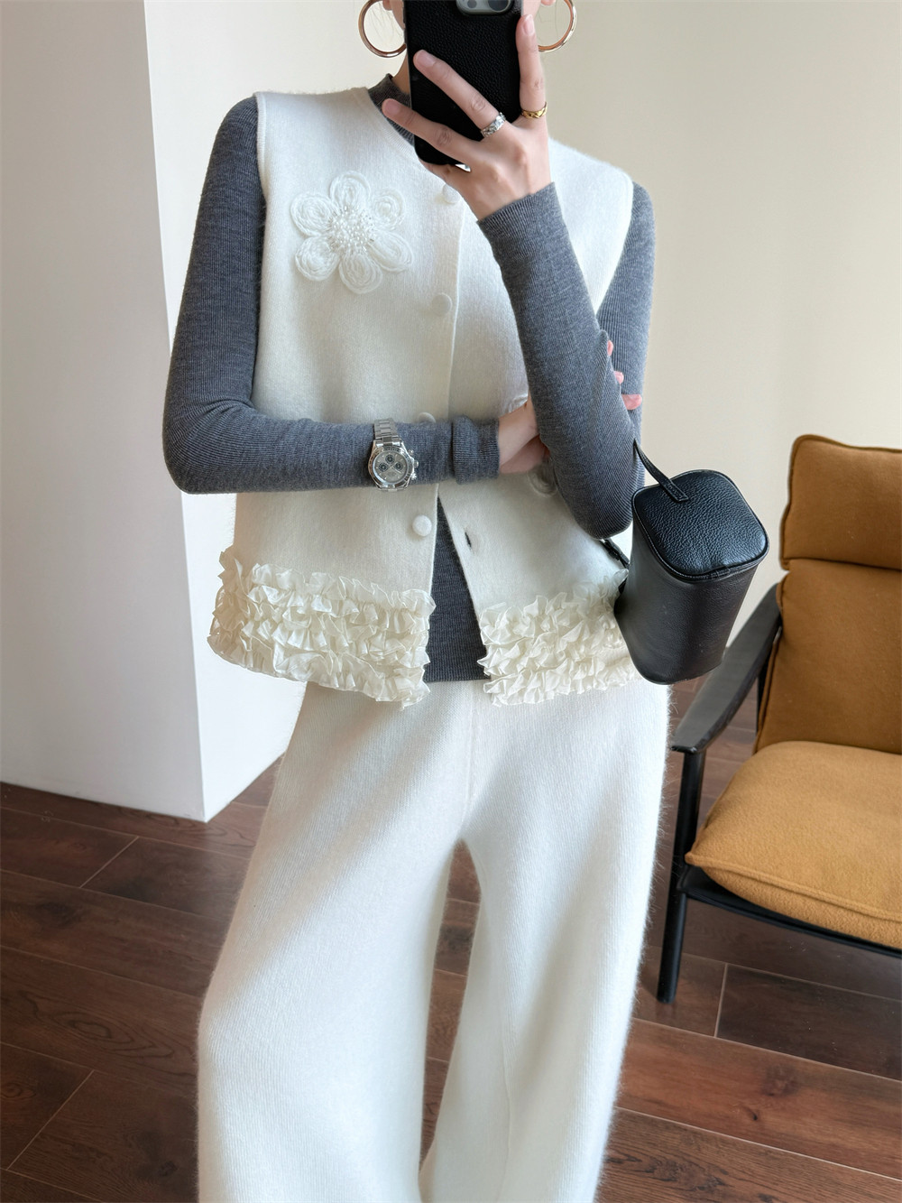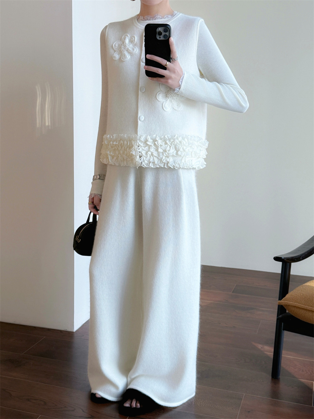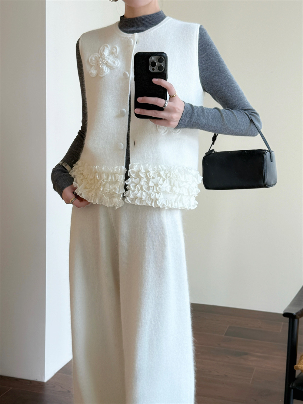 ASAYA5391 – Luxe Bloom Knit Vest & Wide-Leg Pants Set ❄️✨