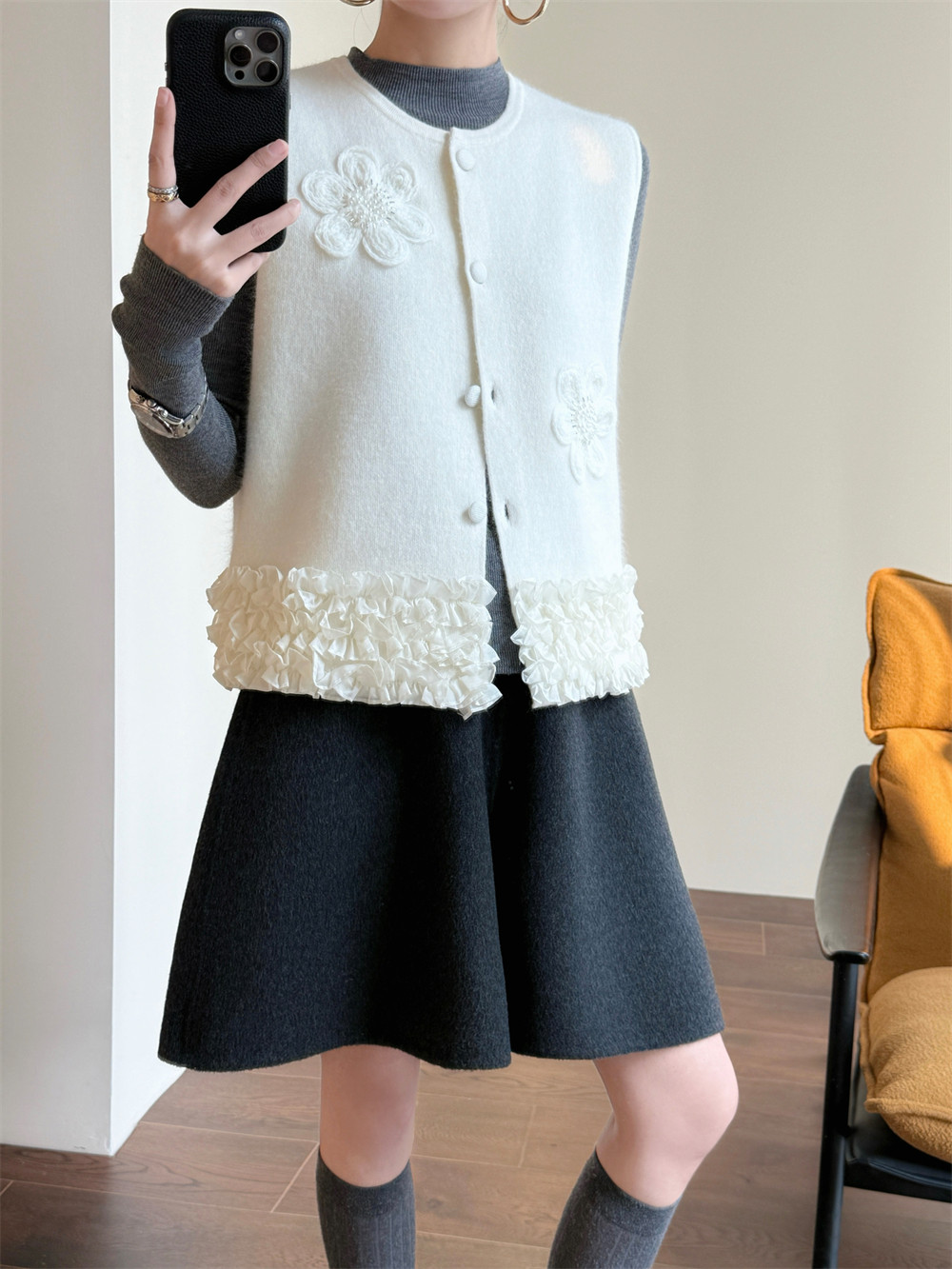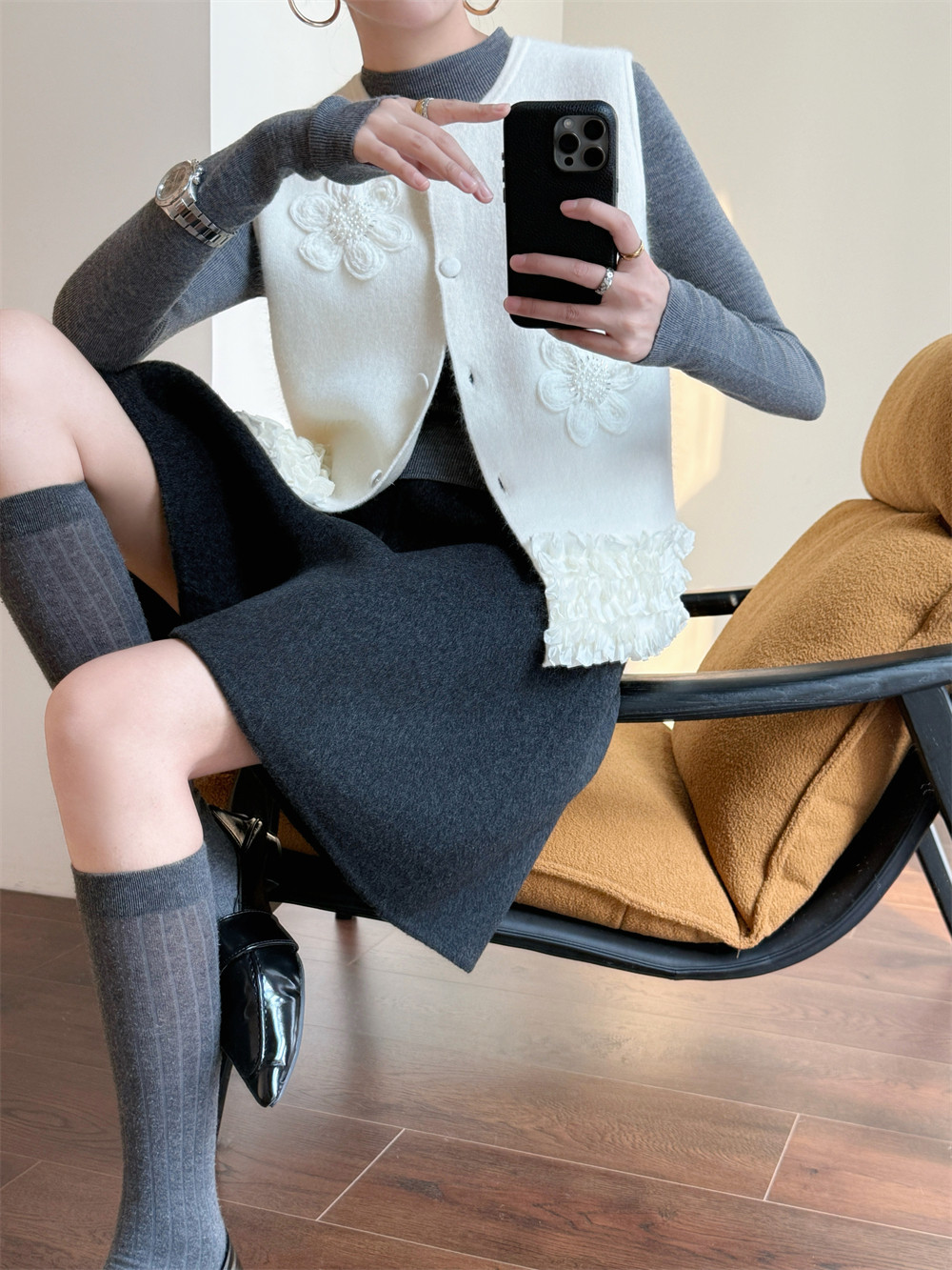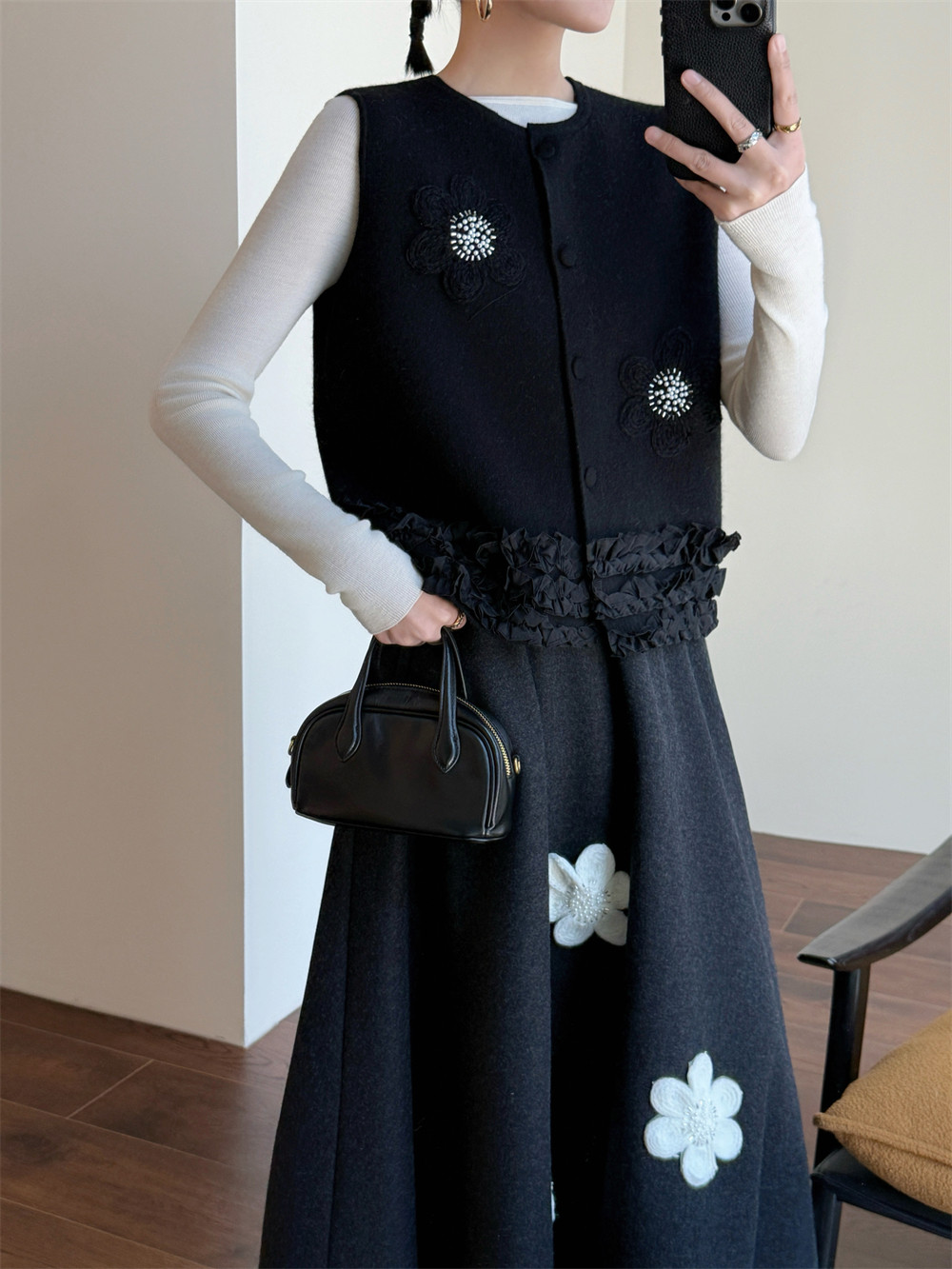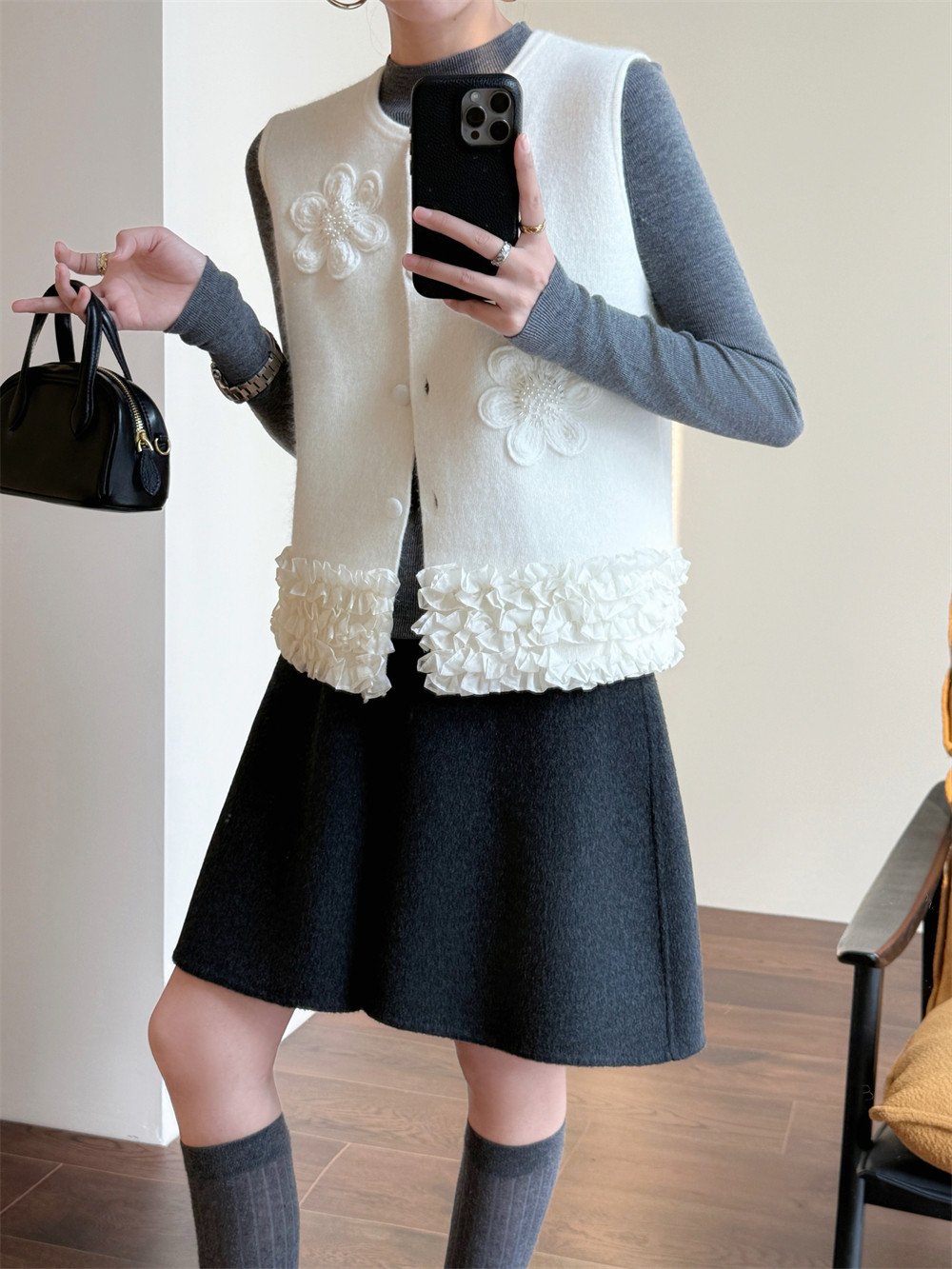 ASAYA5391 – Luxe Bloom Knit Vest & Wide-Leg Pants Set ❄️✨