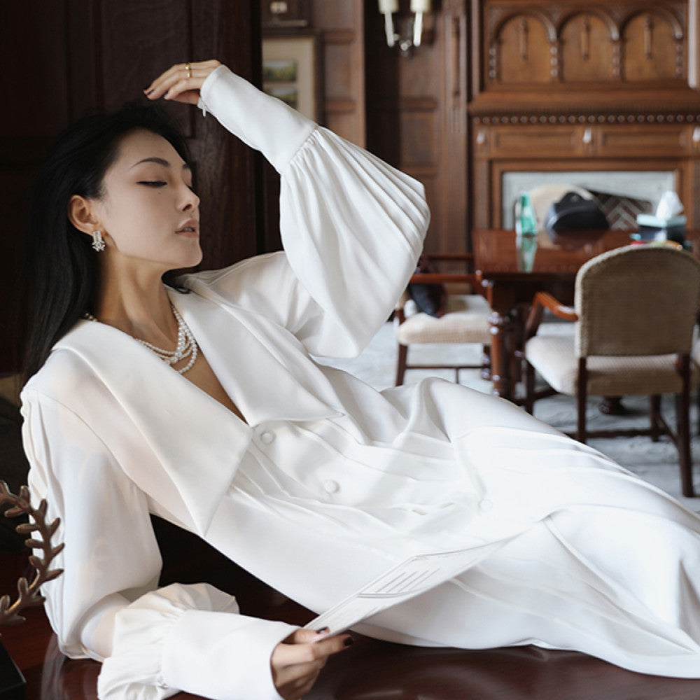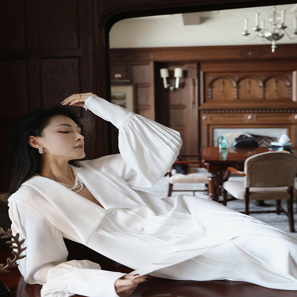 ASAYA4227 🤍 White French Retro V-Neck Pleated Dress ✨