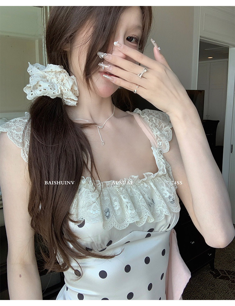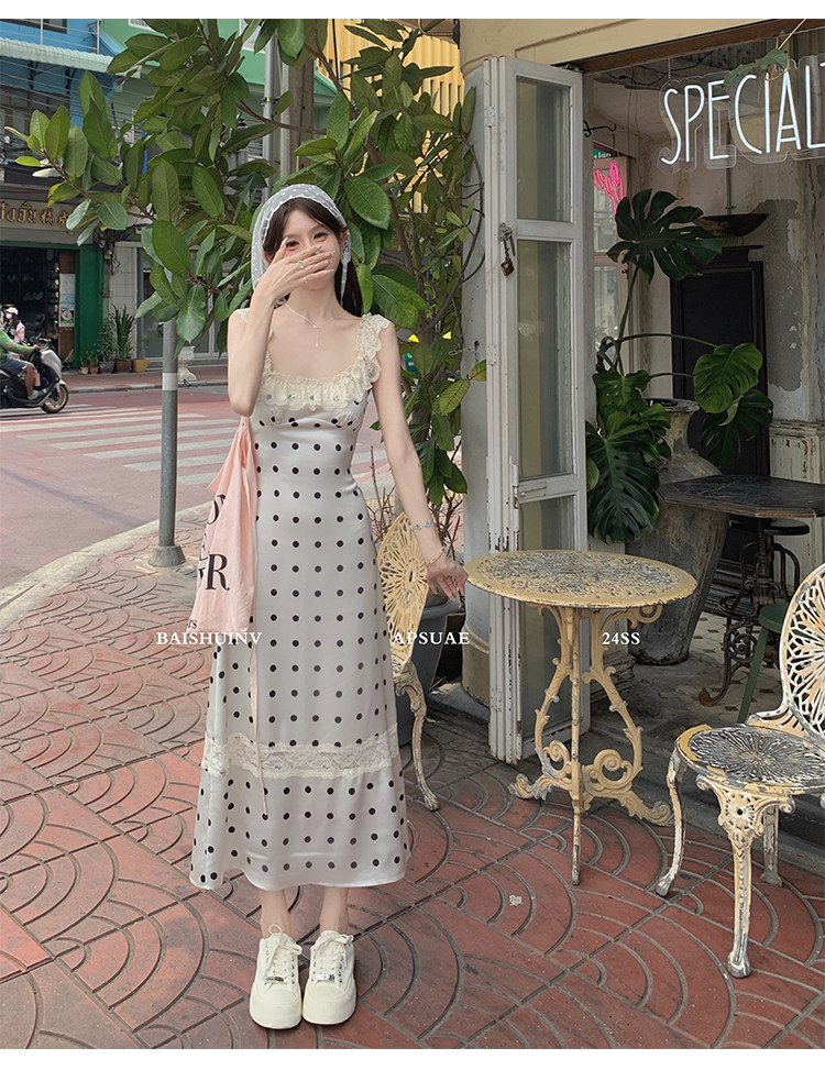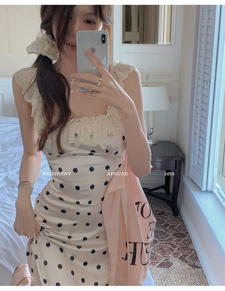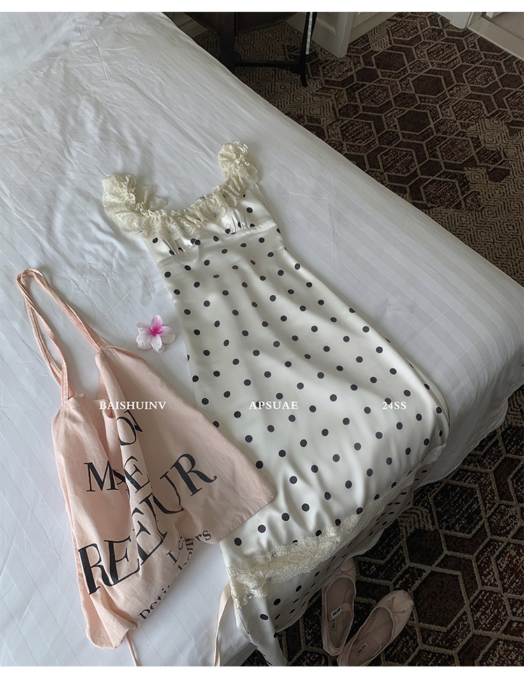 ASAYA5427 – Dainty Polka Satin Lace Dress 🎀✨