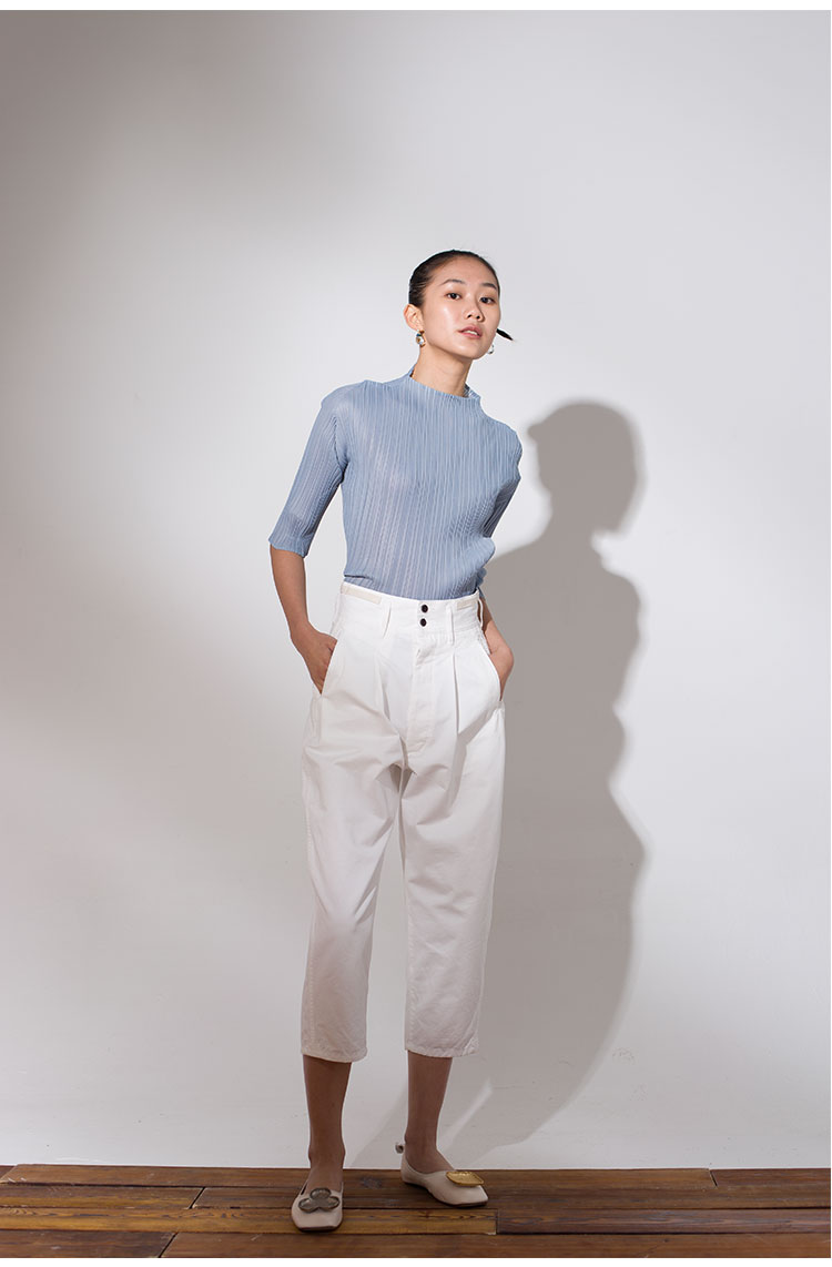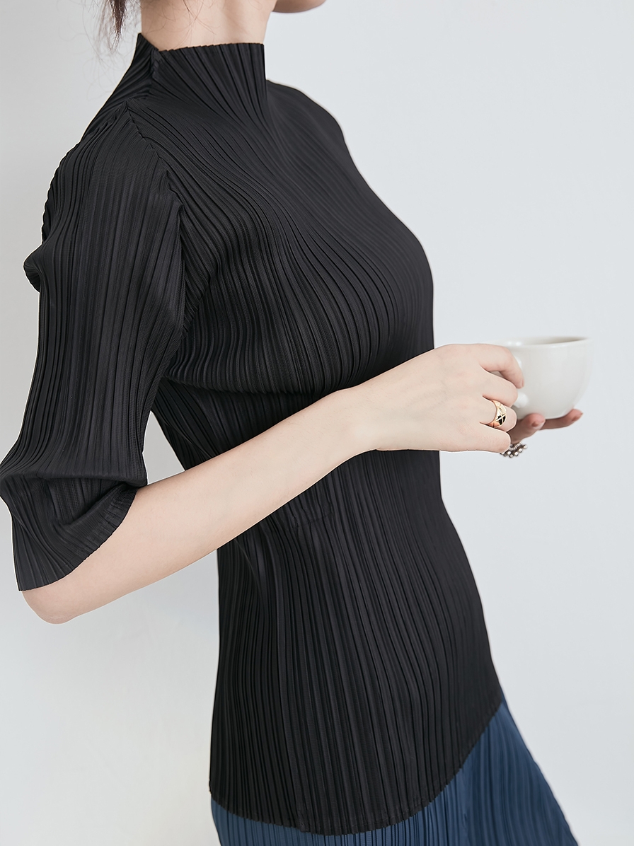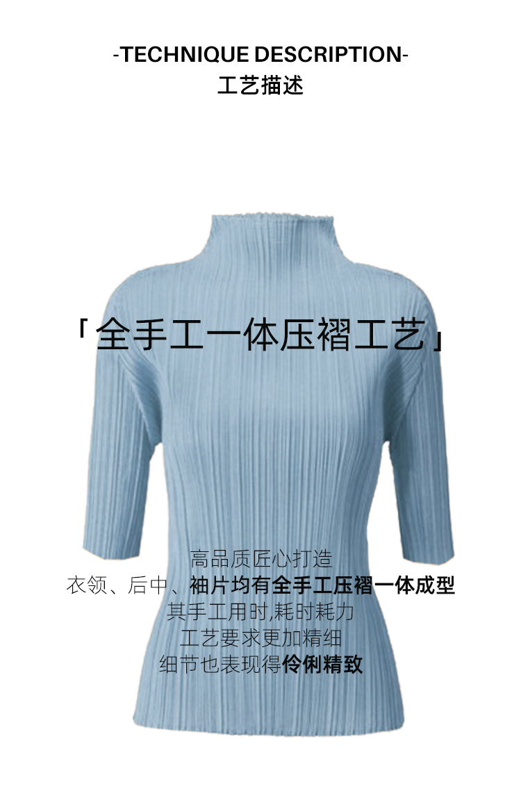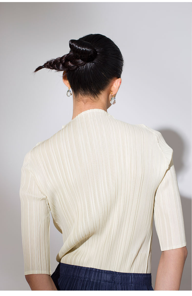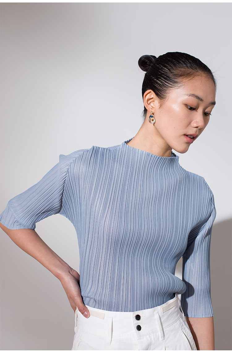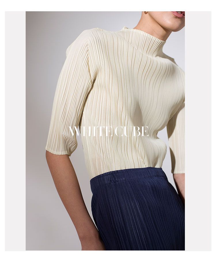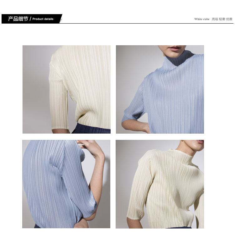 Asaya918 - Whitecube early spring mid sleeve design T shirt with three quarter sleeves and a otaku style top with pleats and short sleeves as a base for women