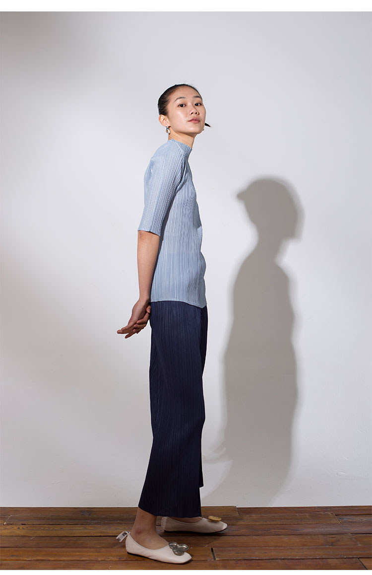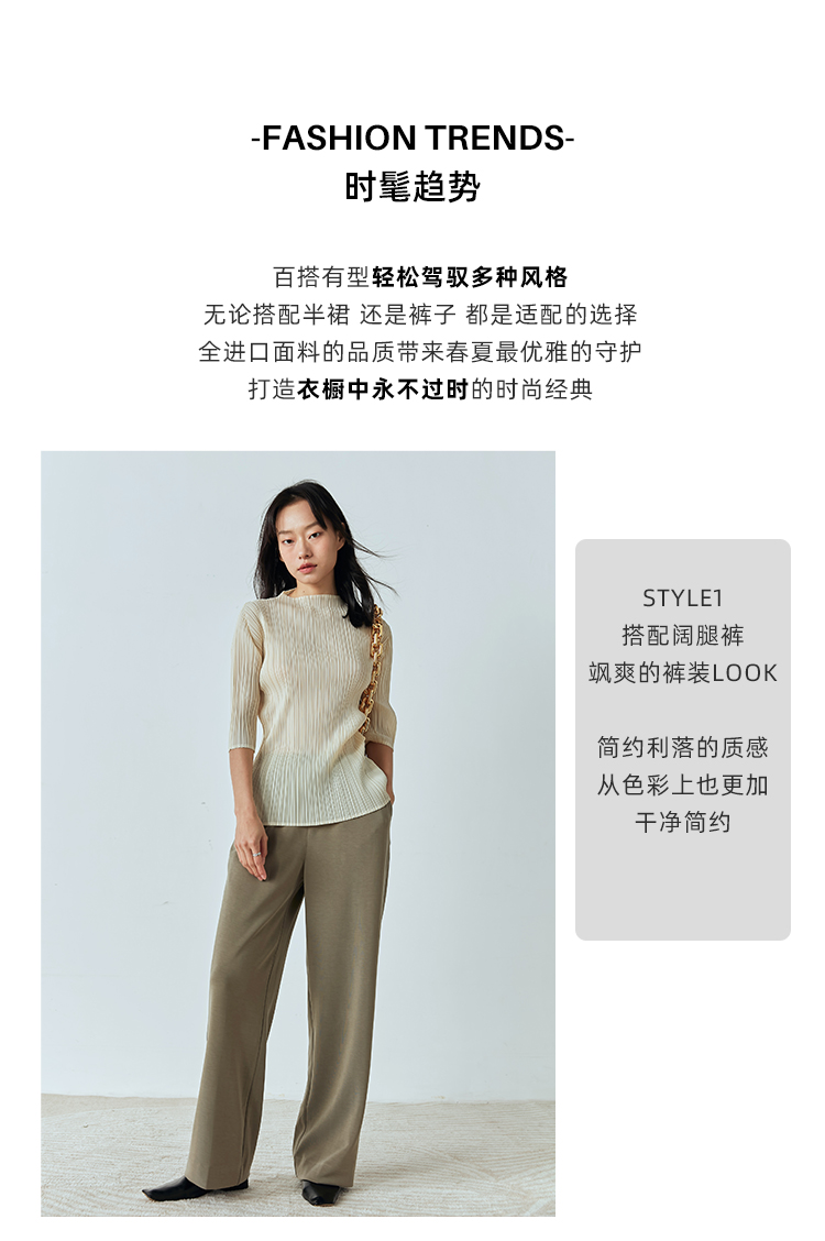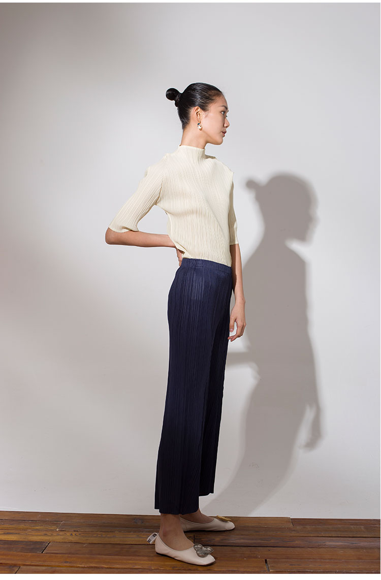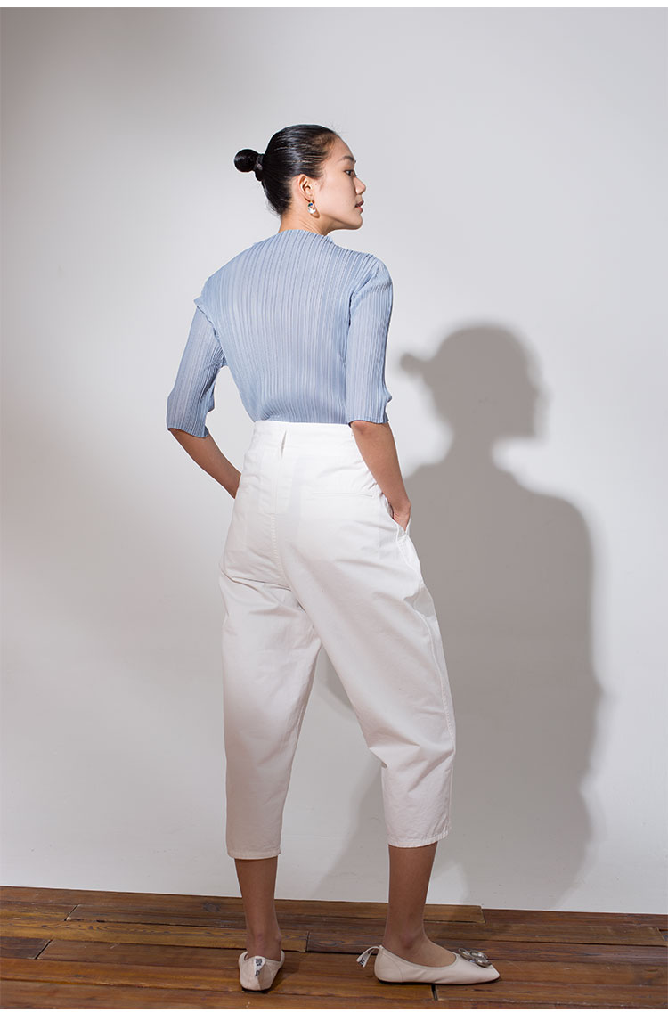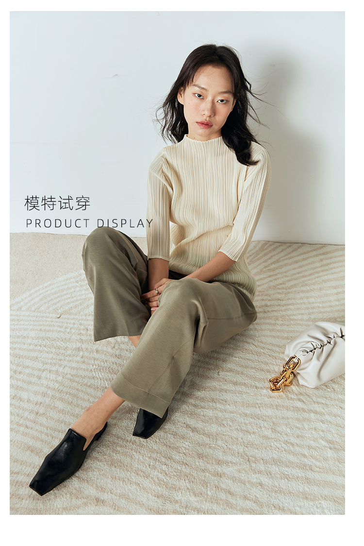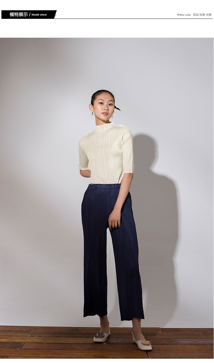 Asaya918 - Whitecube early spring mid sleeve design T shirt with three quarter sleeves and a otaku style top with pleats and short sleeves as a base for women