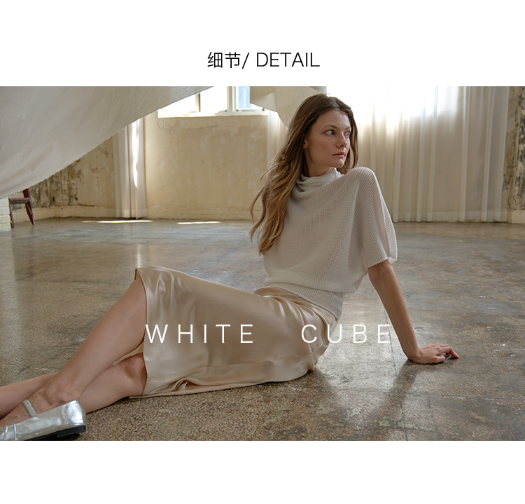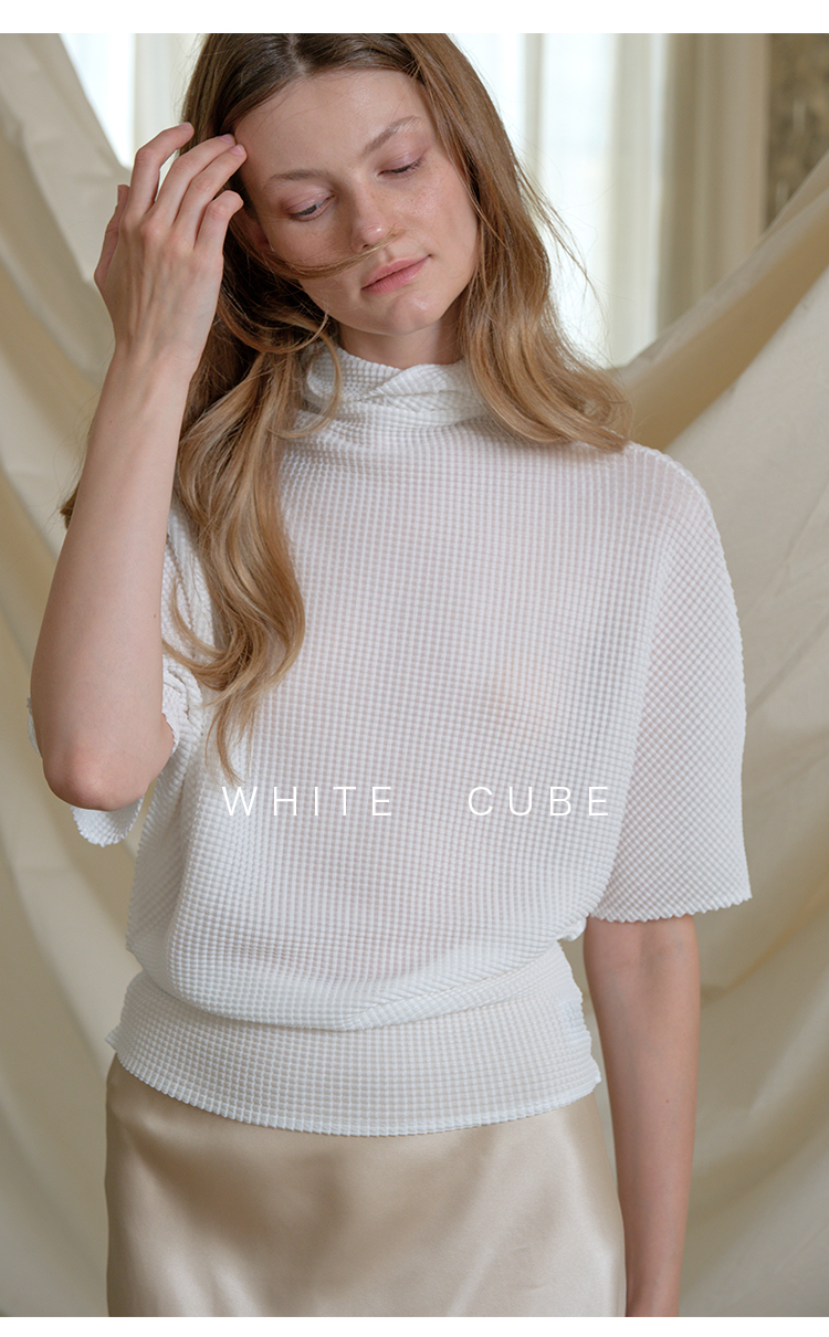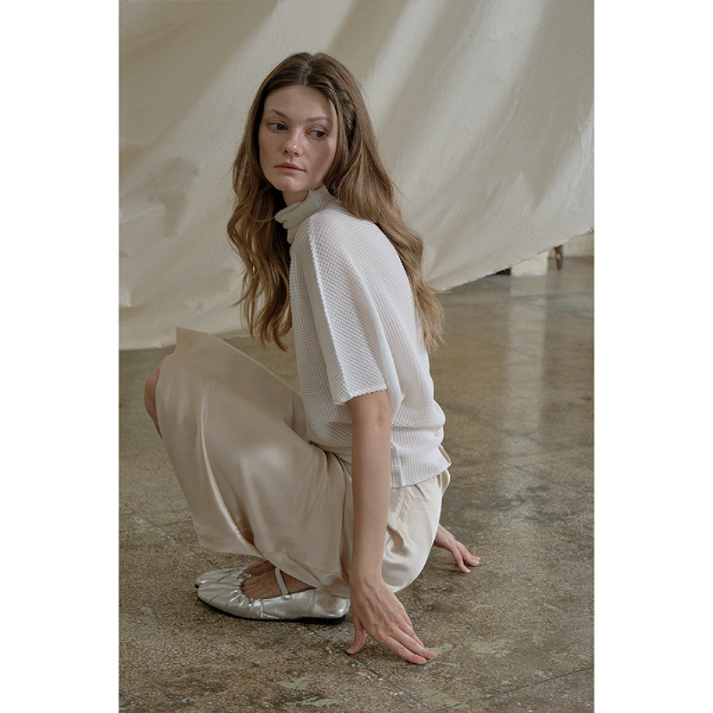 ASAYA3355 French high collar short sleeve pleated top mid sleeve t-shirt