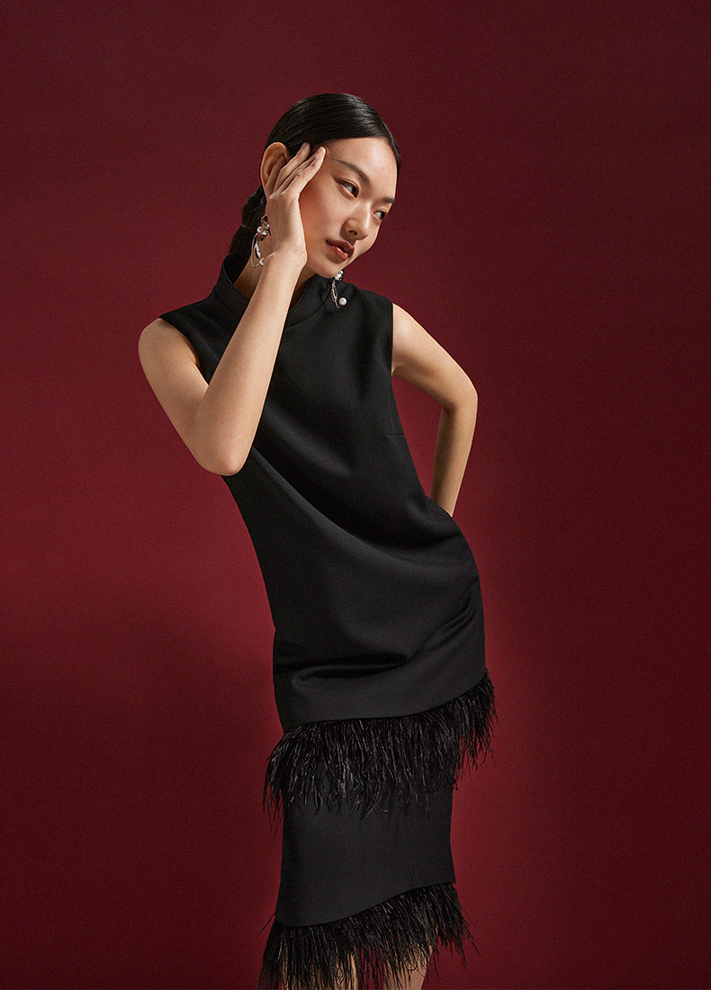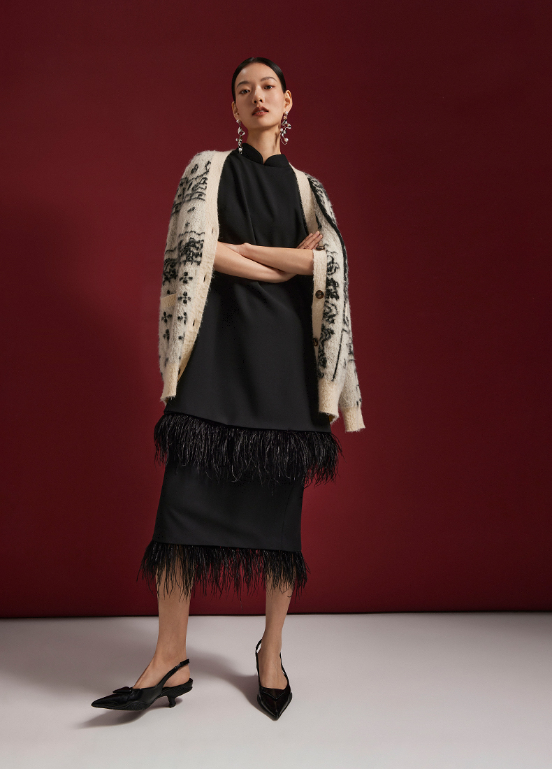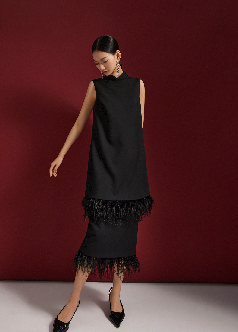 ASAYA2894 spring new black ostrich feather hip pencil skirt