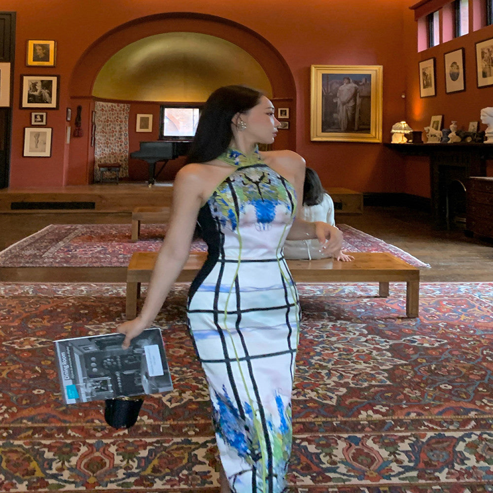 ASAYA2688 New Chinese style improved cheongsam dress Xia Guofeng design waist-covering hip long skirt