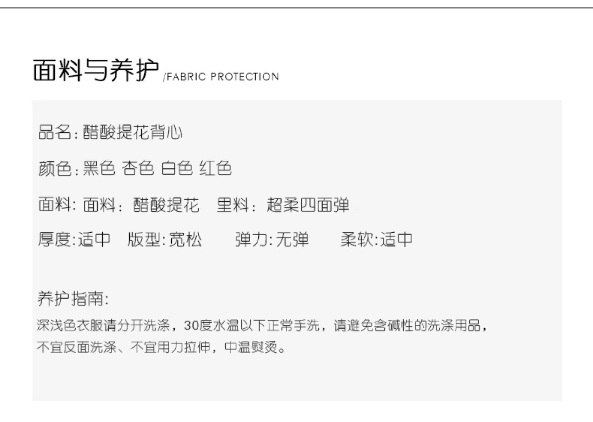 | Material composition | Acetate fiber (acetate fiber) 87.6% Polyester fiber 12.4% |