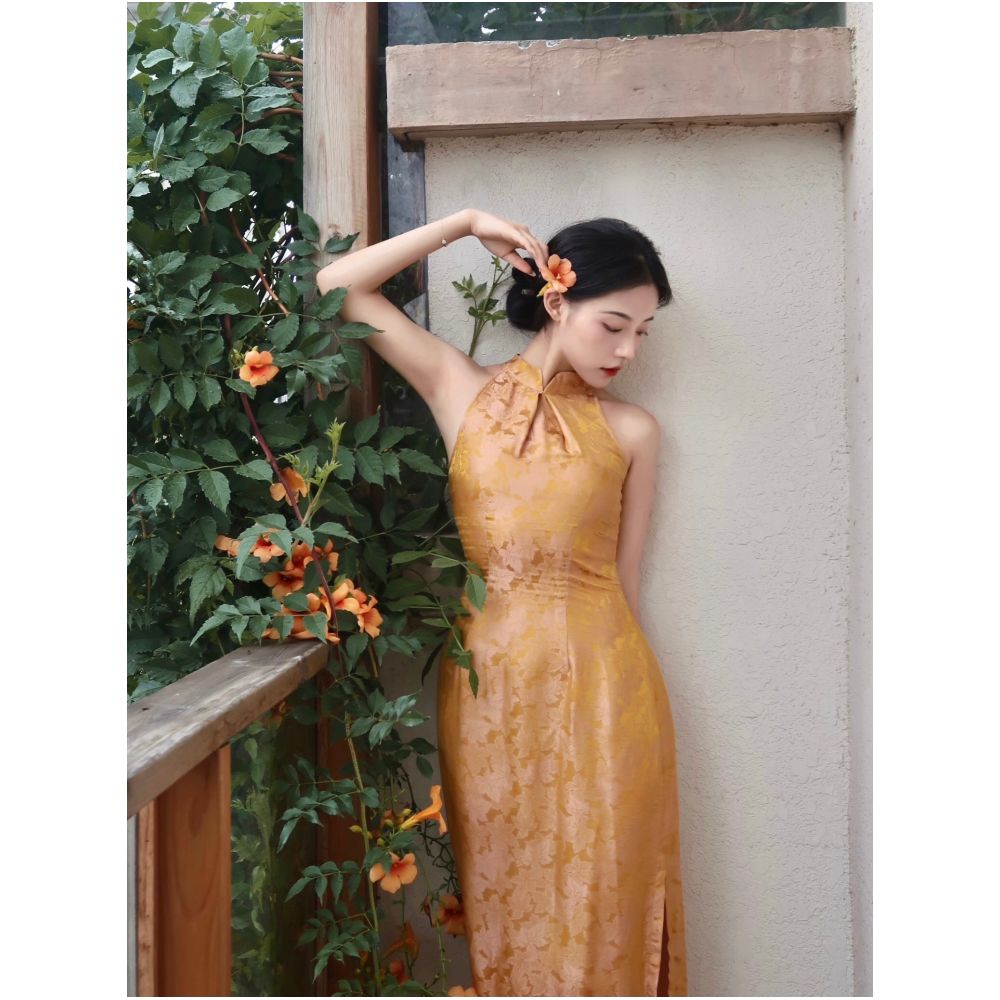 ASAYA2291 New Chinese Style sleeveless silk dress