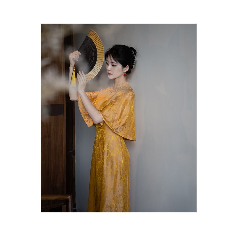 | color classification | Fallen leaf yellow in stock, premium black in stock, red in stock, Fallen leaf yellow pre-sale, premium black pre-sale, red pre-sale, Fallen leaf yellow cheongsam shawl two-piece set in stock, red cheongsam shawl two-piece set in stock |