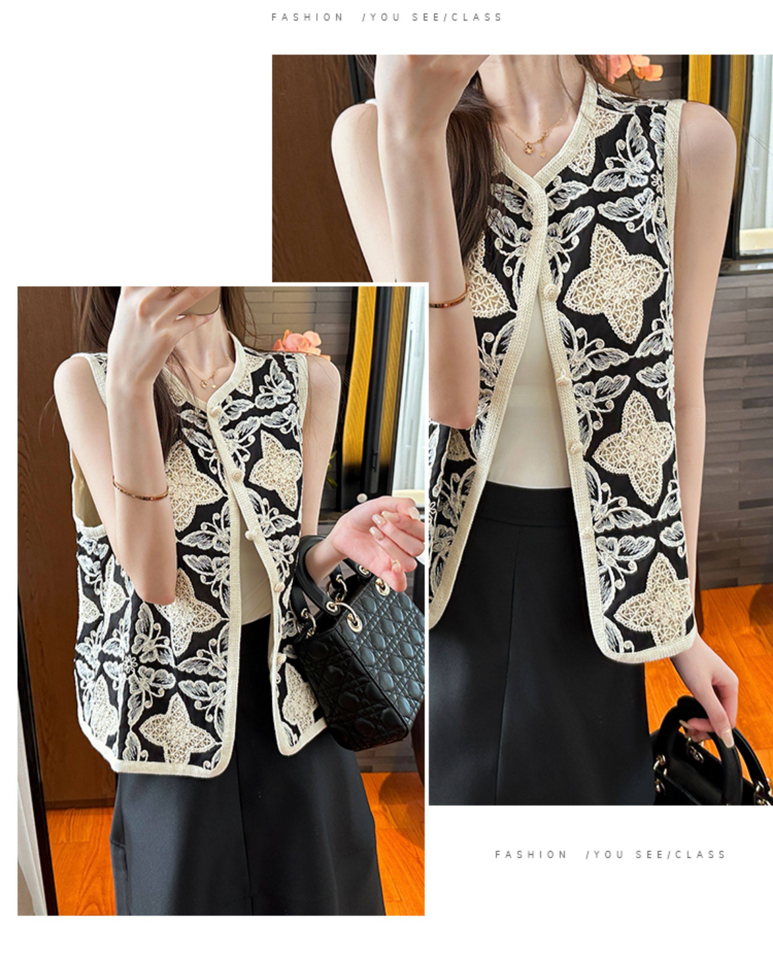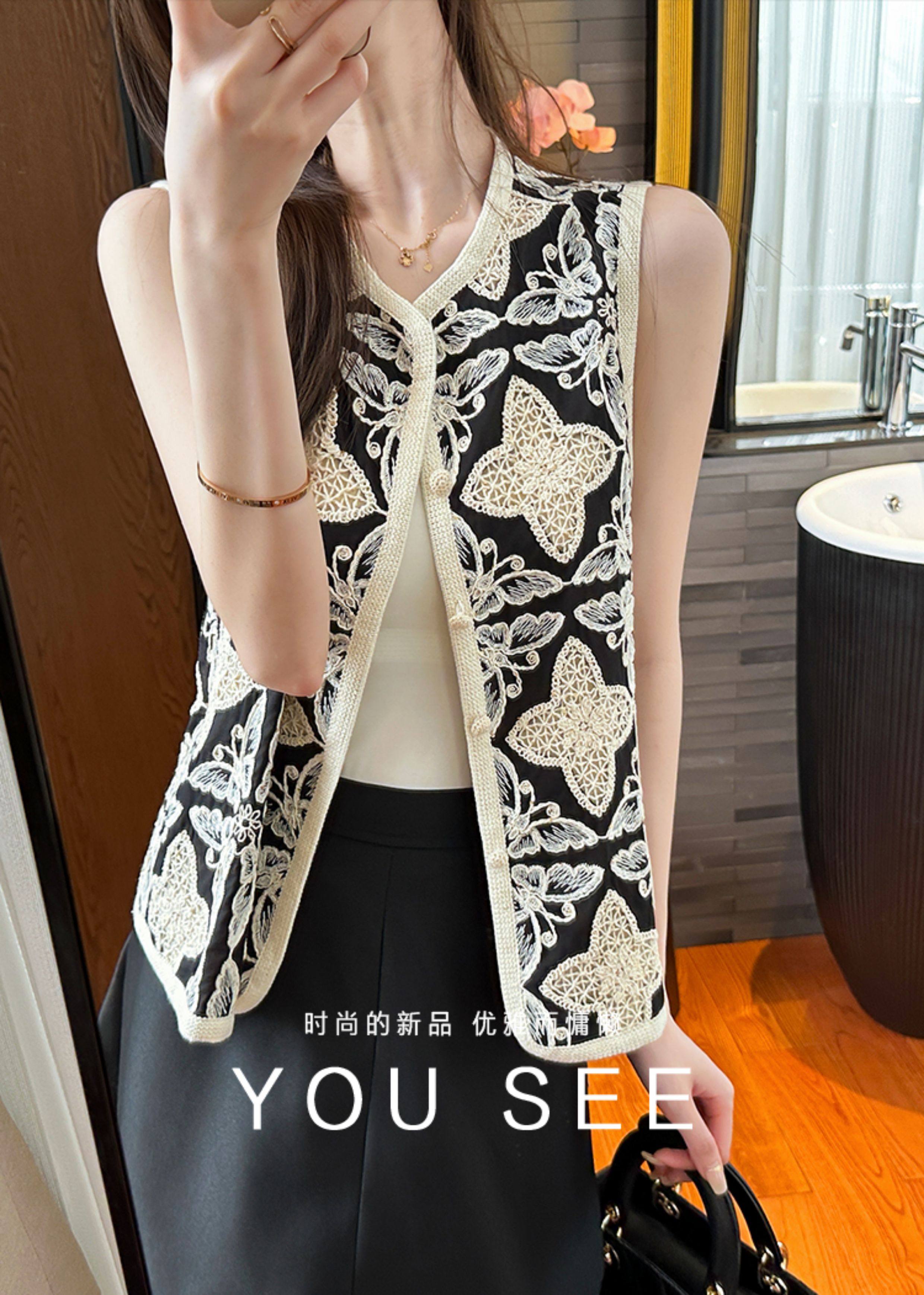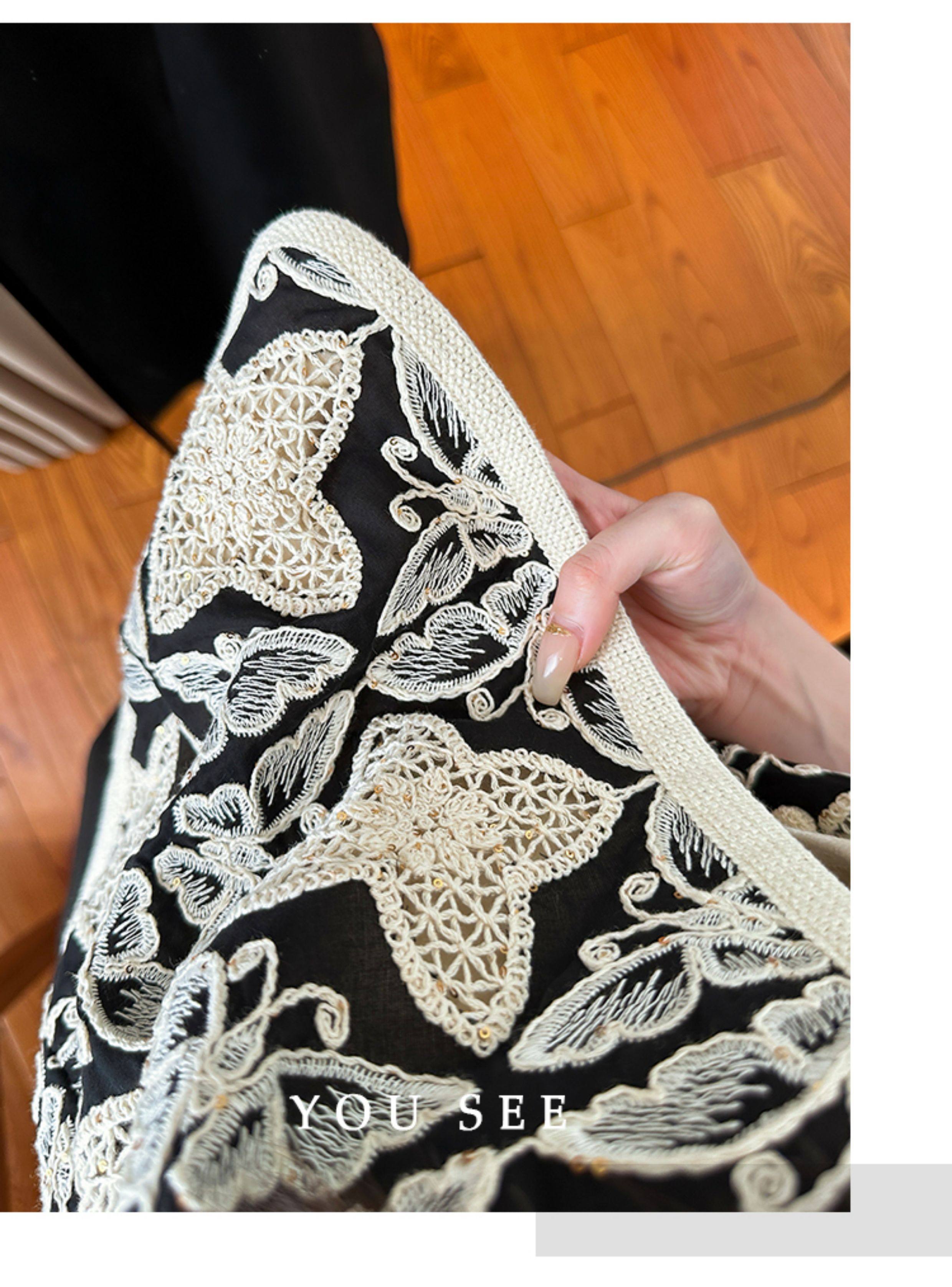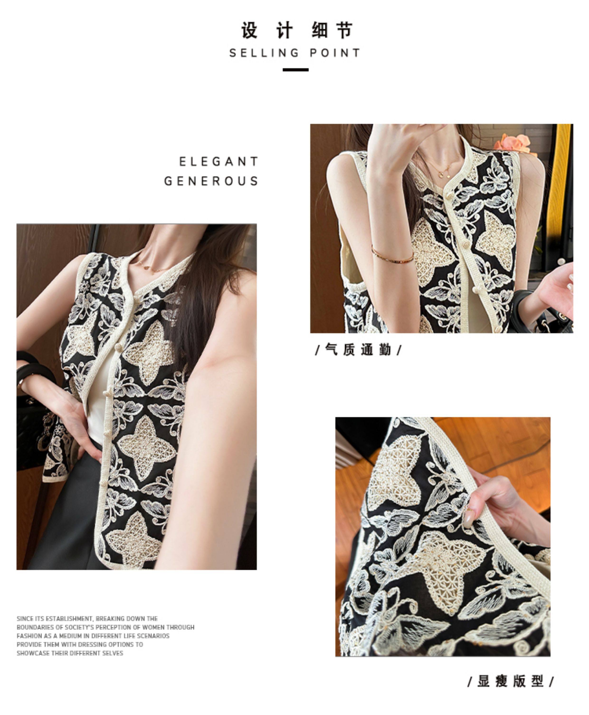 | Clothing Style Details | Button hook flower hollow three-dimensional decoration splicing sequin tie flower |