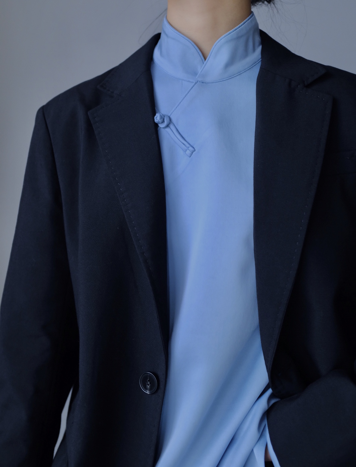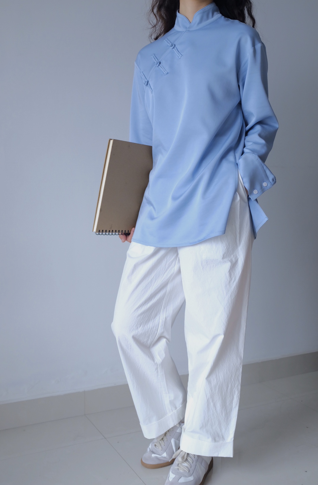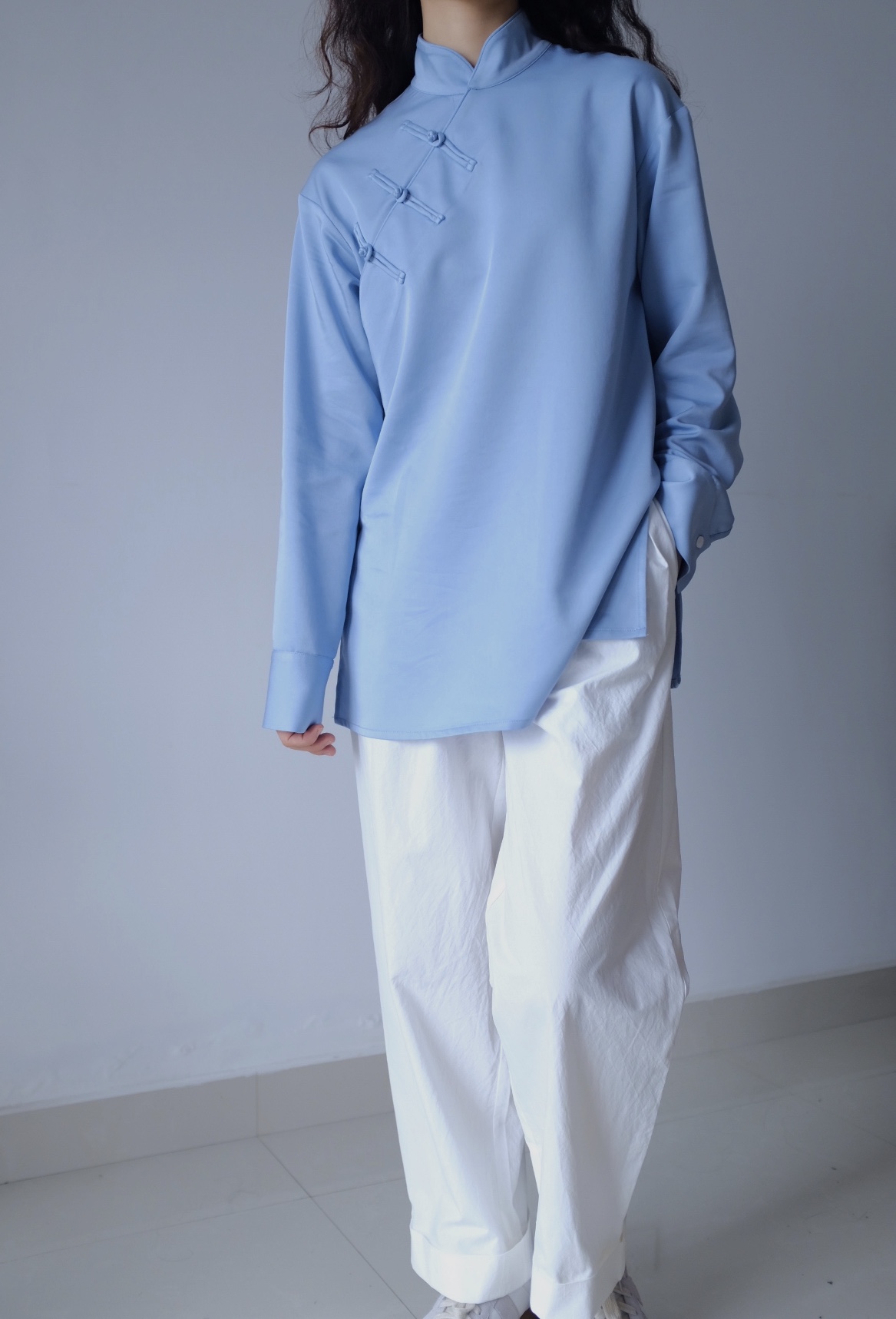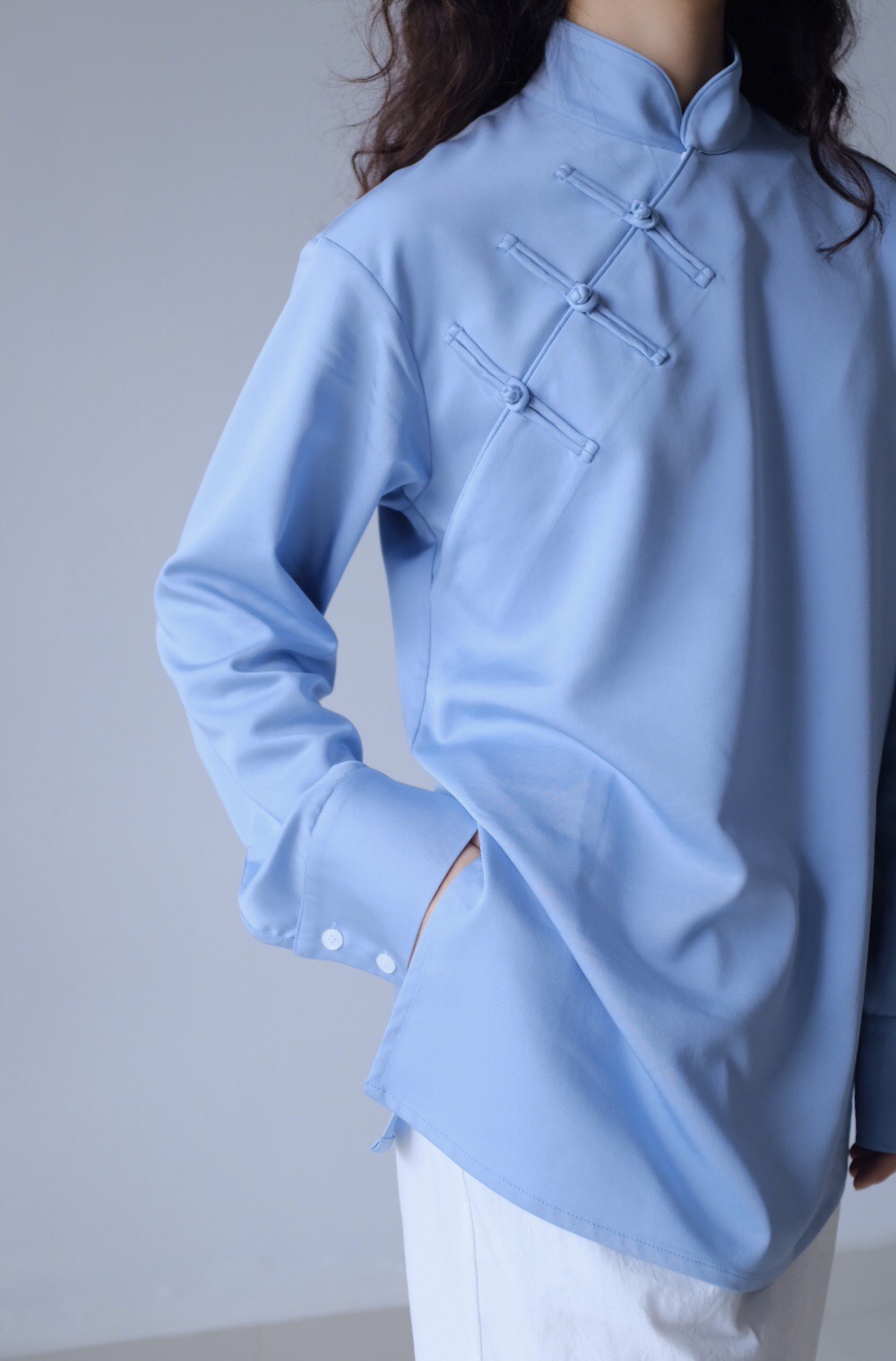 Asaya471 - Yuyin SHADOW Chinese-style minimalist long-sleeved shirt with small disc buttons