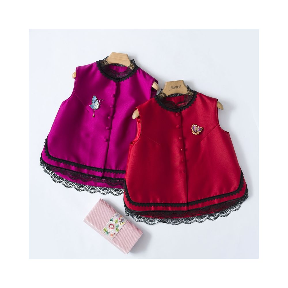 Asaya1580 YXF0087 Xiajia retro lace silk wool vest women s loose short outer wear Tang suit top